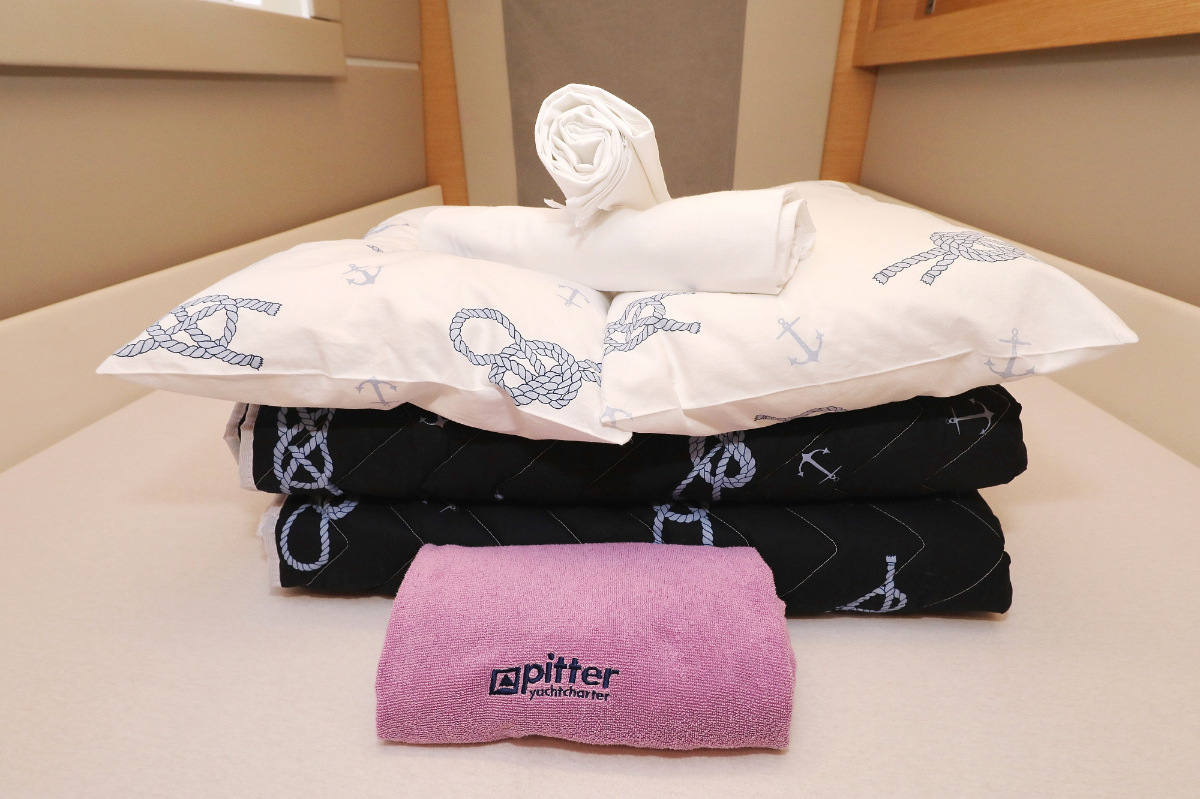 220 V-Landanschluss, Anker mit Kette, Ankerwinsch, Biminitop, Bootshaken, Cockpitdusche, Cockpitkühlschrank, Cockpitlautsprecher, Cockpitpolster, Cockpittisch, Cockpitverdeck, Davits, Dieselkanister , elektr. Ankerwinsch, elektr. Winsch, Fender, Festmacherleinen, Gangway, Kugelfender, Kunststoff-Eimer (Pütz), Solaranlage, Wantenschneider, Wasserkanister , Wasserschlauch, Windex |