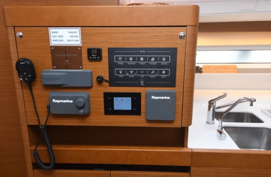 | Safety | Autopilot, Blitzboje, Bordapotheke, Bordwerkzeug, Bugstrahlruder, elektr. Bilgepumpe, Feststoffschwimmwesten, Feuerlöscher, Handbilgepumpe, Lifebelts, Nebelhorn, Notsignale, Radarreflektor, Taschenlampe, UKW-Funk, Zweitanker |