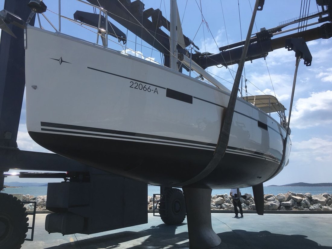 | Outside | Anker mit Kette, Badeplattform, Biminitop, Bootshaken, Cockpitlautsprecher, Cockpitpolster, elektr. Ankerwinsch, Fender, Festmacherleinen, Solaranlage, Sprayhood, Teakdeck, Windex |