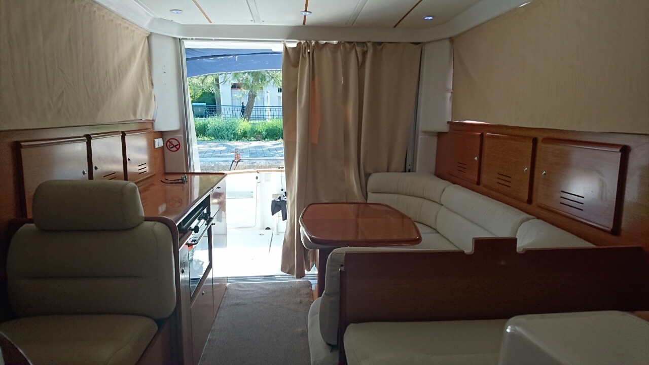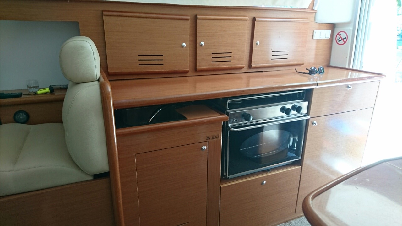 | Outside | Anker mit Kette, Badeleiter, Cockpitdusche, Cockpitlautsprecher, Cockpittisch, elektr. Ankerwinsch, Festmacherleinen, Flybridge, hydraul. Gangway, Solaranlage, Sonnensegel |