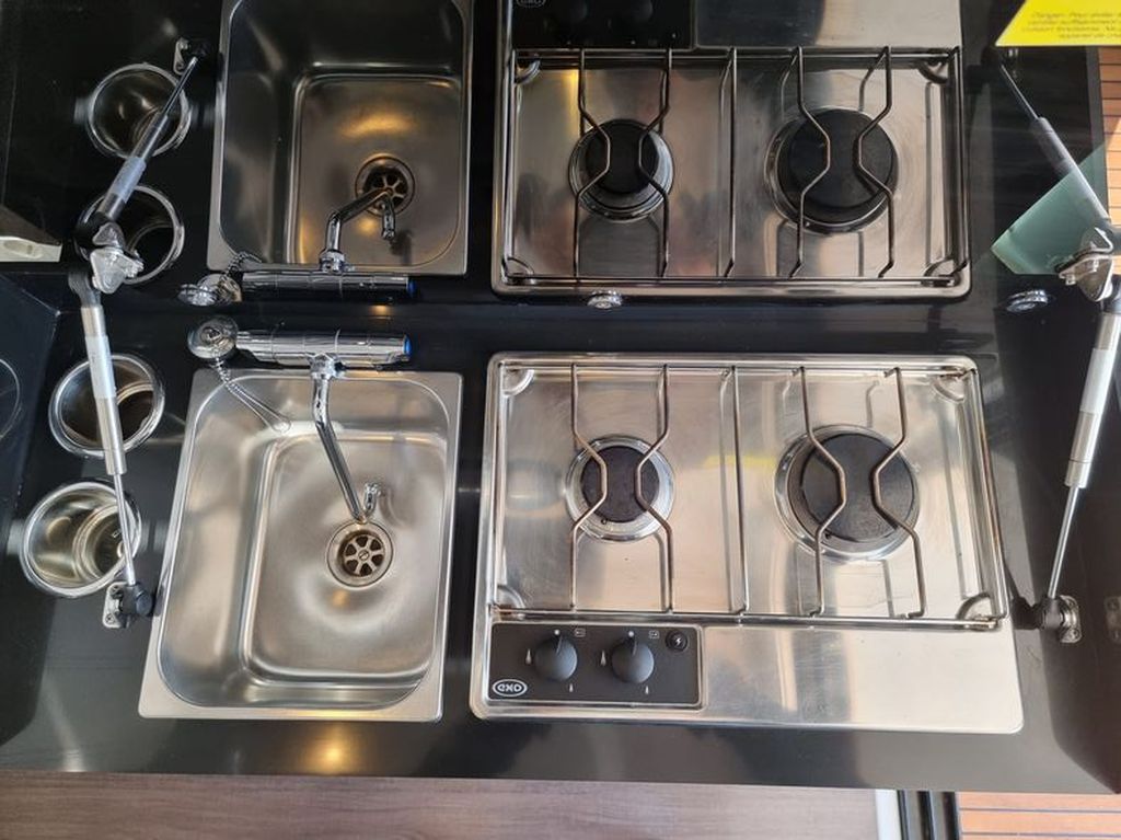 | Inside | 12V/220V-Steckdosen, Dusche, Gasherd, Inverter 12V/220V, Kühlschrank, Ladegerät, Lautsprecher im Salon, LCD Fernseher, Pantryausstattung, Radio mit USB, MP3 und Bluetooth, Sound System, Spülbecken, Warmwasser, Wasserkocher |