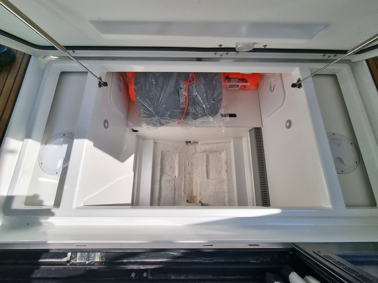 | Outside | Anker mit Kette, Badeleiter, Biminitop, Cockpitdusche, Cockpitlautsprecher, Cockpitpolster, Cockpittisch, Deckpolster, elektr. Ankerwinsch, Festmacherleinen |