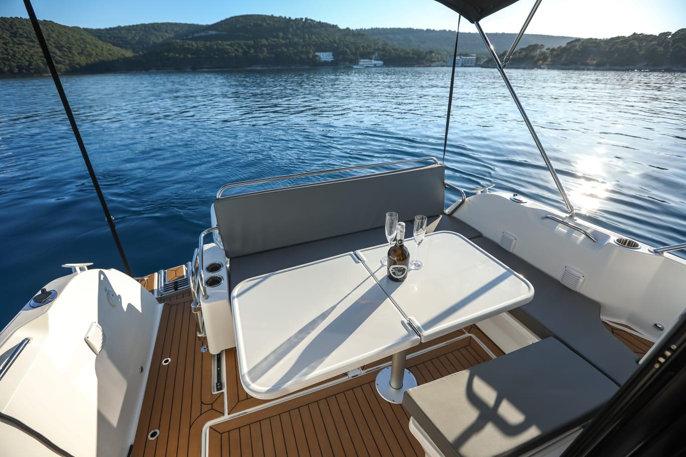 | Outside | 220 V-Landanschluss, Bürste und Schwamm, Cockpitdusche warm/kalt, Cockpitpolster, elektr. Winsch, Fender, Solaranlage, Wasserschlauch |