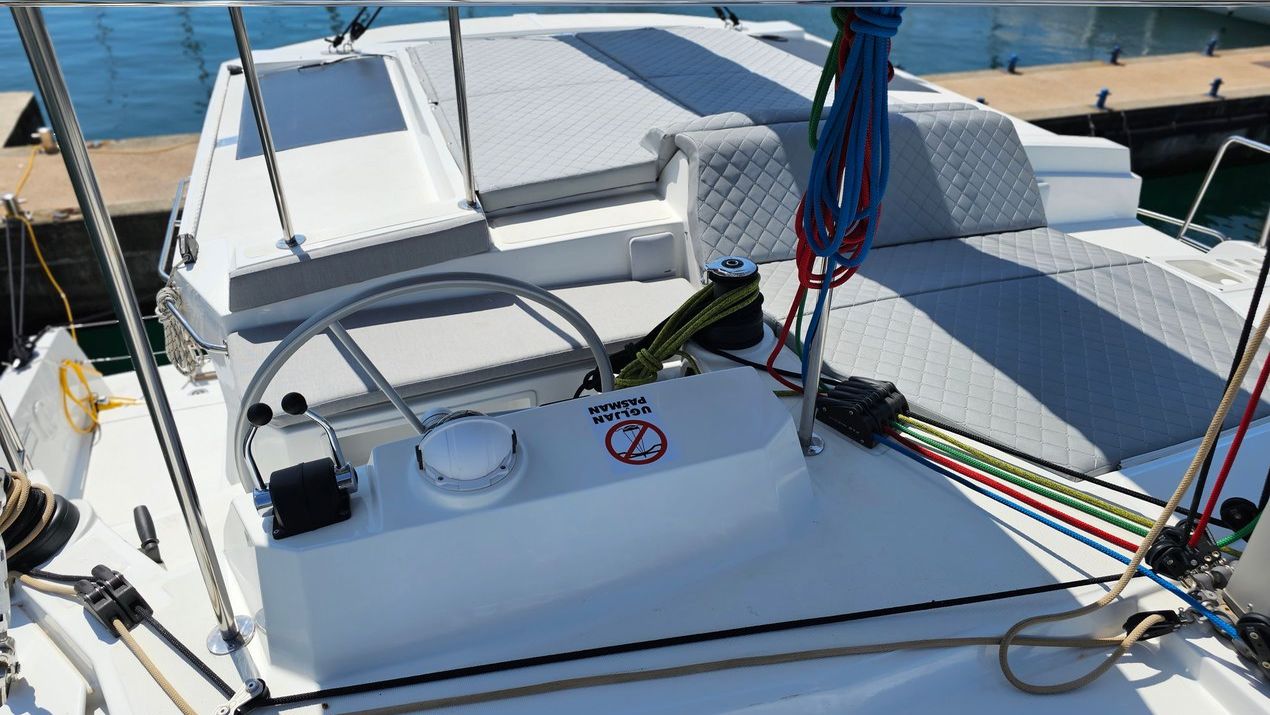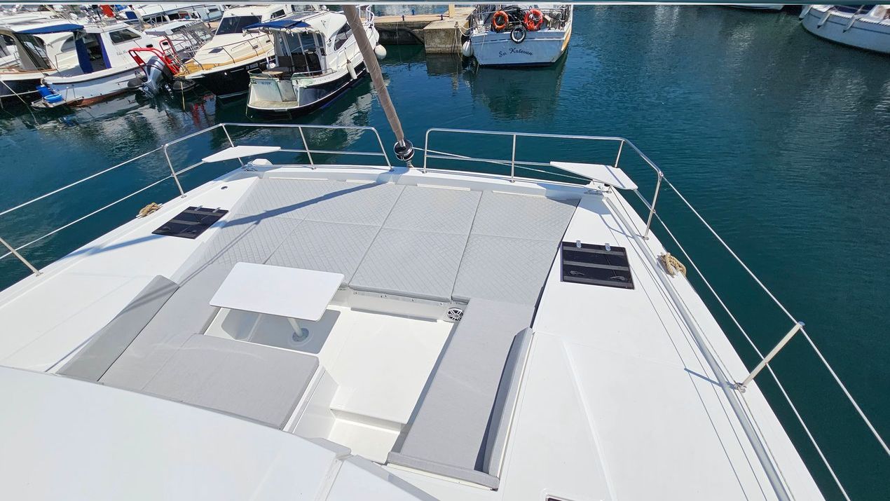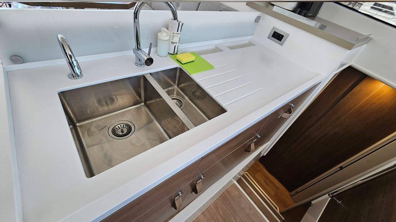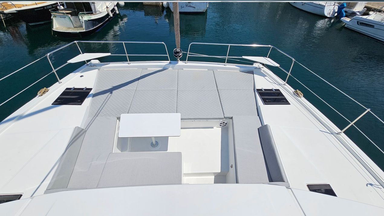 | Outside | Anker mit Kette, Badeleiter, Badeplattform, Biminitop, Cockpitdusche, Cockpitlautsprecher, Cockpitpolster, Cockpittisch, Deckpolster, elektr. Ankerwinsch, Fender, Festmacherleinen, Flybridge, Gangway, Grill, Solaranlage, Sprayhood, Wasserschlauch |