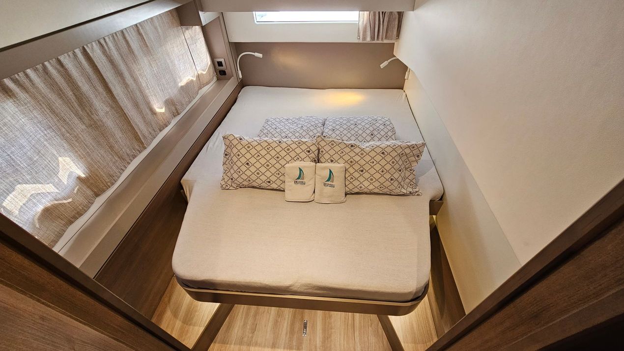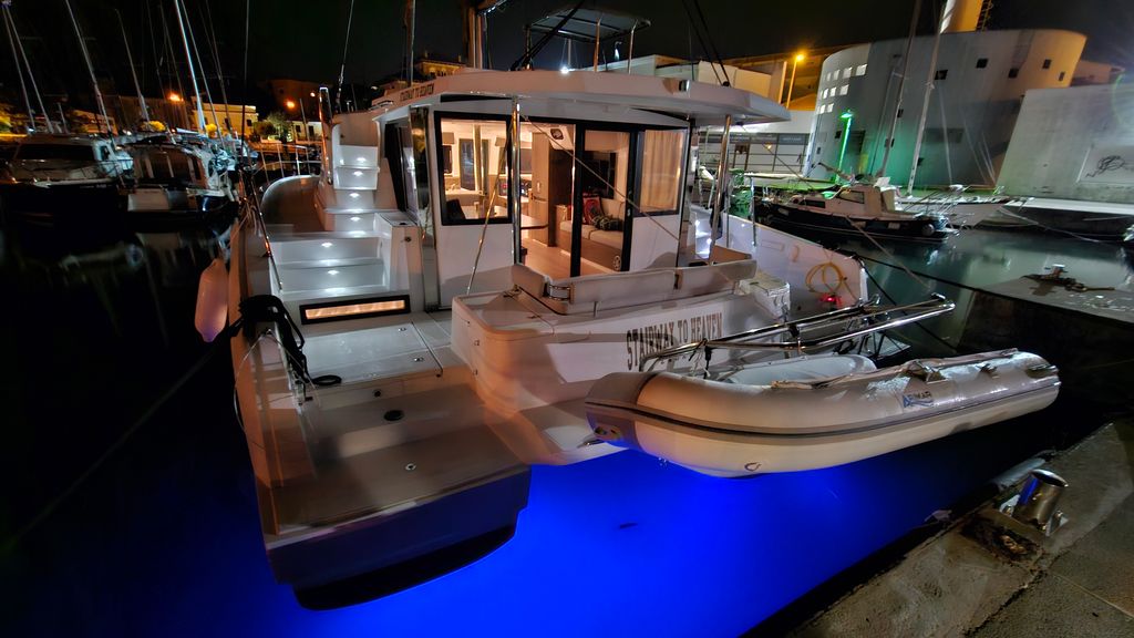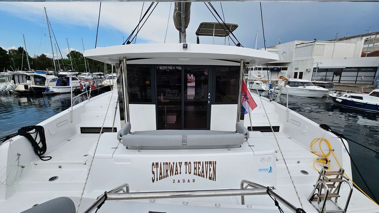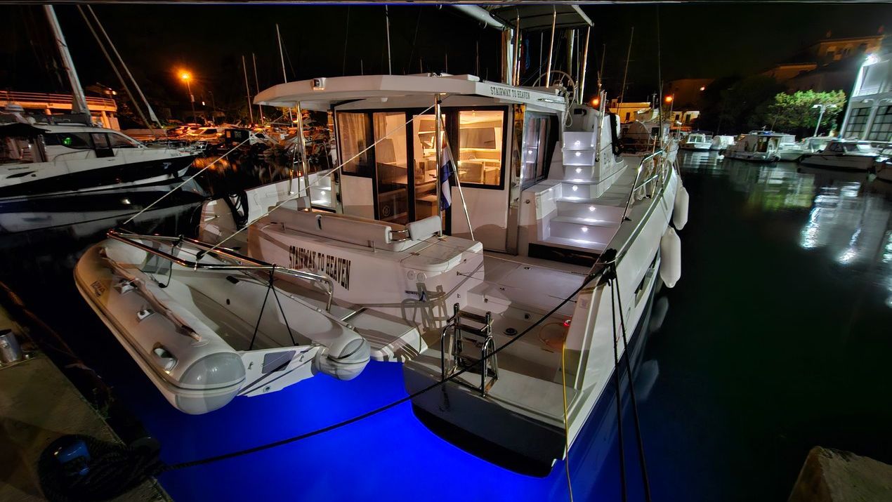 Die Yacht hat ein paar kleinere technische Macken (eine der beiden Dieselfüllstandanzeigen funktioniert nicht richtig, die Schalt- bzw. Gashebel sind schwergängig beim Einlegen von Vor- oder Rückwärtsgang und an einer nicht identifizierbaren Stelle dringt bei starkem Regen Wasser in eine steuerbordseitige Achterkabine ein) und die Segeleigenschaften sind bauartbedingt eher bescheiden (habe aber auch nicht anders erwartet). Insgesamt ist die Stairway To Heaven ein sehr komfortables und gut ausgestattetes Boot, auf dem wir eine sehr schöne Segelwoche verbracht haben.