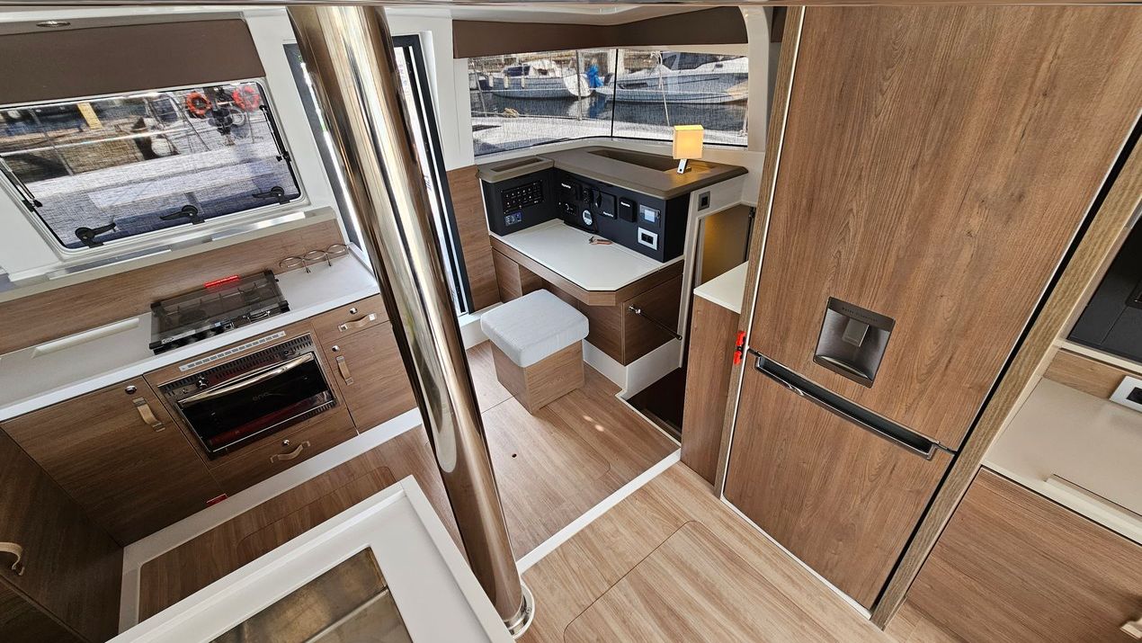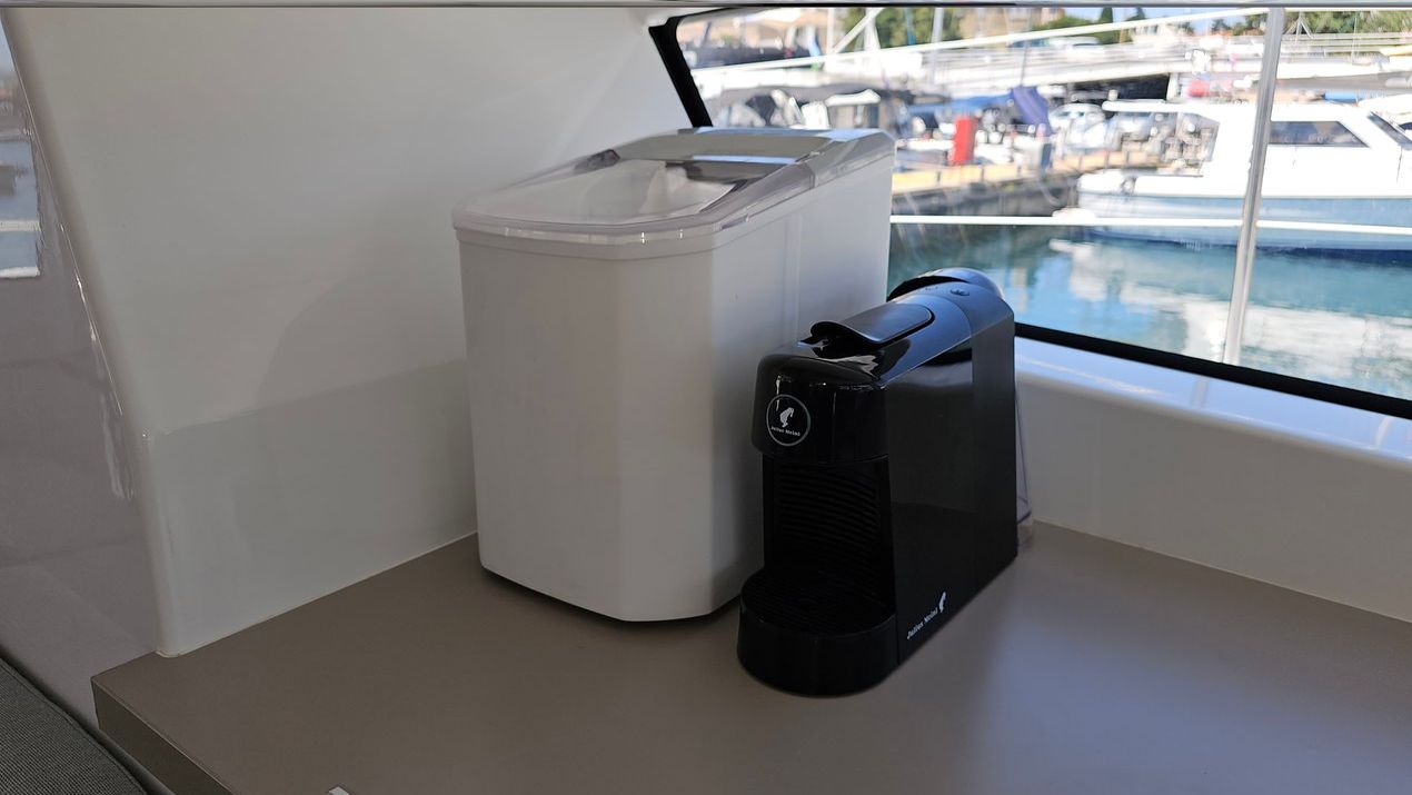| Inside | Eiswürfelmaschine, Gasherd mit Backofen, Generator, Geschirr, Inverter 12V/220V, Kaffeemaschine, Klimaanlage (ohne Landstrombedarf), Kühlschrank, Ladegerät, Landstromkabel, Pantryausstattung, Salontisch absenkbar, Sound System, Spülbecken, Warmwasser, WC (elektr.) |