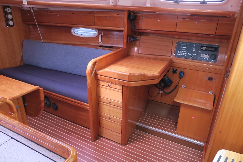 | Navigation | Barometer, Echolot, elektr. Seekarten, Fernglas, GPS mit Kartenplotter im Cockpit, Hafenhandbücher, Handpeilkompass, Kompass, Sumlog, Windmesser |