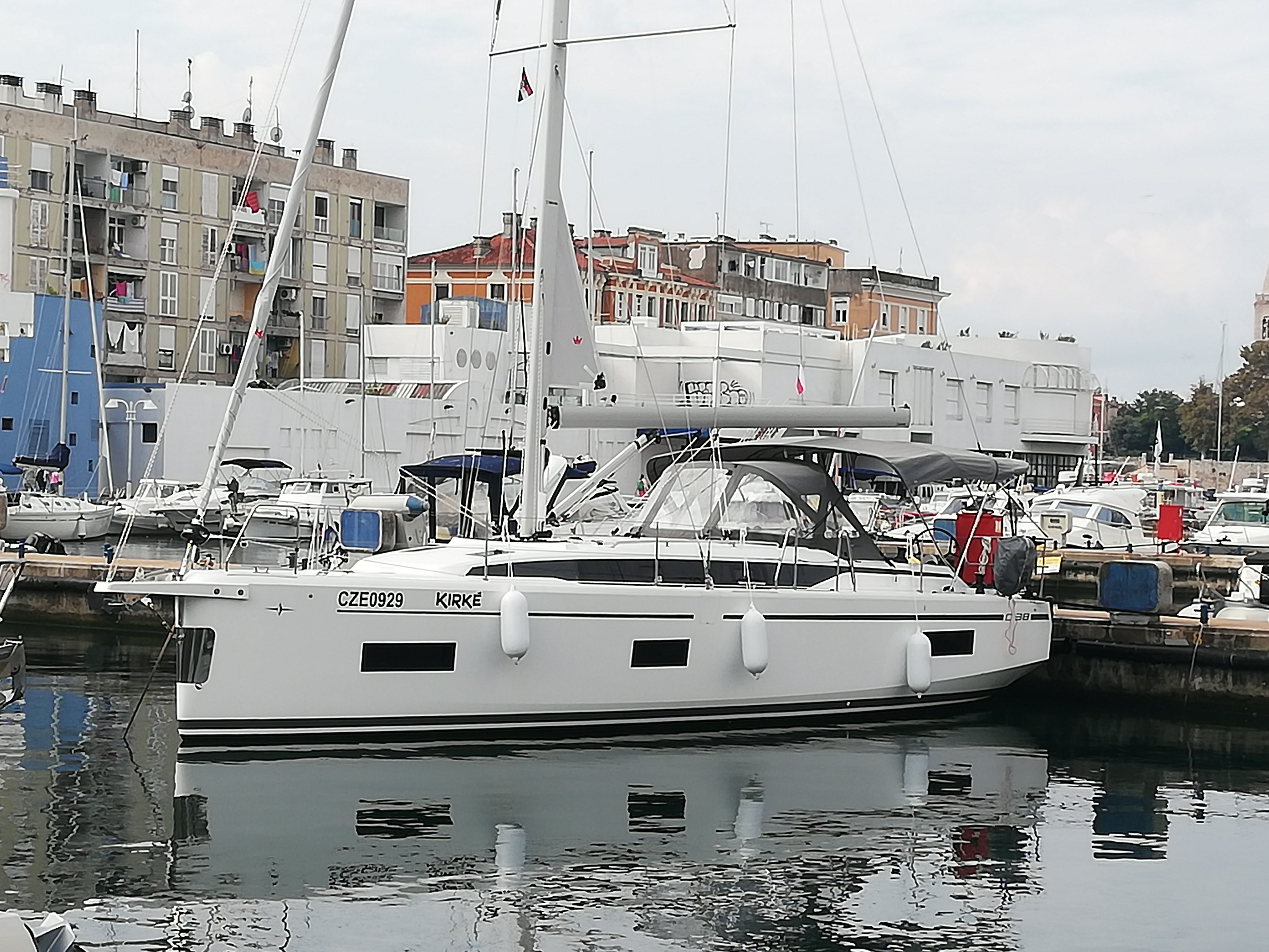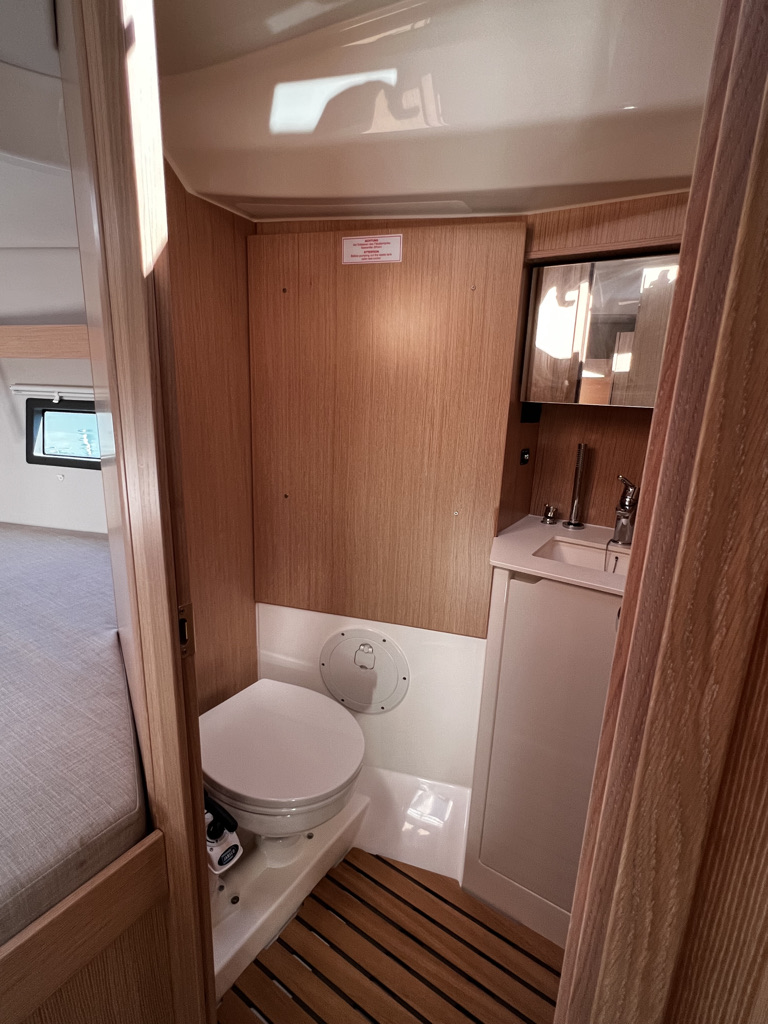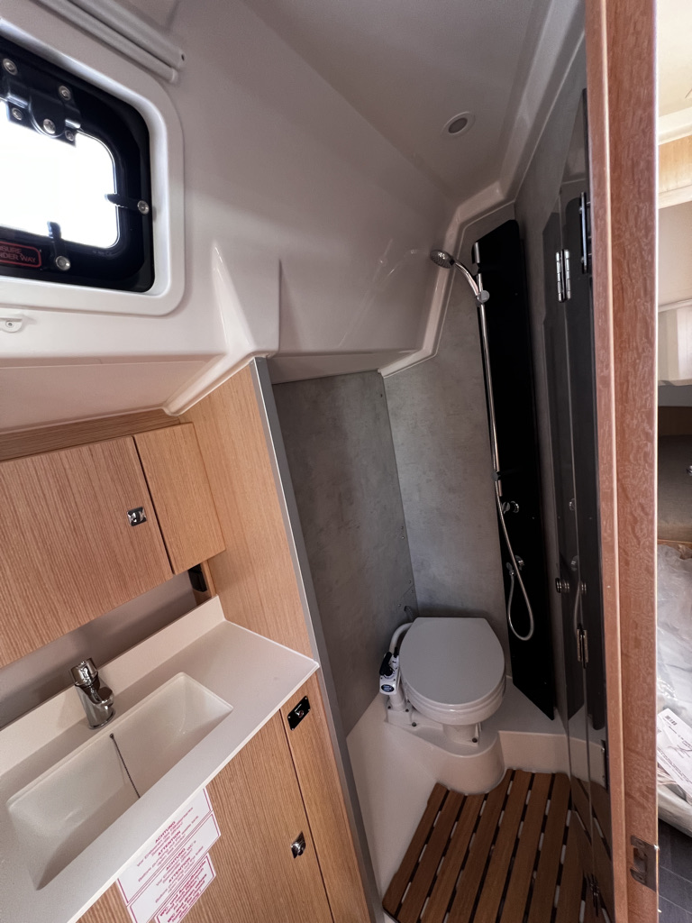 | Outside | Badeplattform, Biminitop, Cockpitdusche, Cockpittisch, elektr. Ankerwinsch, Festmacherleinen, Solaranlage, Sprayhood |