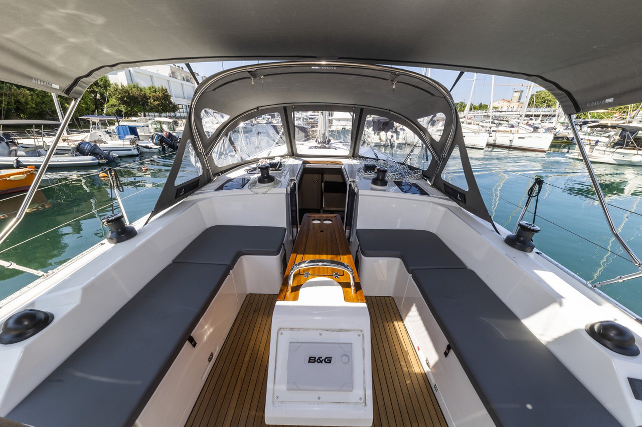 | Outside | 12 V-Anschluss, Badeleiter, Badeplattform, Biminitop, Cockpitdusche, Cockpitlautsprecher, Cockpitpolster, Cockpittisch, Deckbeleuchtung, Deckpolster, elektr. Ankerwinsch, Fender, Gangway, Solaranlage, Sprayhood, Windex |
