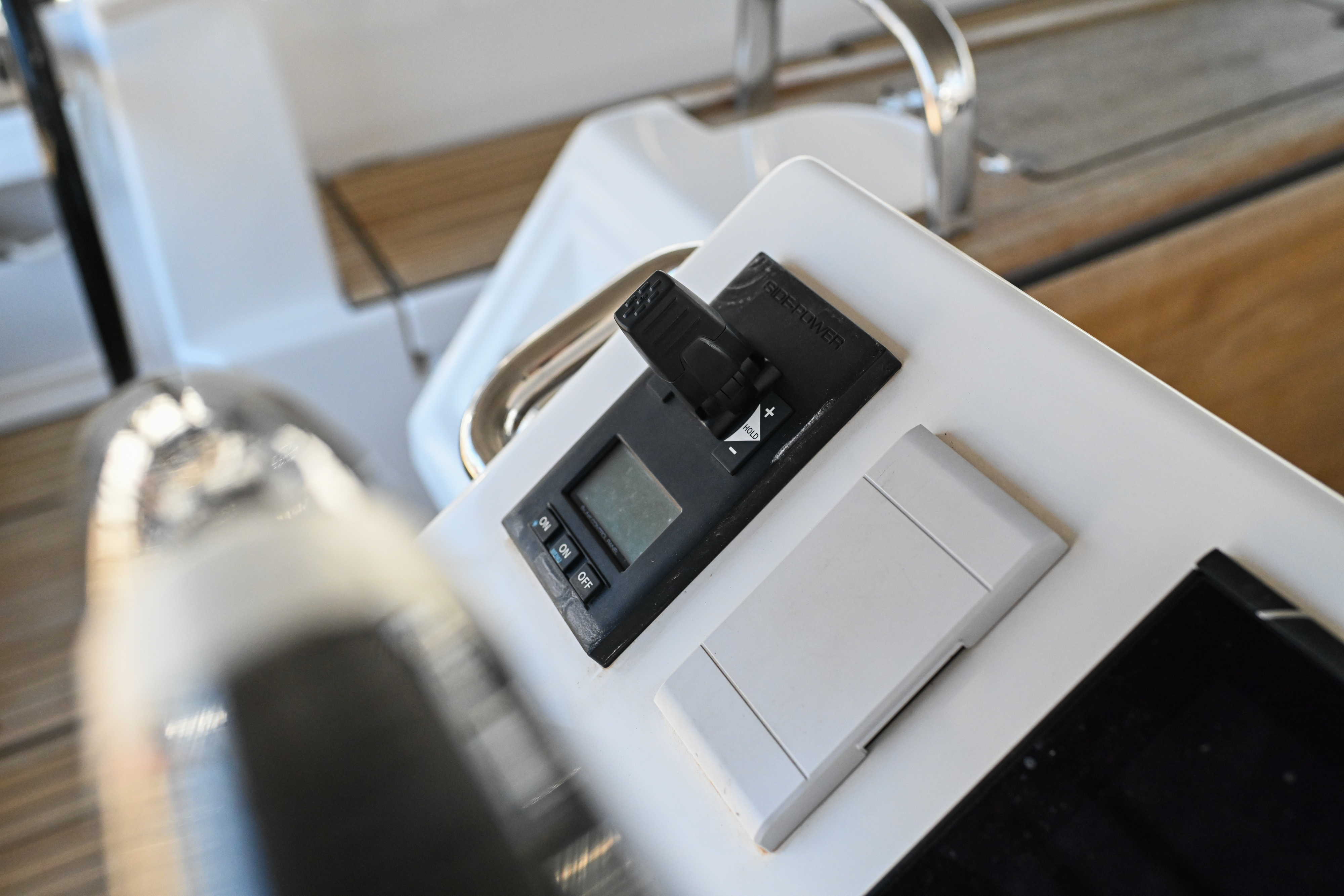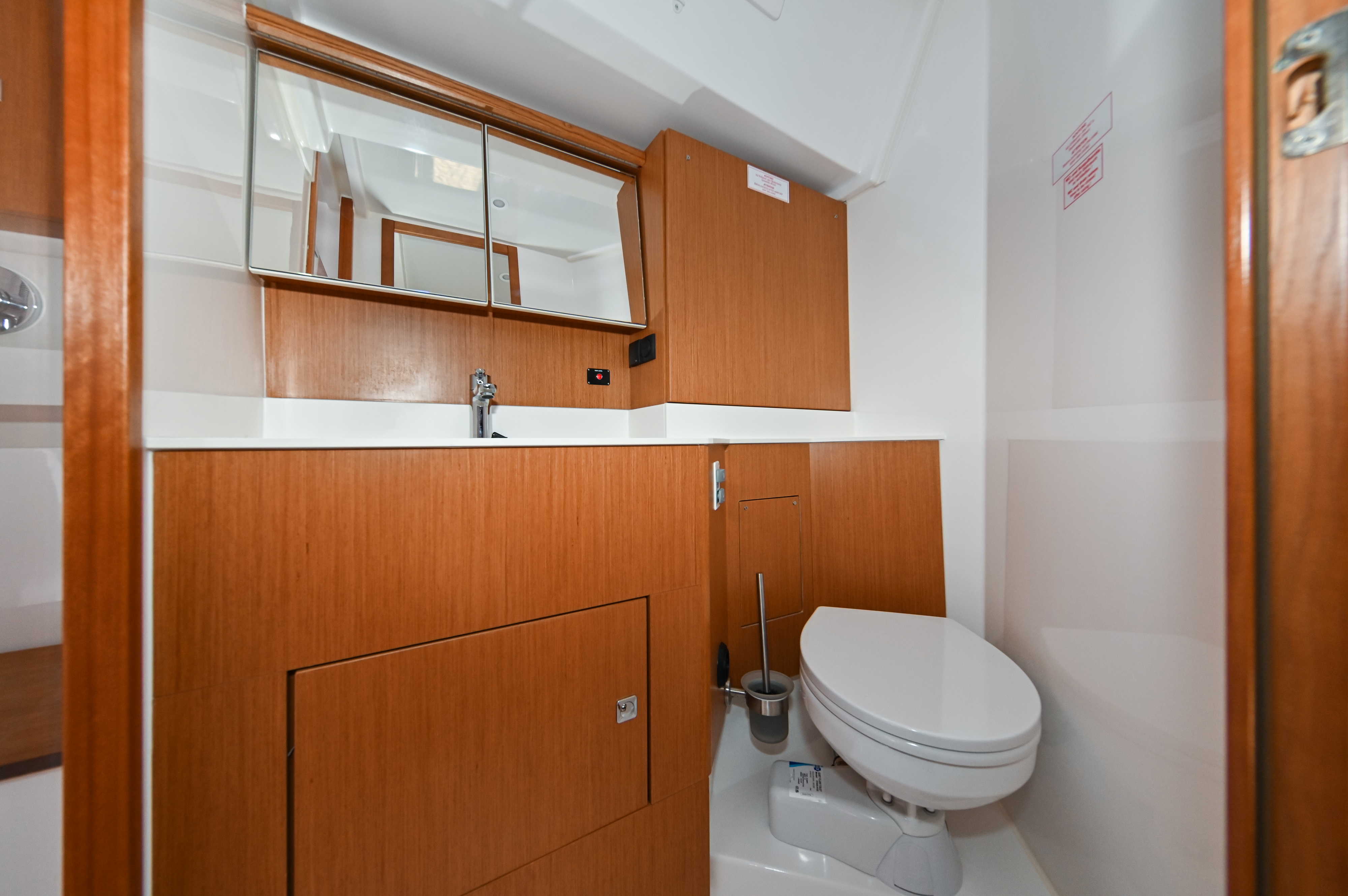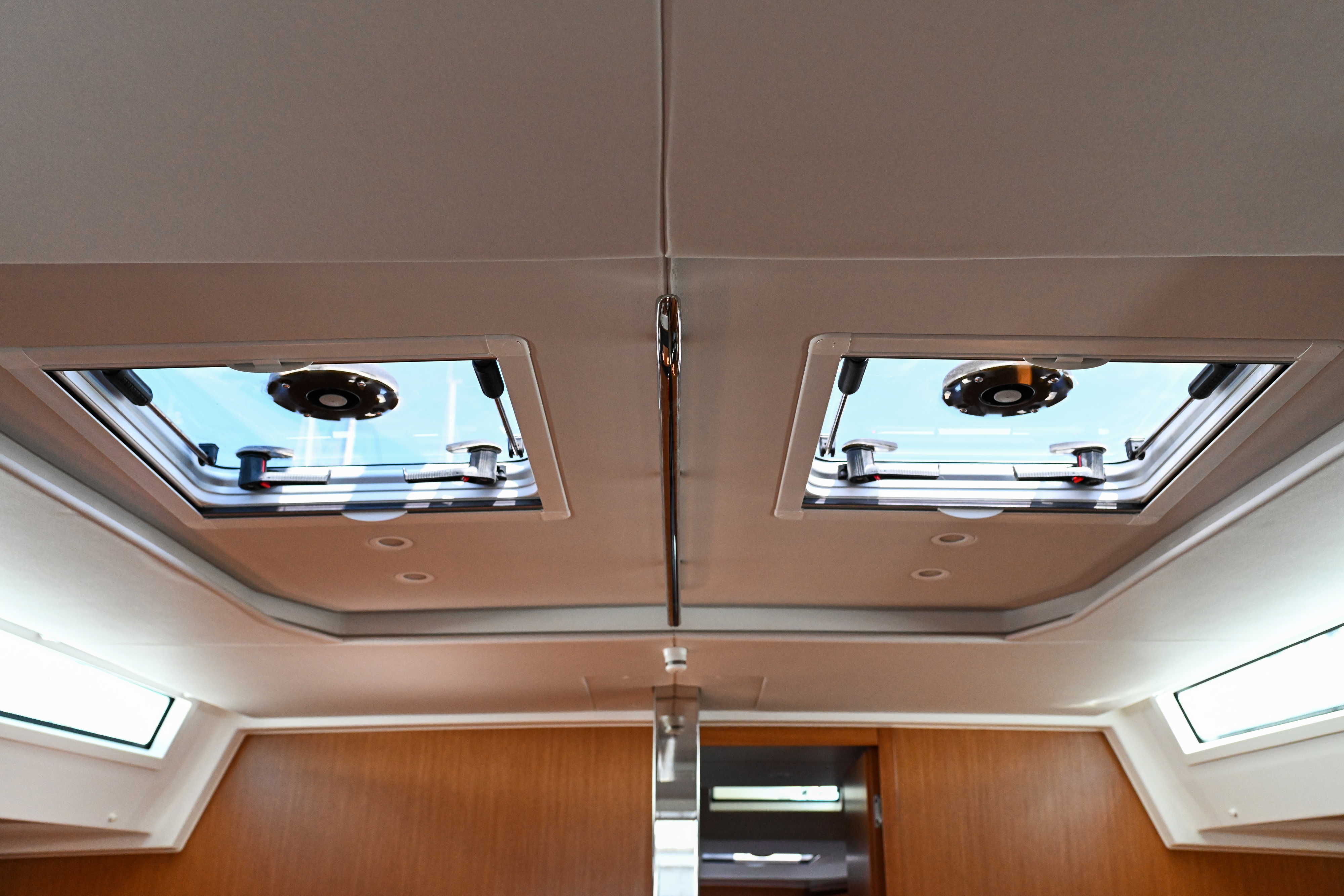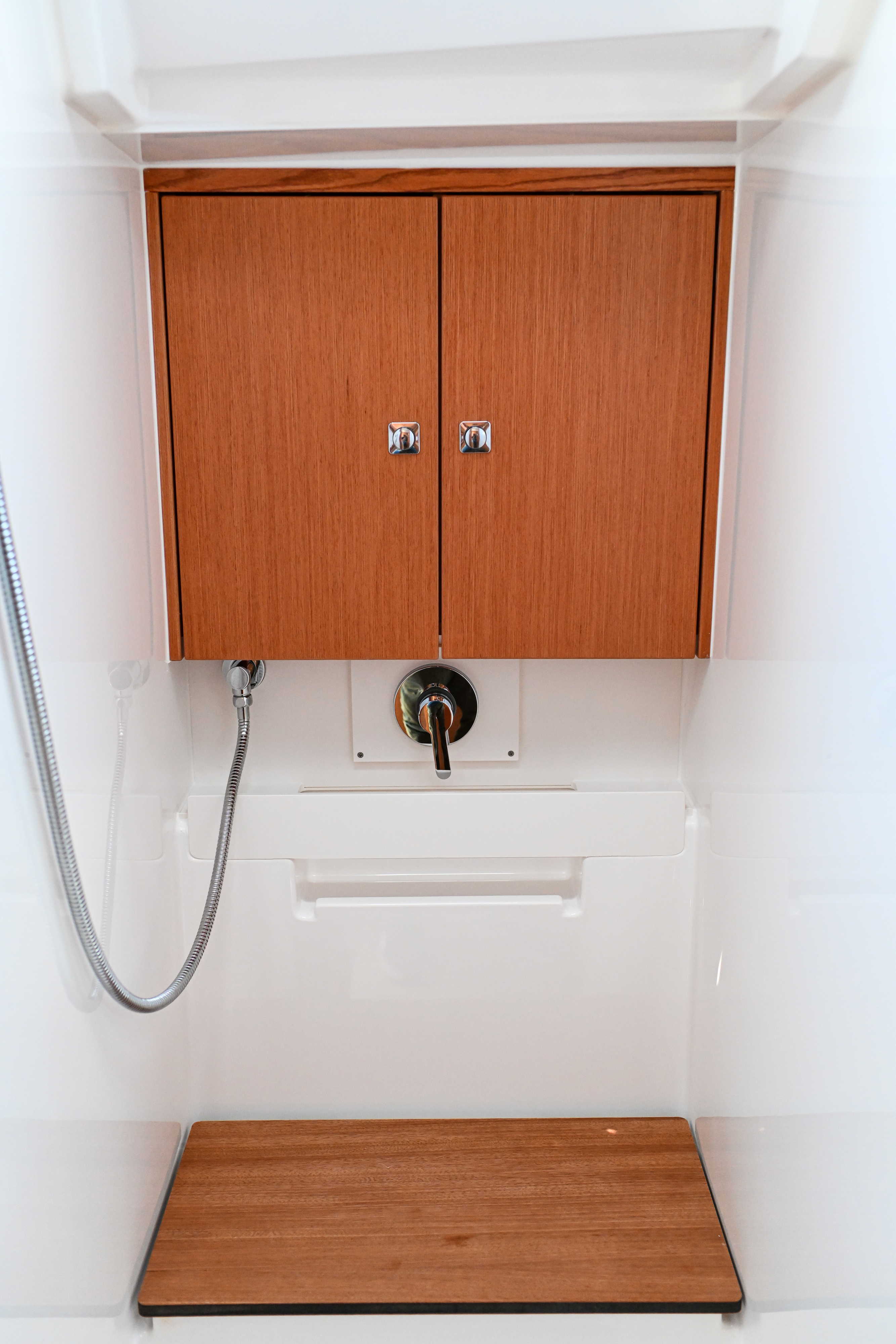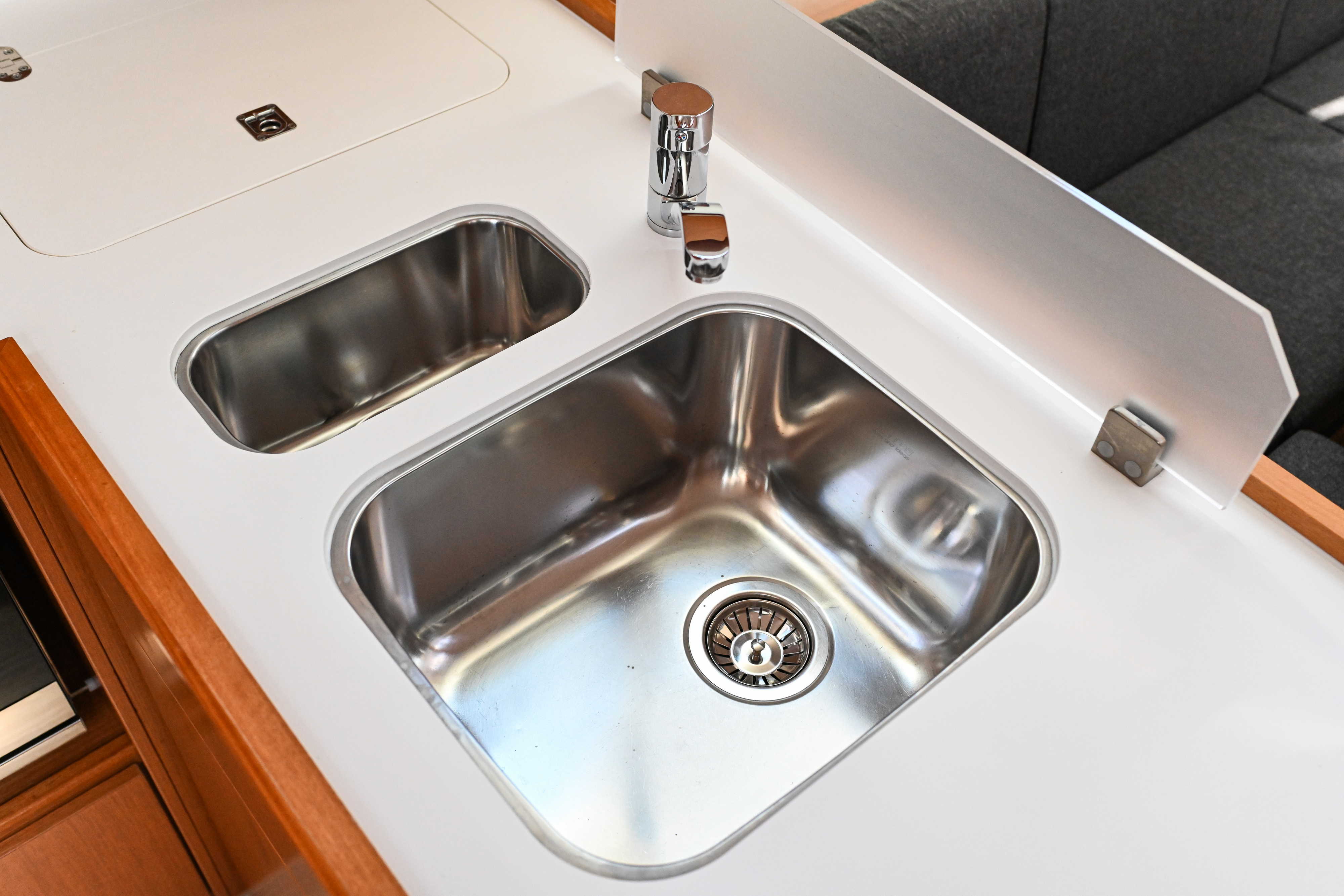 | Outside | Badeplattform, Biminitop, Bootshaken, Cockpitdusche, Cockpitlautsprecher, Cockpitpolster, Cockpittisch, elektr. Ankerwinsch, Fender, Festmacherleinen, Seereling, Solaranlage, Sprayhood, Teak im Cockpit, Windex |