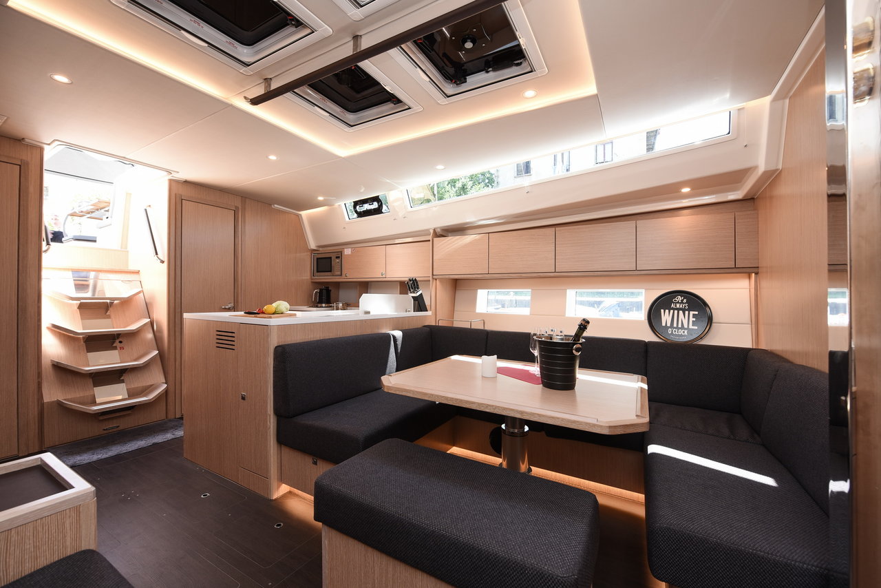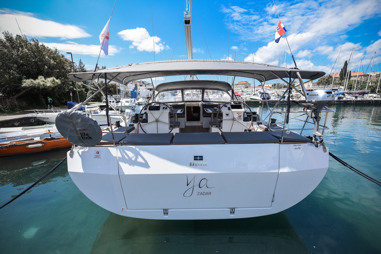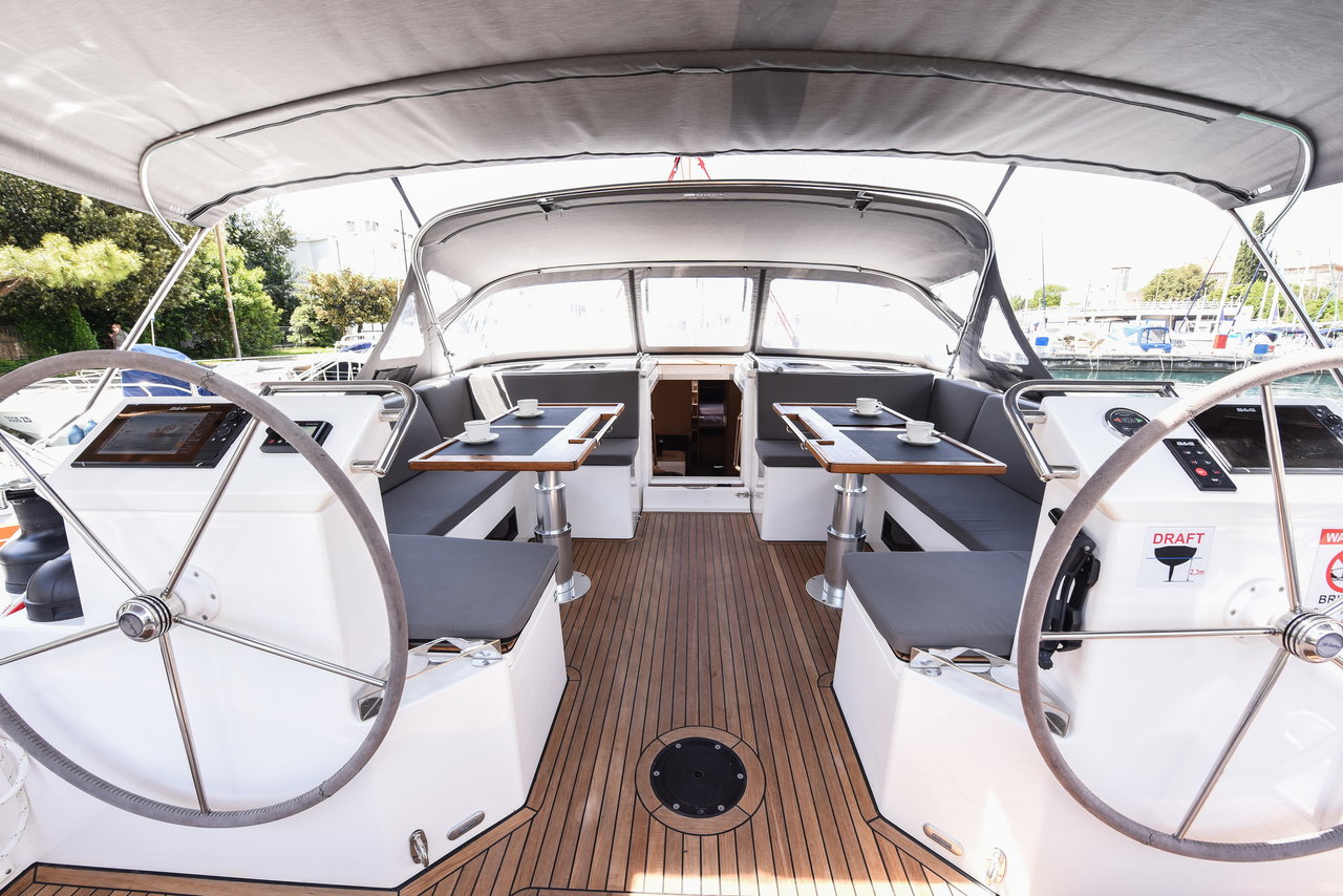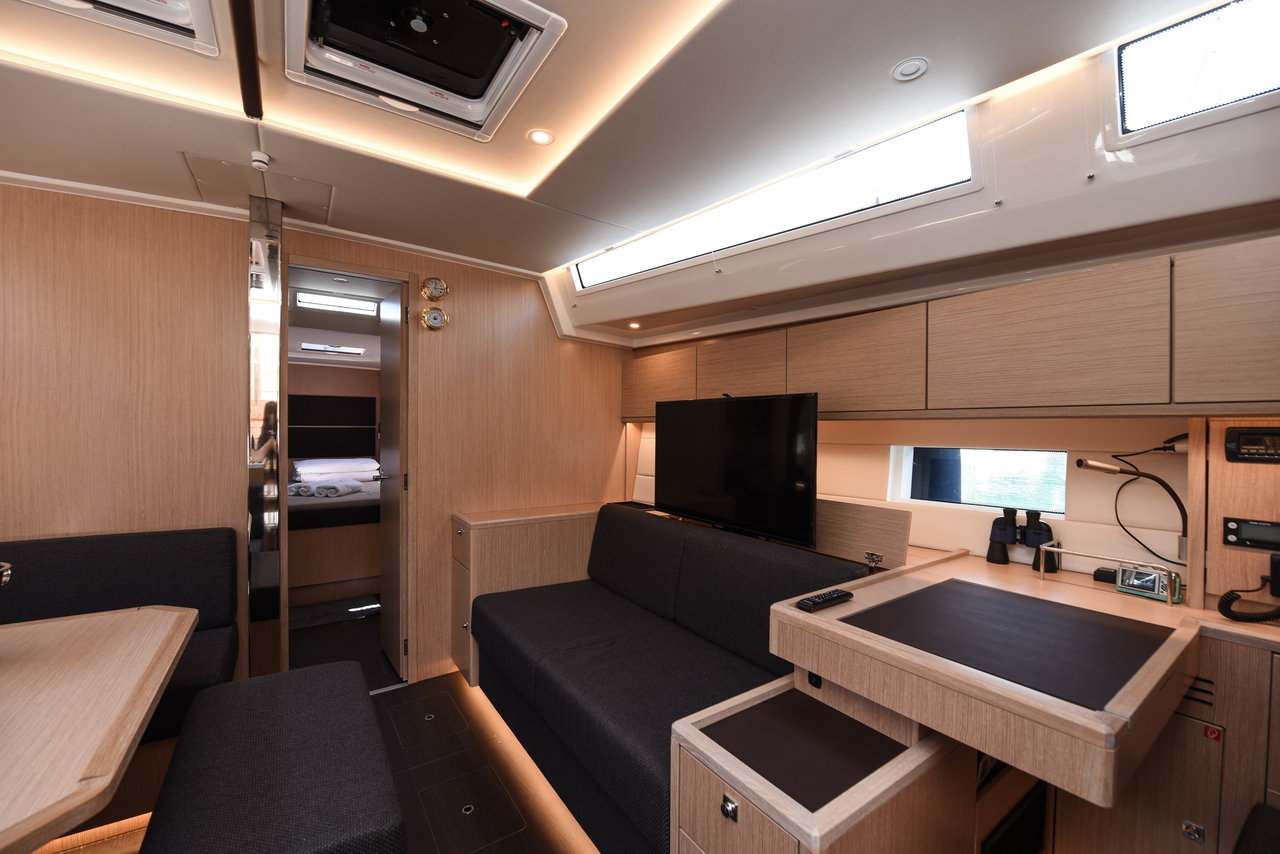 | Outside | Anker mit Kette, Badeleiter, Biminitop, Bootshaken, Cockpitdusche, Cockpitlautsprecher, Cockpitpolster, Cockpittisch (klappbar), elektr. Ankerwinsch, elektr. Winsch, Faltpropeller, Fender, Festmacherleinen, Gangway, Solaranlage, Sprayhood, Unterwasserbeleuchtung, Wasserschlauch, Windex |