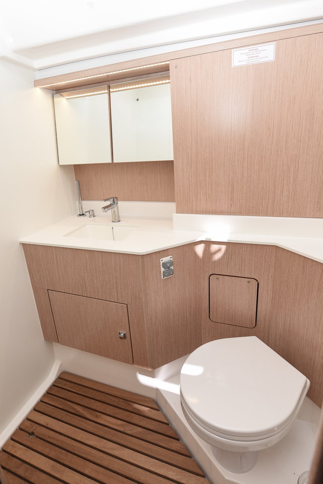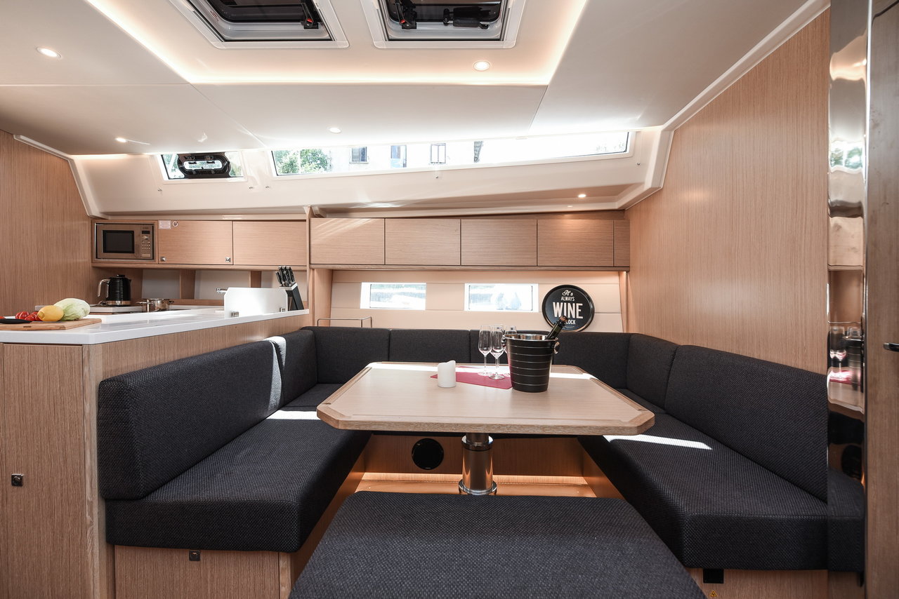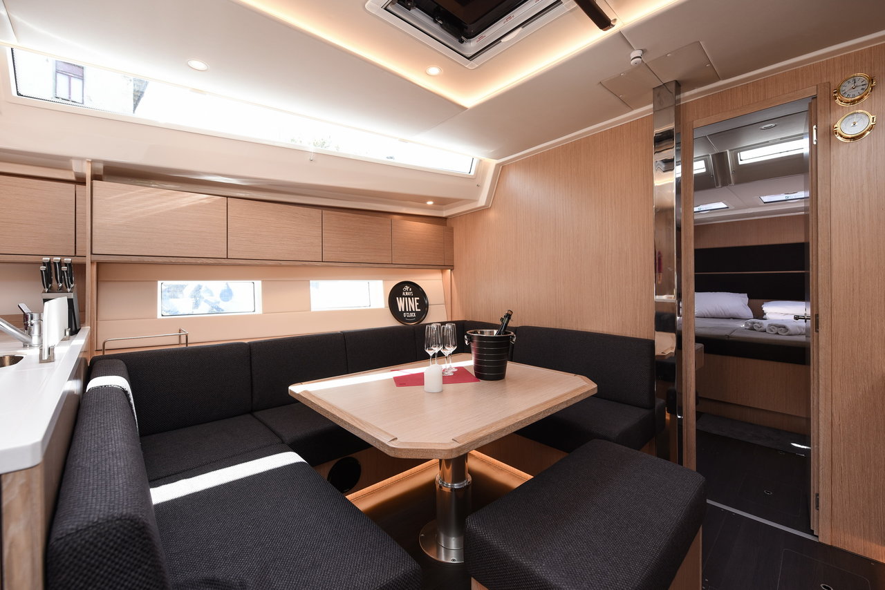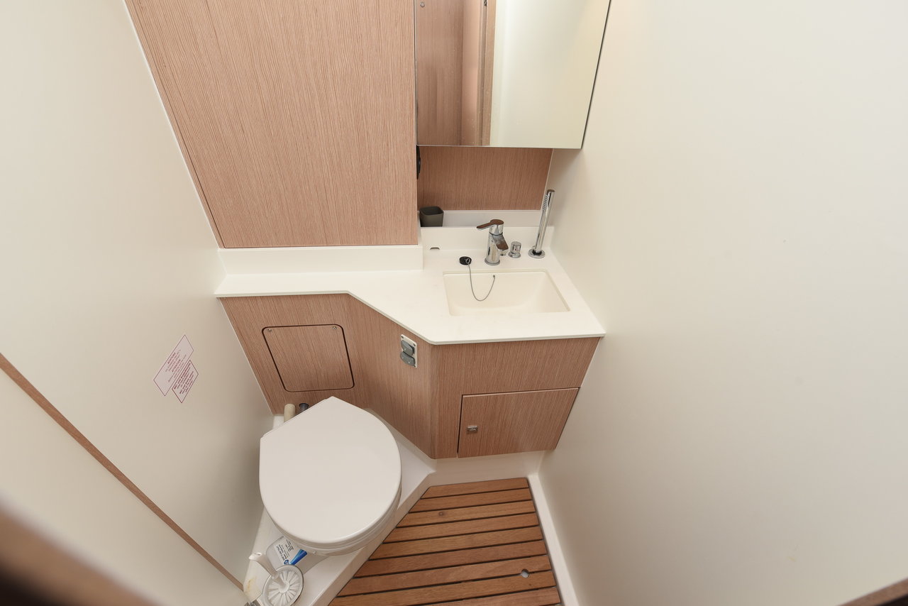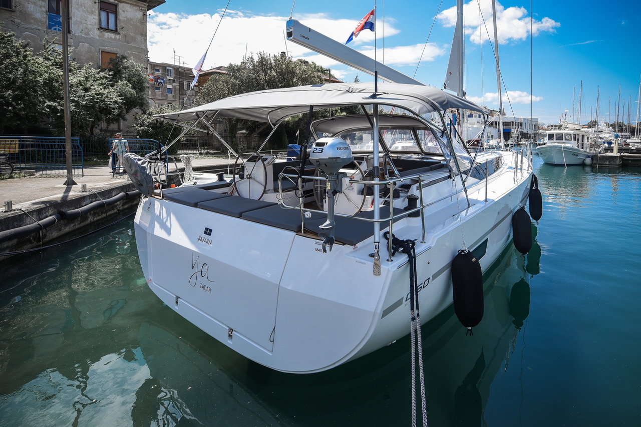 | Outside | Anker mit Kette, Badeleiter, Biminitop, Bootshaken, Cockpitdusche, Cockpitlautsprecher, Cockpitpolster, Cockpittisch (klappbar), elektr. Ankerwinsch, elektr. Winsch, Faltpropeller, Fender, Festmacherleinen, Gangway, Solaranlage, Sprayhood, Unterwasserbeleuchtung, Wasserschlauch, Windex |
