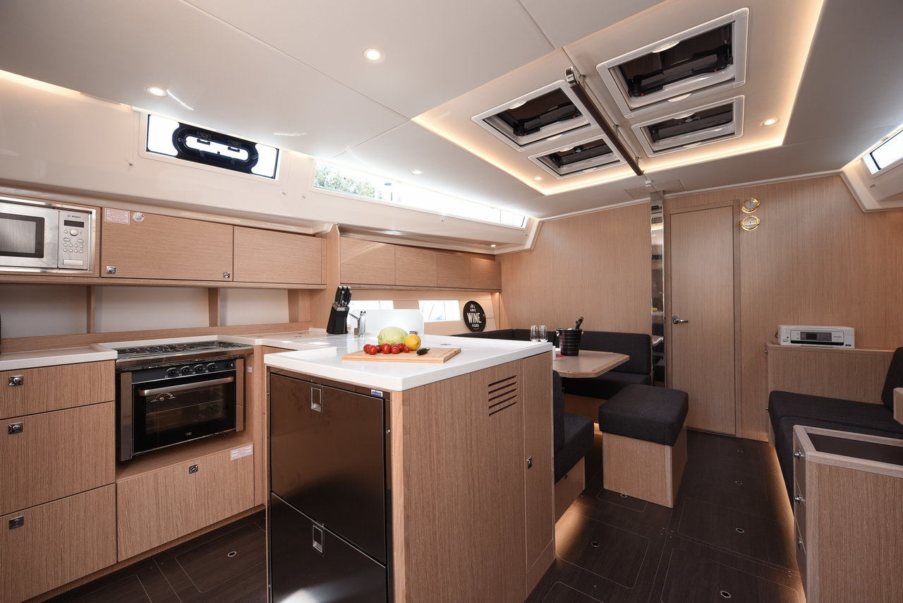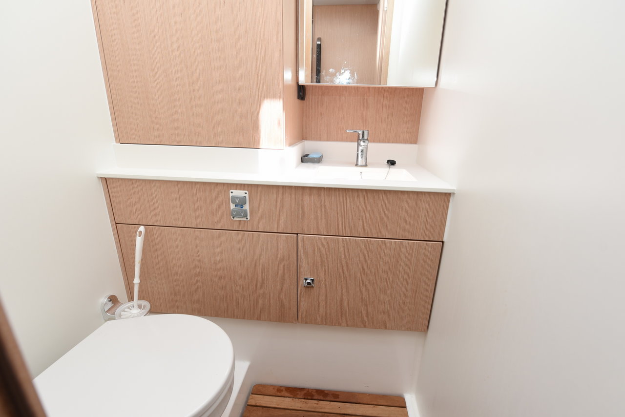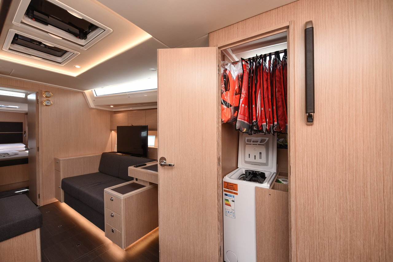 | Inside | 220V Steckdosen, Backofen, Eiswürfelmaschine, Fäkalientank, Gasherd, Generator, Geschirrspüler, Grauwassertank, Inverter 12V/220V, Klimaanlage (ohne Landstrombedarf), Kühlschrank, Ladegerät, Luftpumpe für Beiboot, Nespresso-Maschine, Pantryausstattung, Radio mit CD, TV, Warmwasser, Waschmaschine, WC (elektr.) |