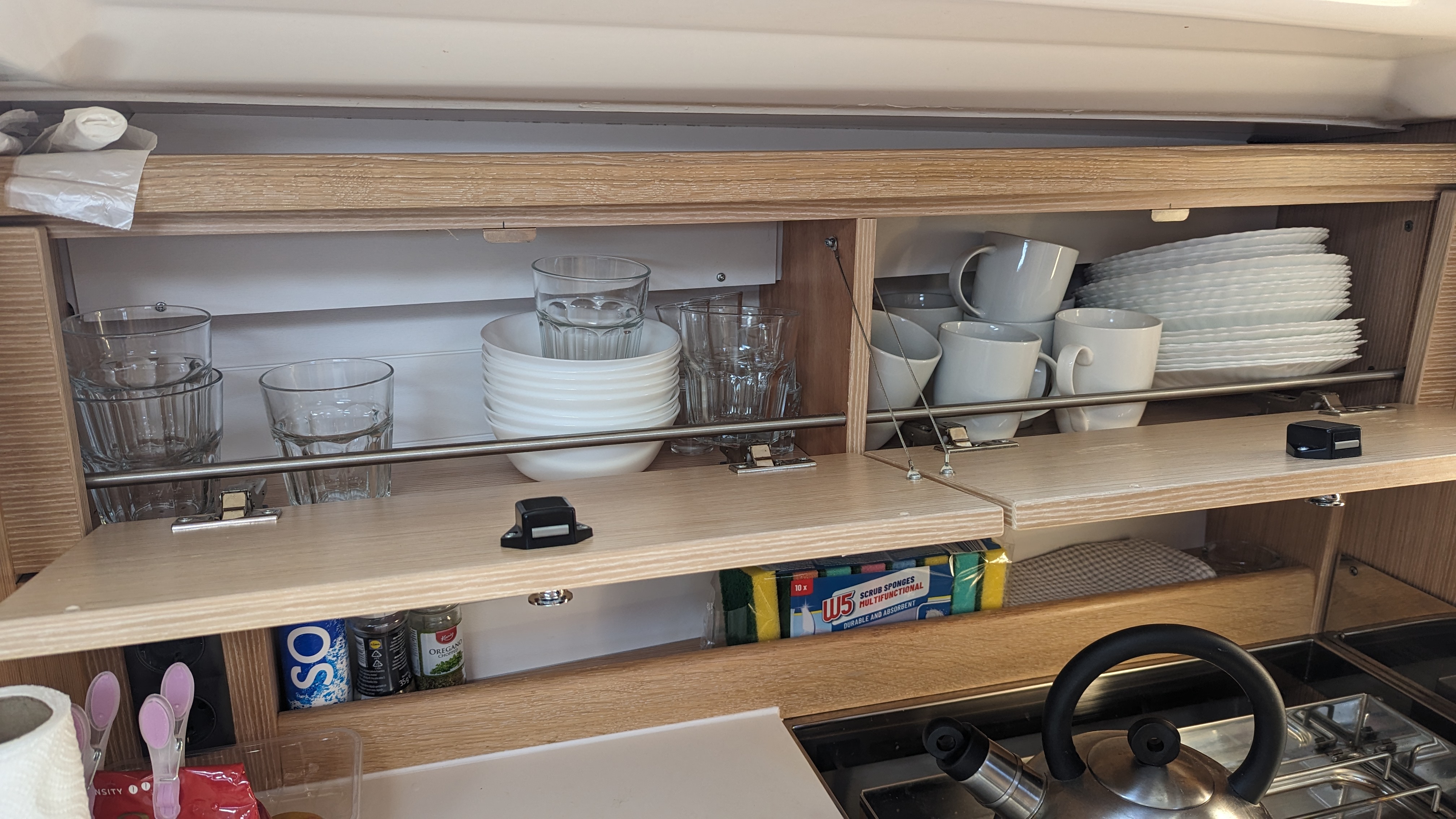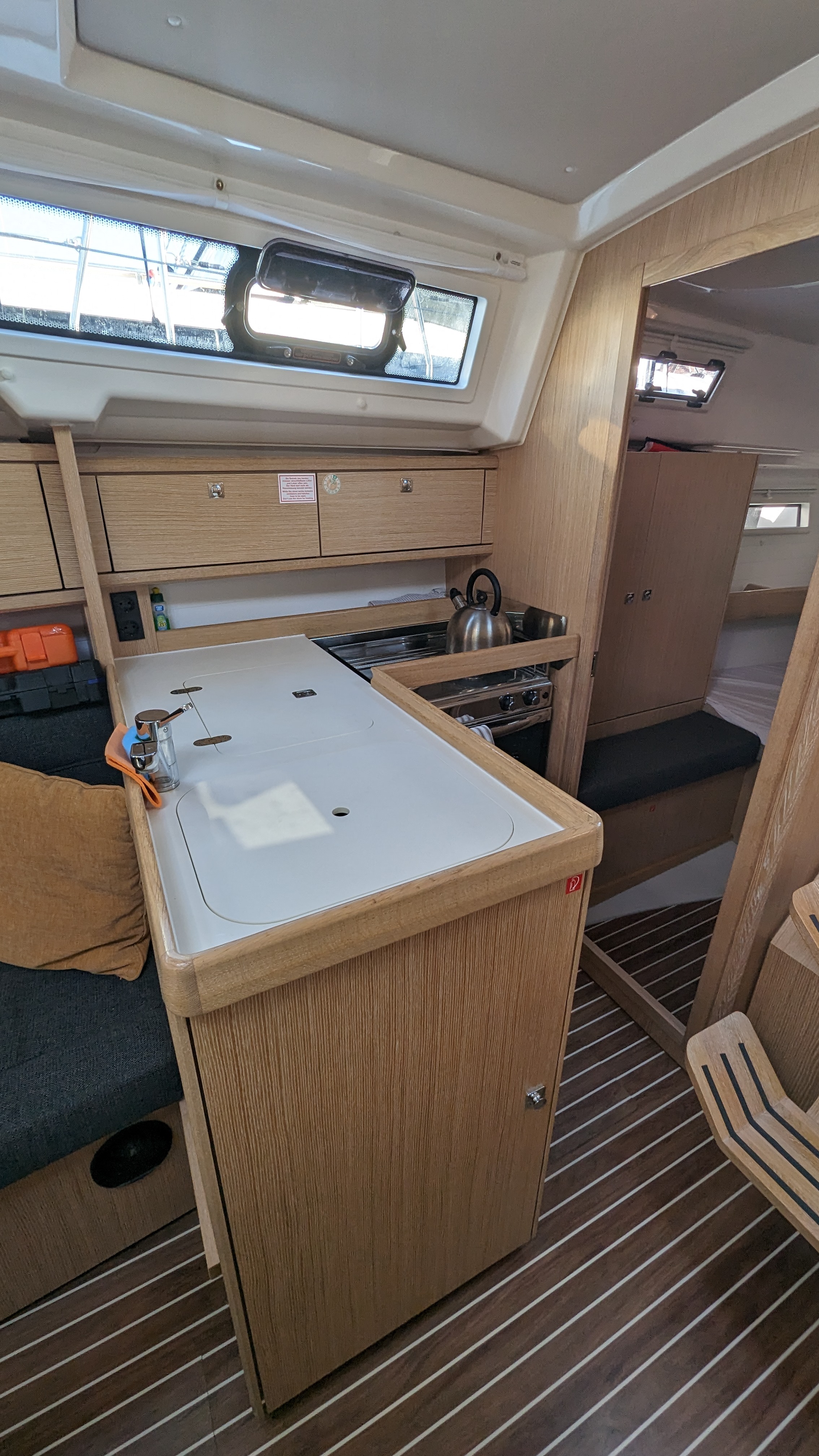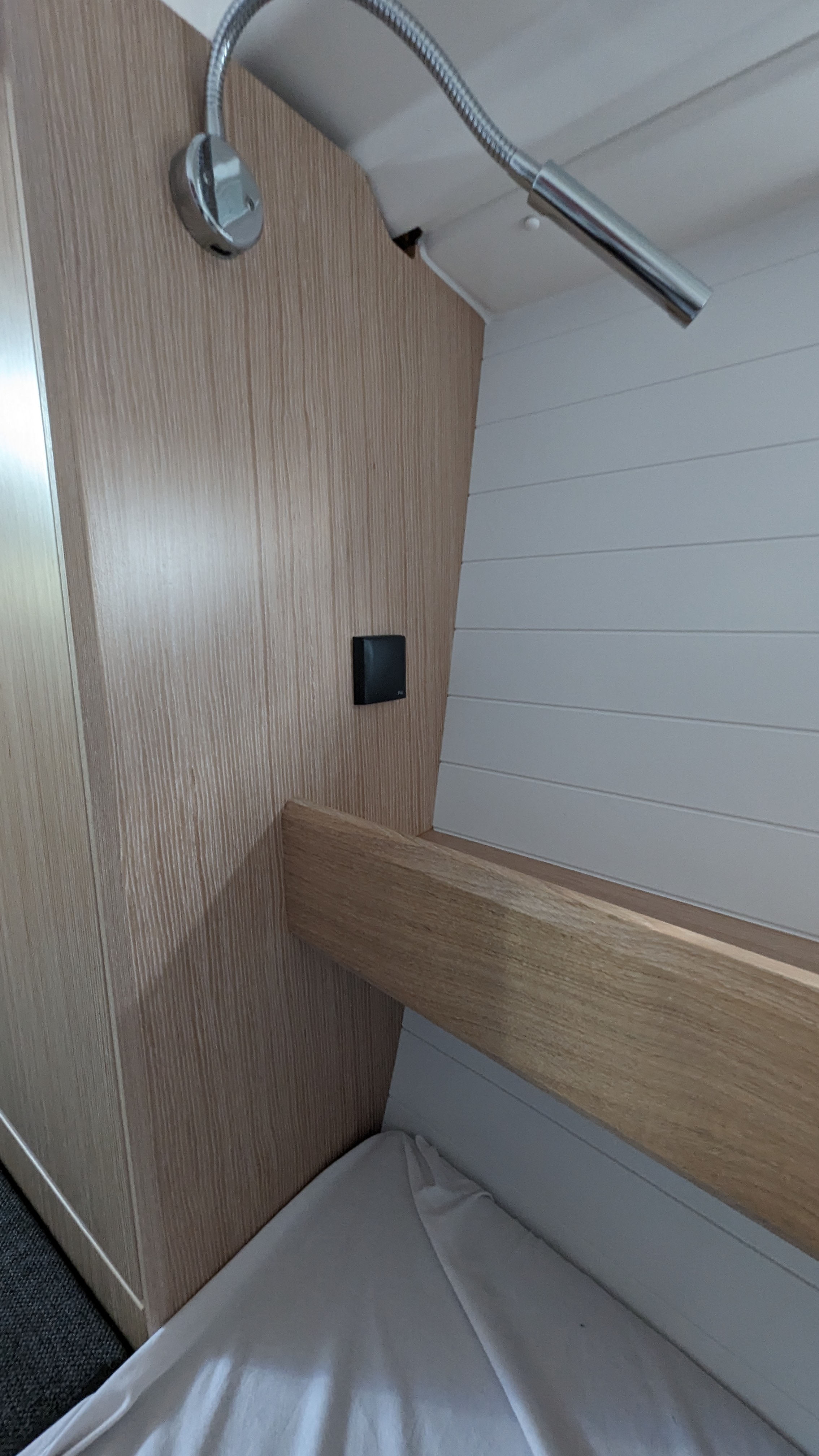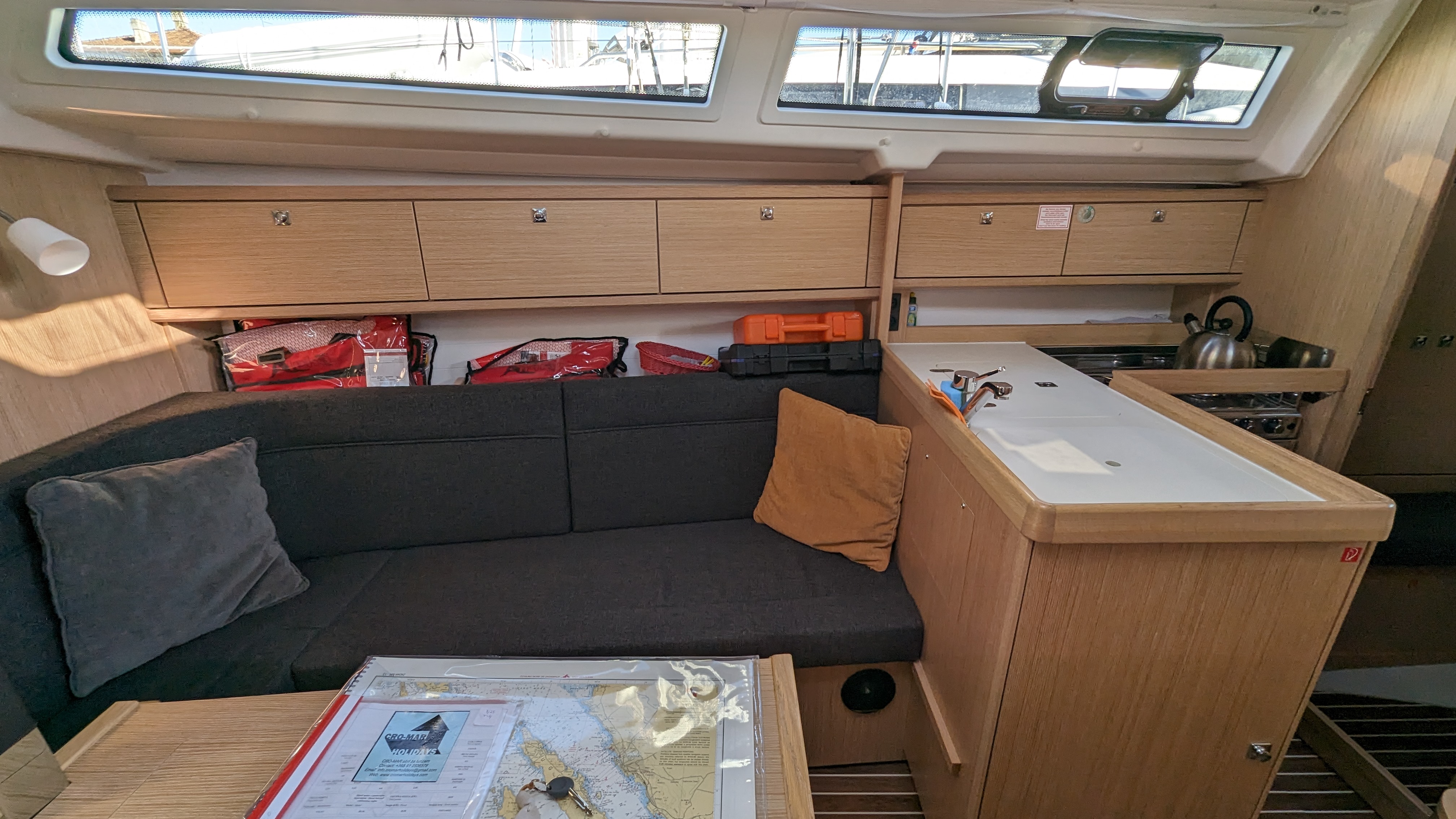 | Inside | Backofen, Borduhr, Fäkalientank, Gasherd, Inverter 12V/220V, Kleiderbügel, Klobürste, Kühlschrank, Ladegerät, Luftpumpe für Beiboot, Pantryausstattung, Radio mit CD, Trichter, Wasserkocher |