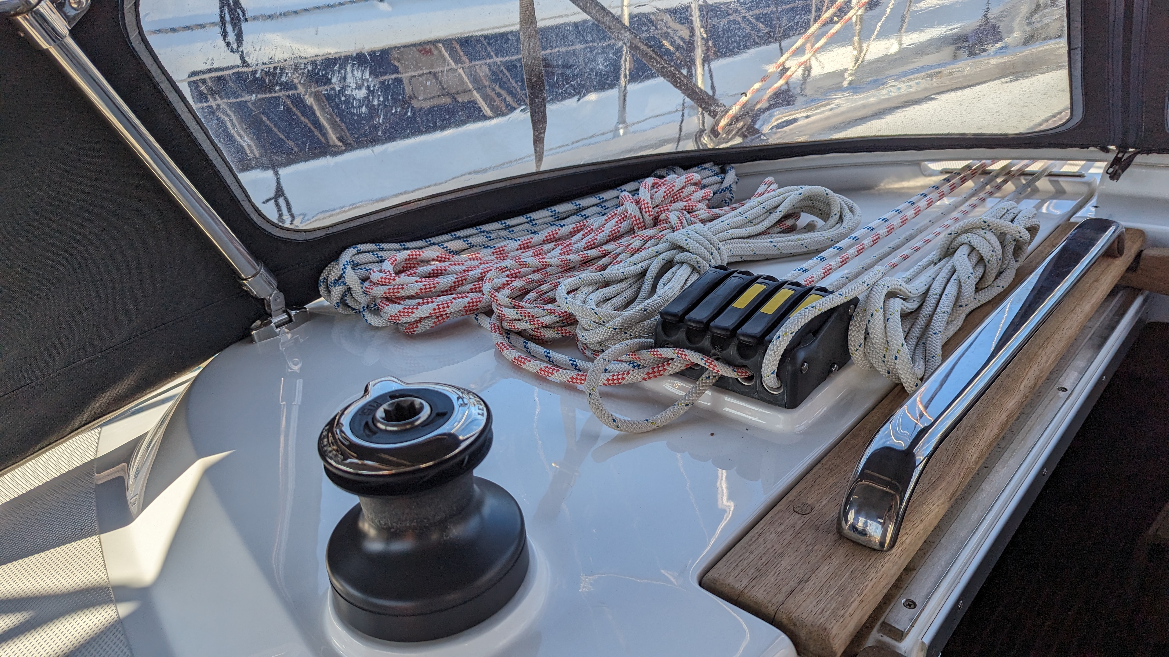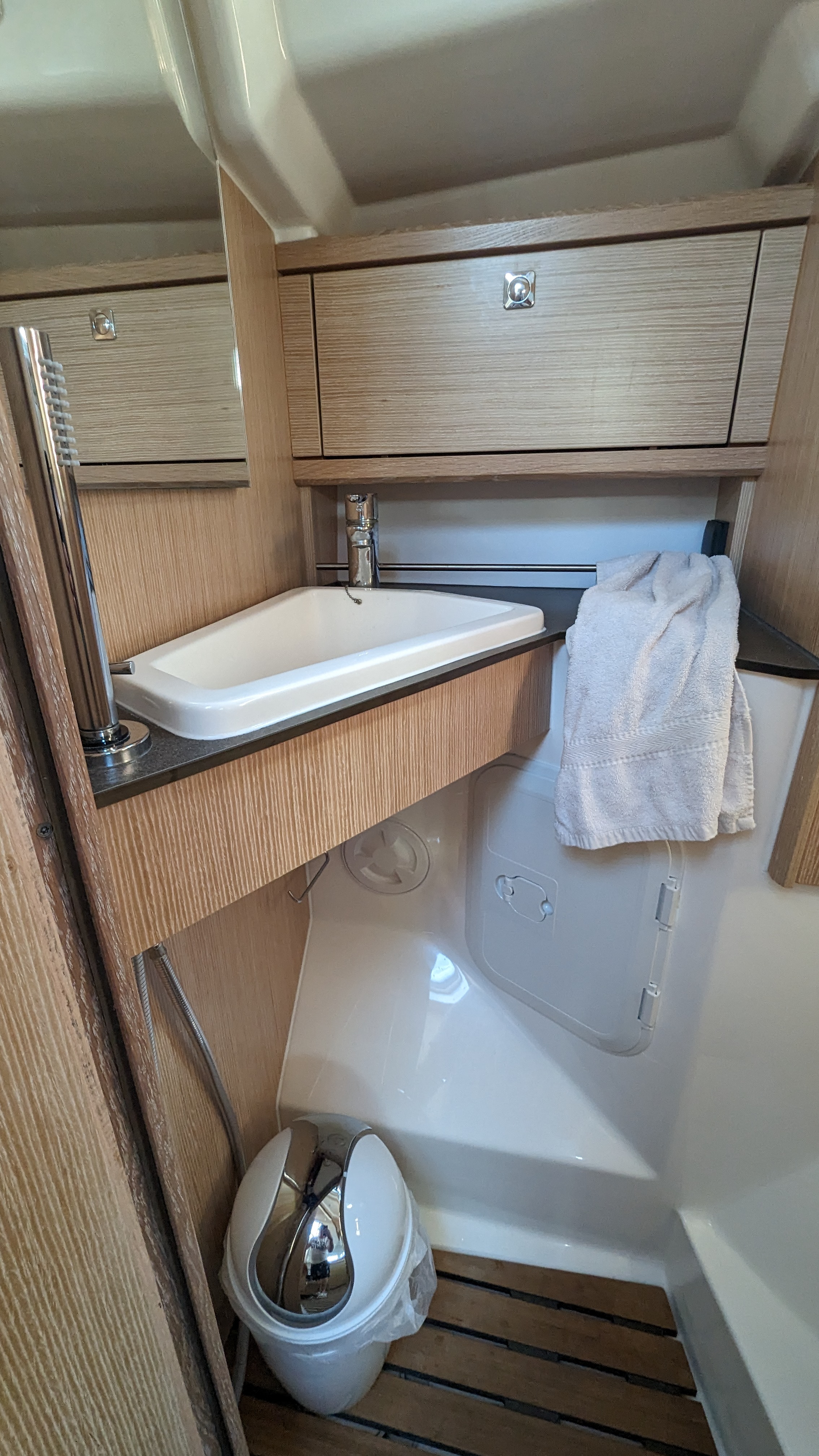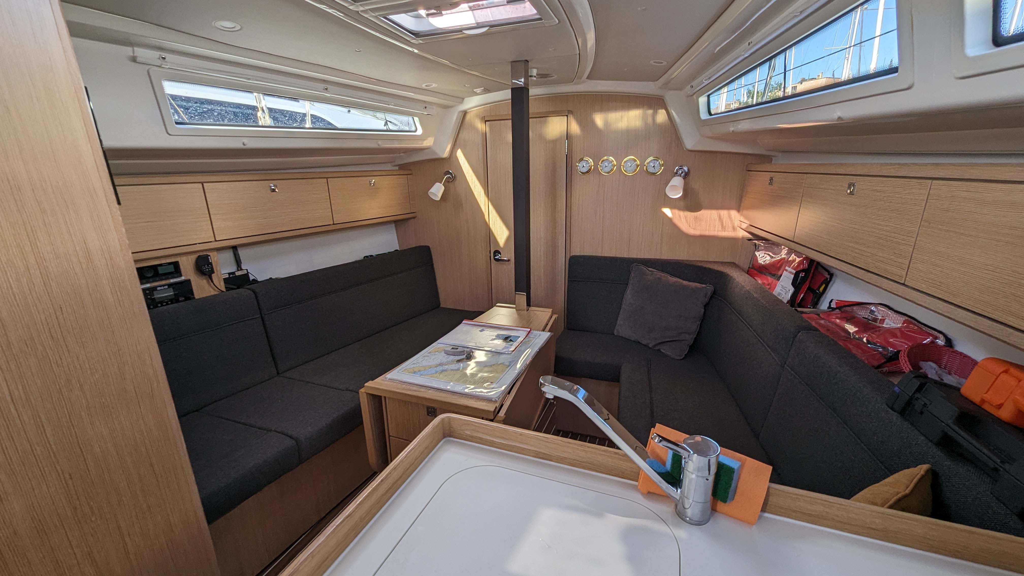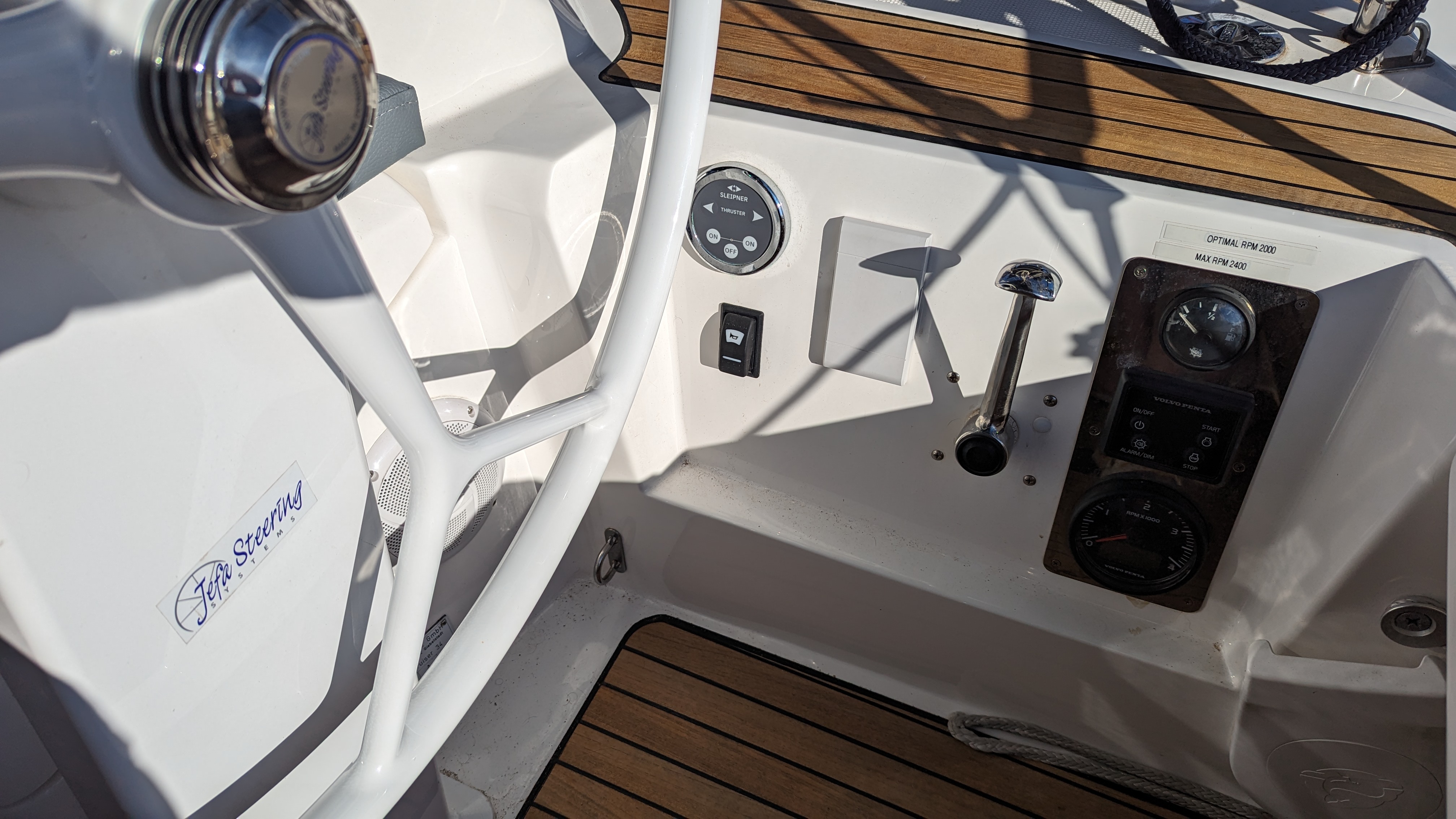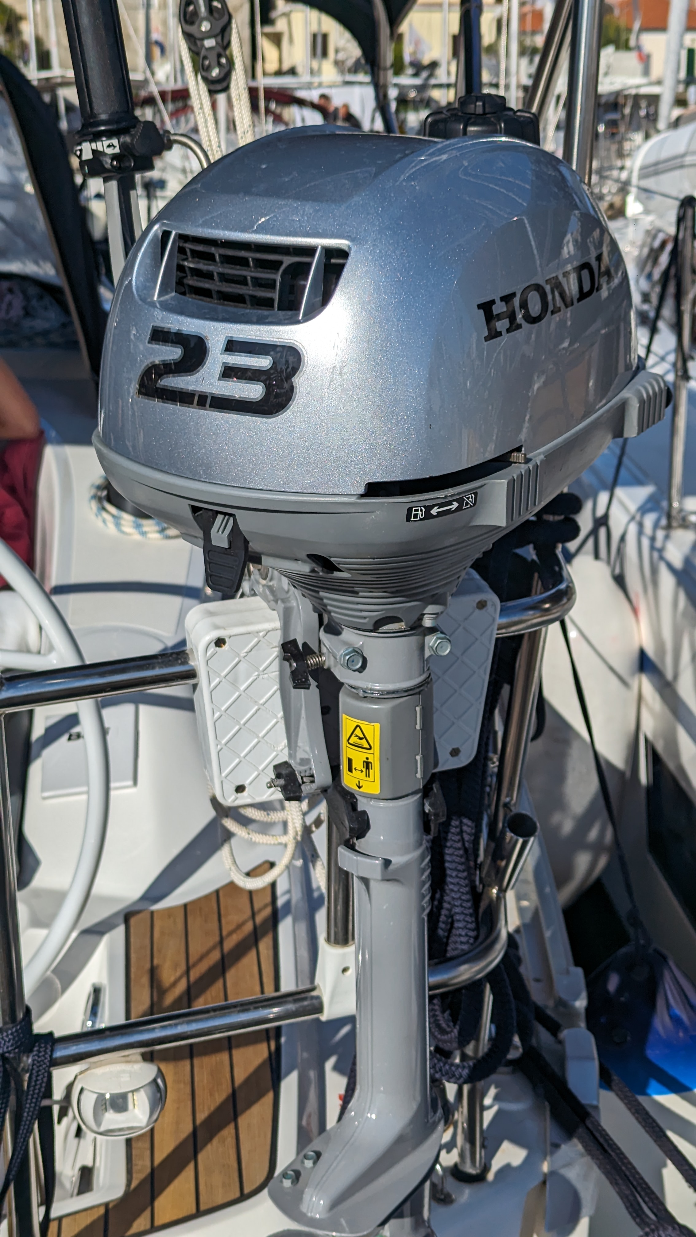 | Outside | 220 V-Landanschluss, Badeleiter, Benzinkanister, Biminitop, Bootshaken, Cockpitdusche, Cockpitlautsprecher, Cockpitpolster, Cockpittisch, Cockpittisch absenkbar, Deckbürste, Delta-Anker, elektr. Ankerwinsch, Fender, Festmacherleinen, Gangway, Kugelfender, Kunststoff-Eimer (Pütz), Solaranlage, Sprayhood, Teak im Cockpit, Vorhängeschloss, Wantenschneider, Wasserkanister , Wasserschlauch, Windex, Winschen |