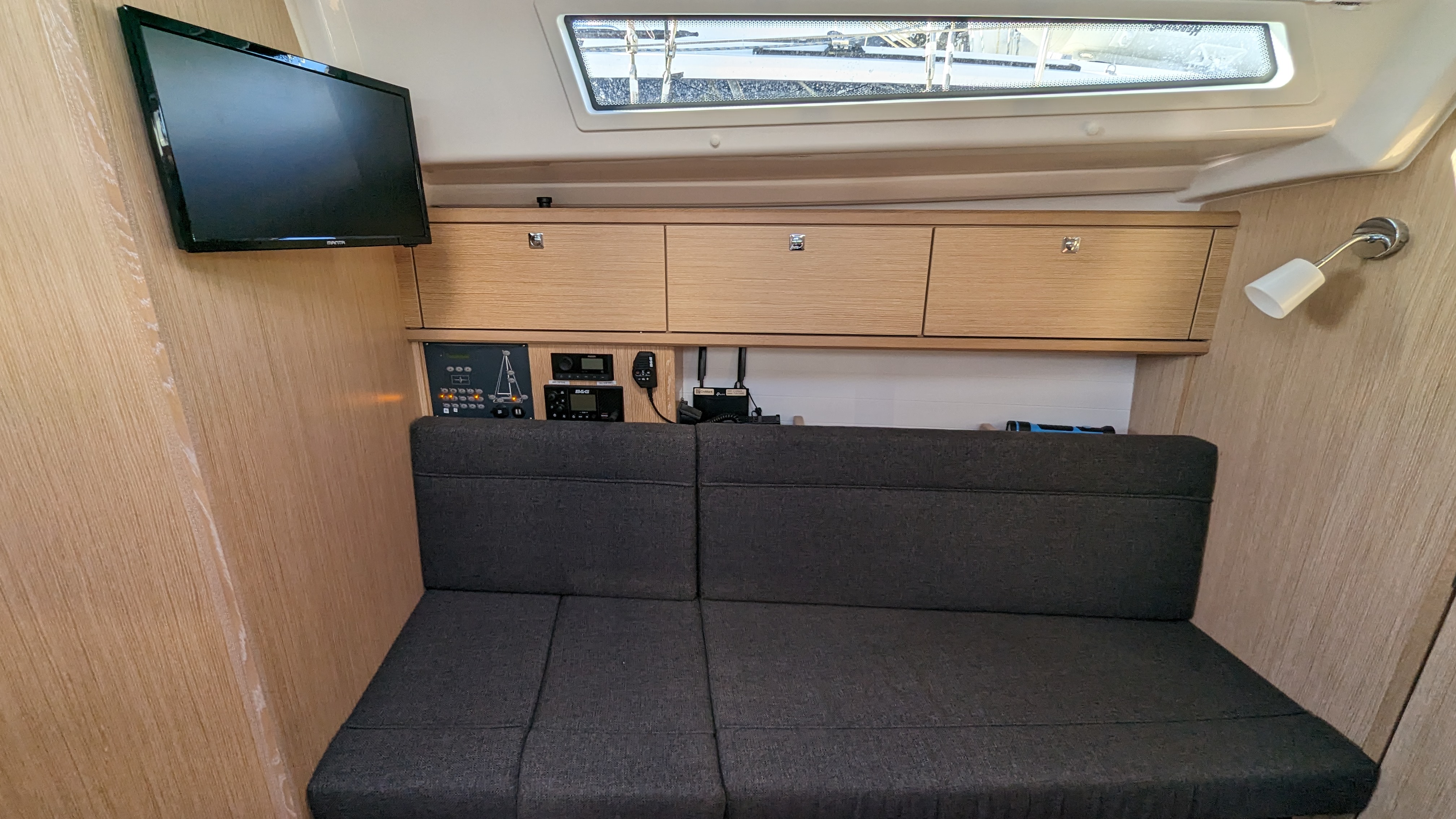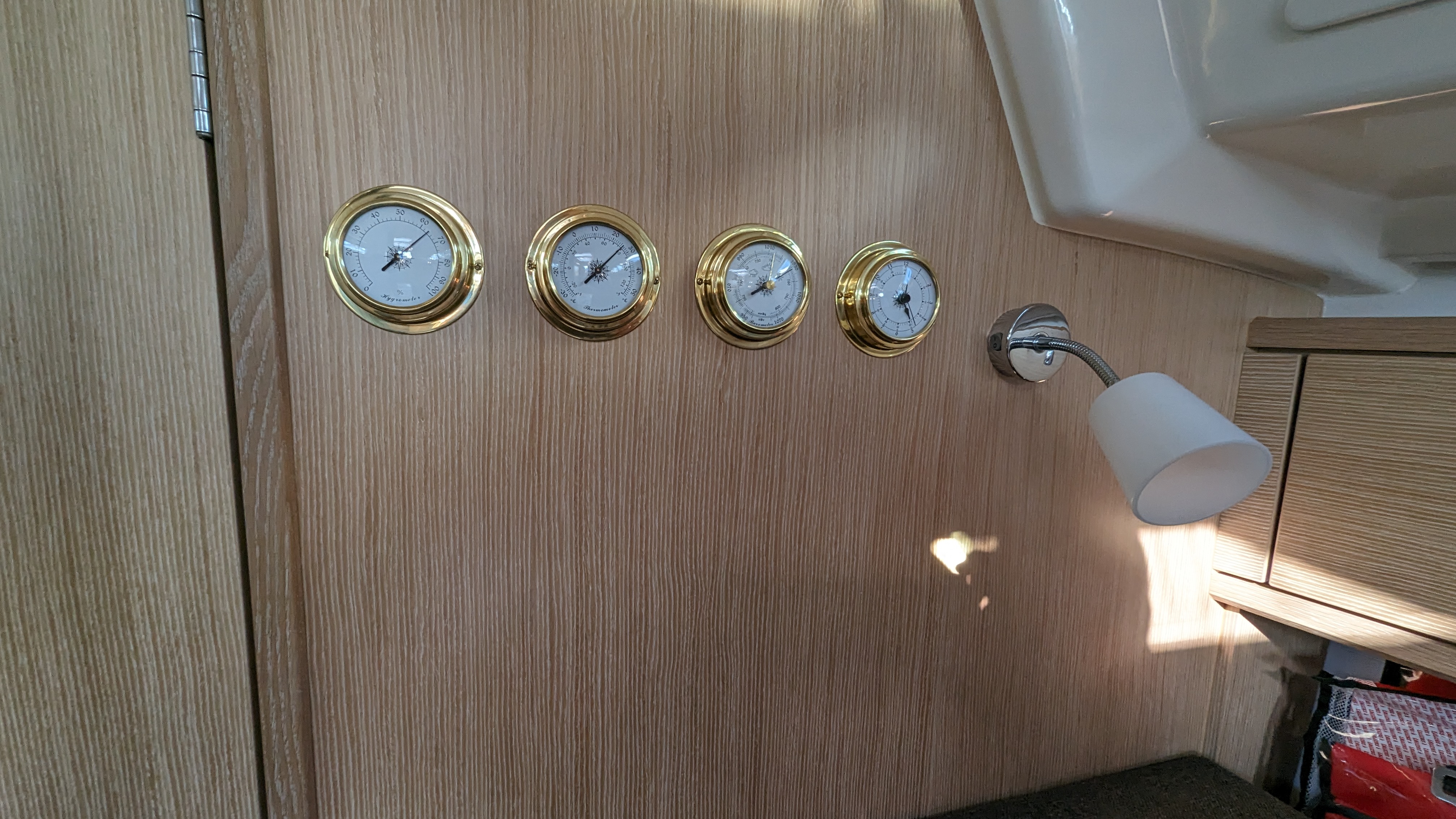 | Navigation | Barometer, Fernglas, GPS mit Kartenplotter im Cockpit, Handpeilkompass, Kompass, Navigationsbesteck, Seekarten, Tridata (Log, Echolot, Windm.), Windmesser |