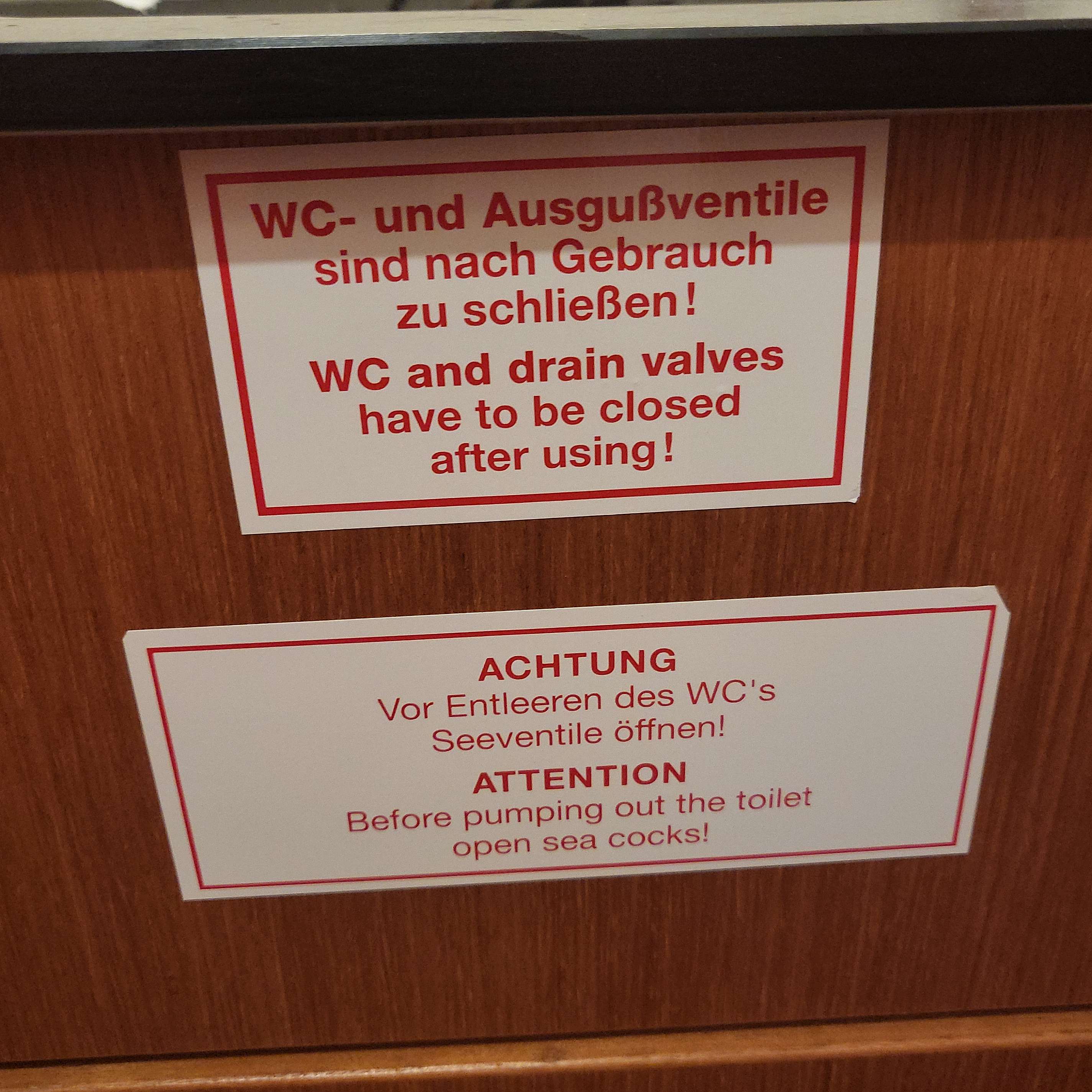 Die Lupe hat keinen Fäkalientank!!! In der Ankerbucht etc. sehr unangenehm. Das Radio startete alle 3 Minuten neu, konnte also nicht verwendet werden. Die Toilettenpumpe quietschte sehr laut. Nachts nicht schön. Schmieren mit Speiseöl schaffte nur kurz Abhilfe. Der Gashebel war ausgesprochen ungünstig angebracht.