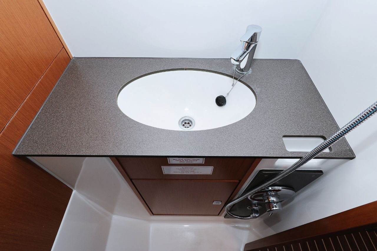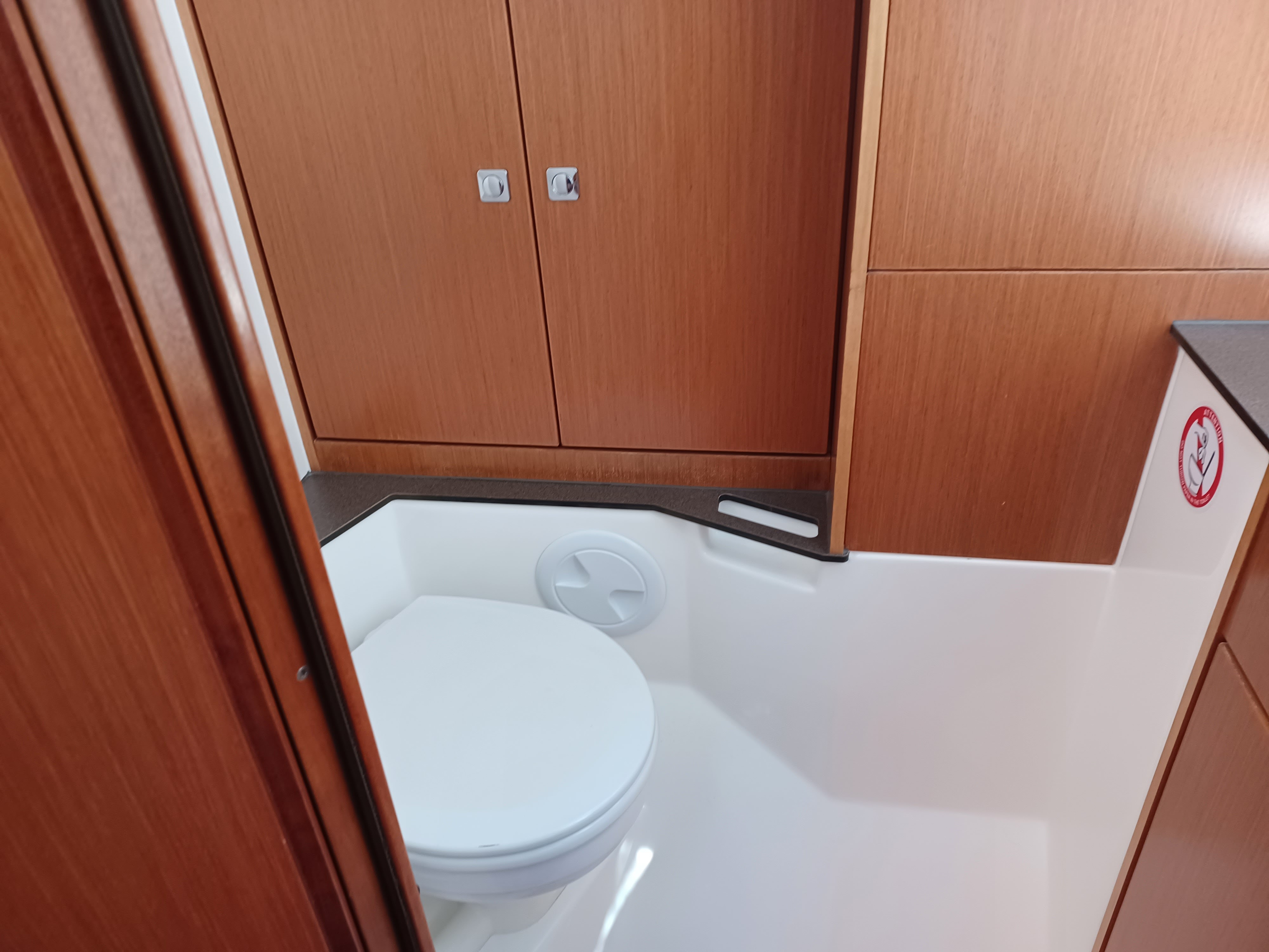 | Safety | Autopilot, Bootsmannstuhl, Bordapotheke, Bordwerkzeug, Bugstrahlruder, elektr. Bilgepumpe, Feststoffschwimmwesten, Feuerlöscher, Handbilgepumpe, Nebelhorn, Notsignale, Radarreflektor, Rettungskragen, Sicherheitsgurt, Taschenlampe, UKW-Funk |