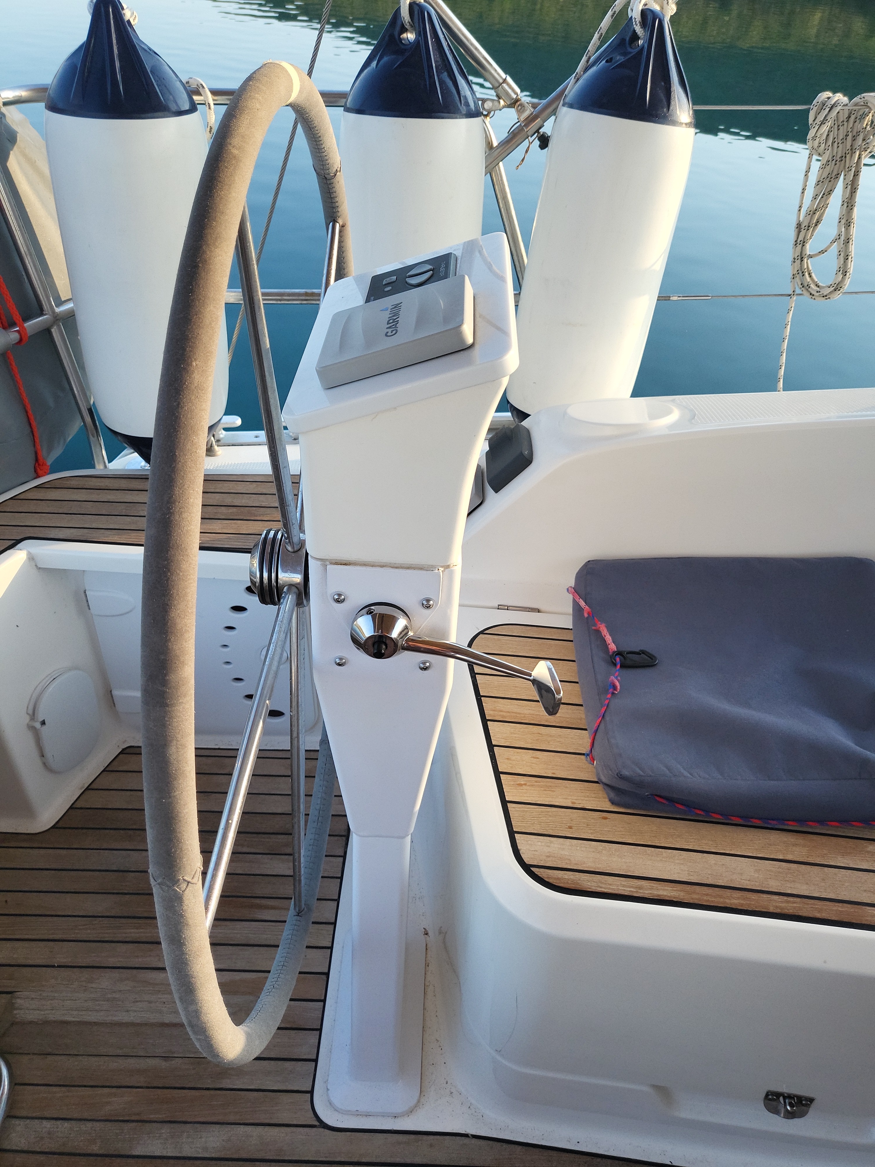 | Navigation | Barometer, Fernglas, GPS mit Kartenplotter im Cockpit, Handpeilkompass, Navigationsbesteck, Seekarten, Steuerkompass, Tridata (Log, Echolot, Windm.) |