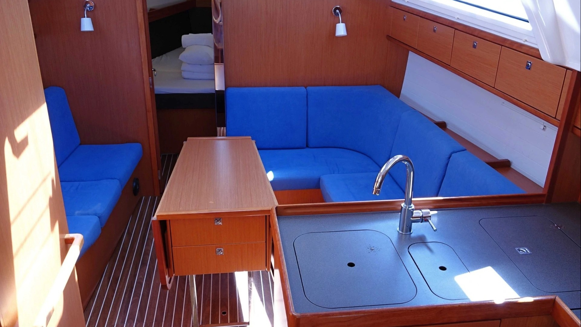 | Outside | Badeplattform, Biminitop, Cockpitdusche, Cockpittisch, elektr. Ankerwinsch, Solaranlage, Sprayhood |