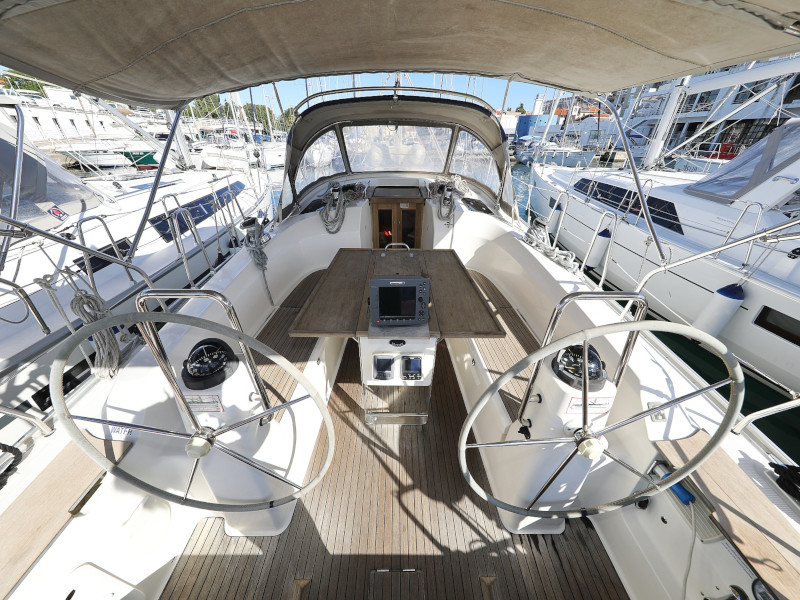 Die Elektrik war in sehr gutem Zustand. Ebenso Segel, laufendes und stehendes Gut. Ankeranlage war super. Das Dingi war sehr gut. Yacht-, Funk und Charter Unterlagen waren vorhanden. Ebenso Hafenhandbücher. Pantry ist in gutem Zustand und gut sortiert.