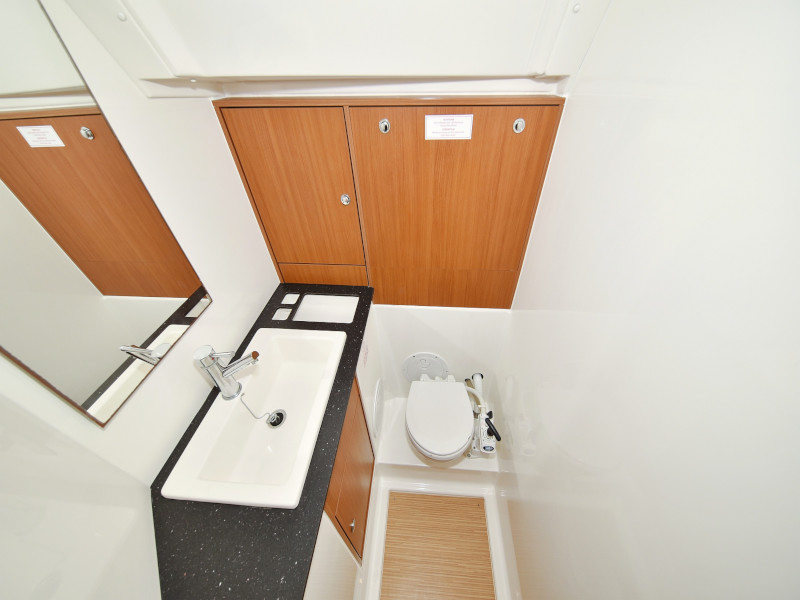 | Safety | Autopilot, Bootsmannstuhl, Bordapotheke, Bordwerkzeug, Bugstrahlruder, elektr. Bilgepumpe, Feststoffschwimmwesten, Feuerlöscher, Handbilgepumpe, Nebelhorn, Notsignale, Radarreflektor, Rettungskragen, Sicherheitsgurt, Taschenlampe, UKW-Funk |