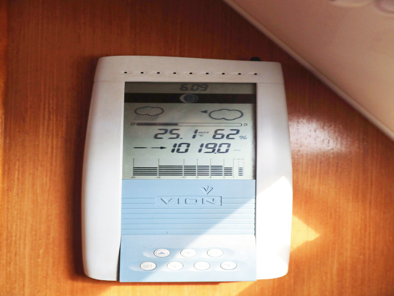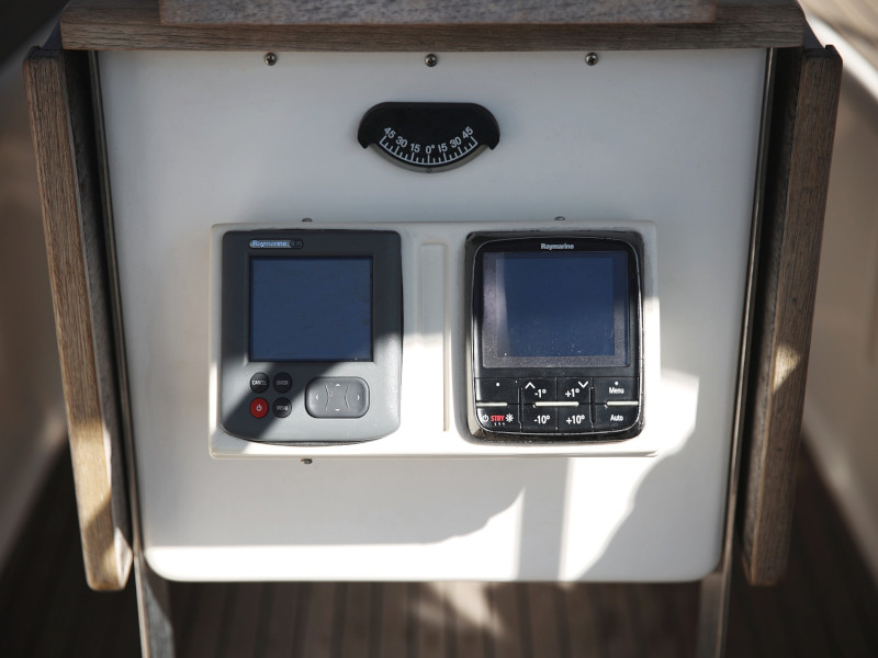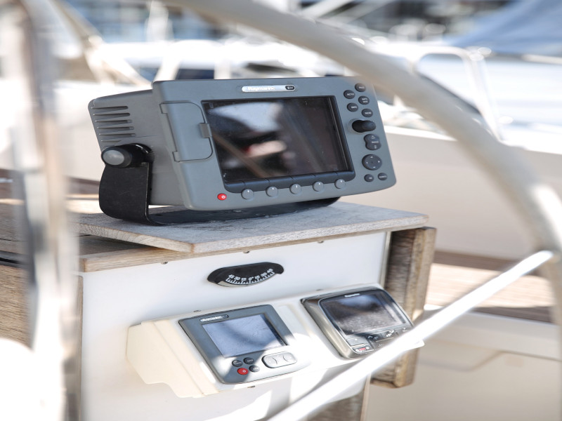 | Navigation | Barometer, Fernglas, GPS mit Kartenplotter im Cockpit, Handpeilkompass, Navigationsbesteck, Seekarten, Steuerkompass, Tridata (Log, Echolot, Windm.) |