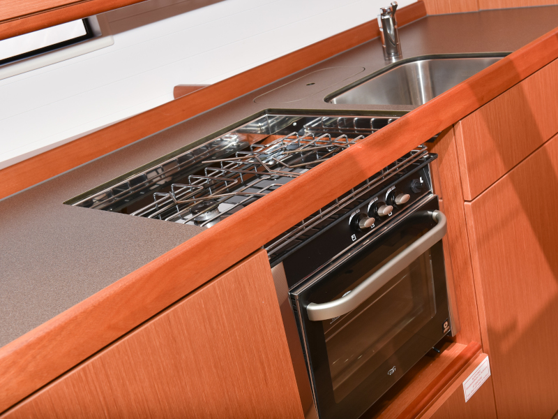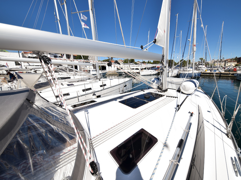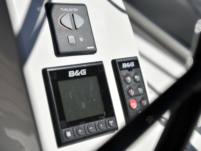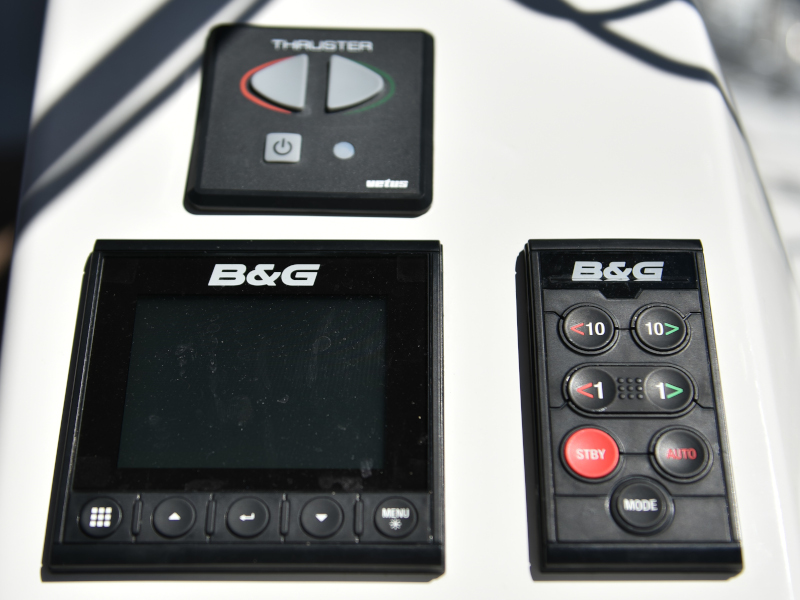 | Safety | Autopilot, Bootsmannstuhl, Bordapotheke, Bordwerkzeug, Bugstrahlruder, elektr. Bilgepumpe, Feststoffschwimmwesten, Feuerlöscher, Handbilgepumpe, Nebelhorn, Notsignale, Radarreflektor, Sicherheitsgurt, Taschenlampe, UKW-Funk |