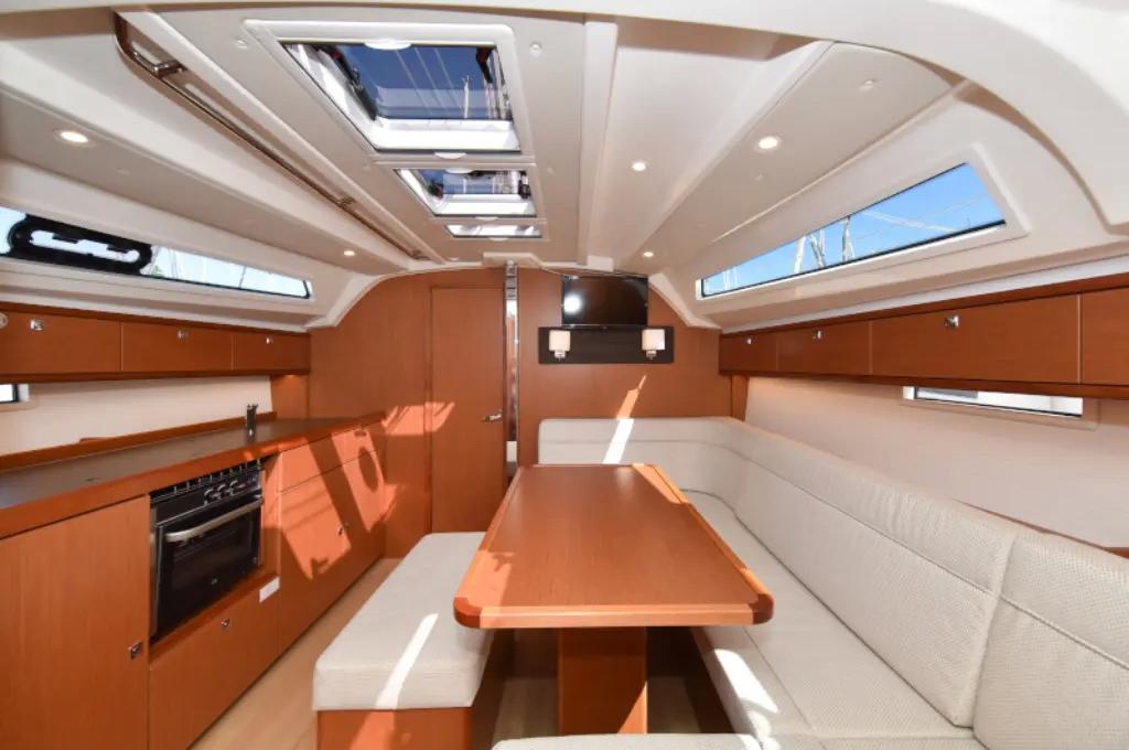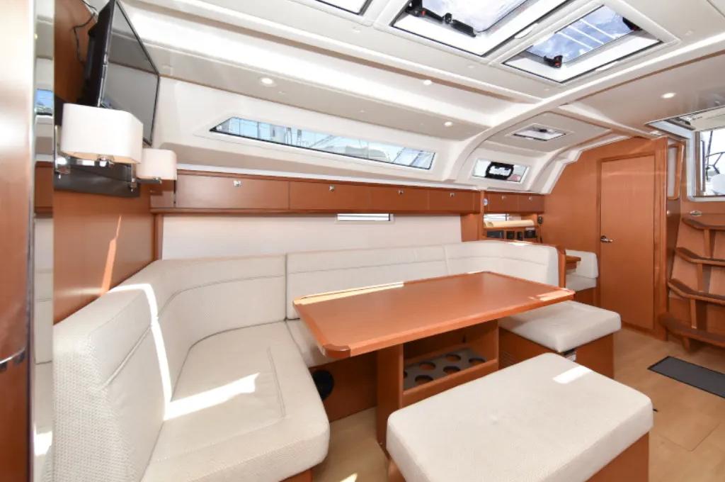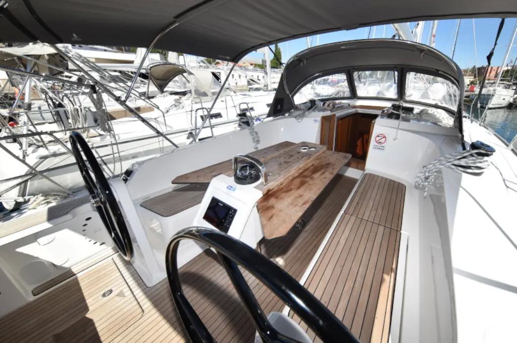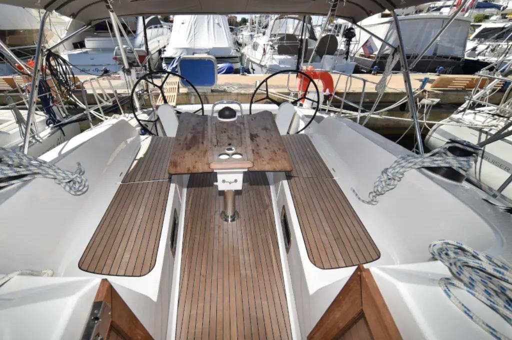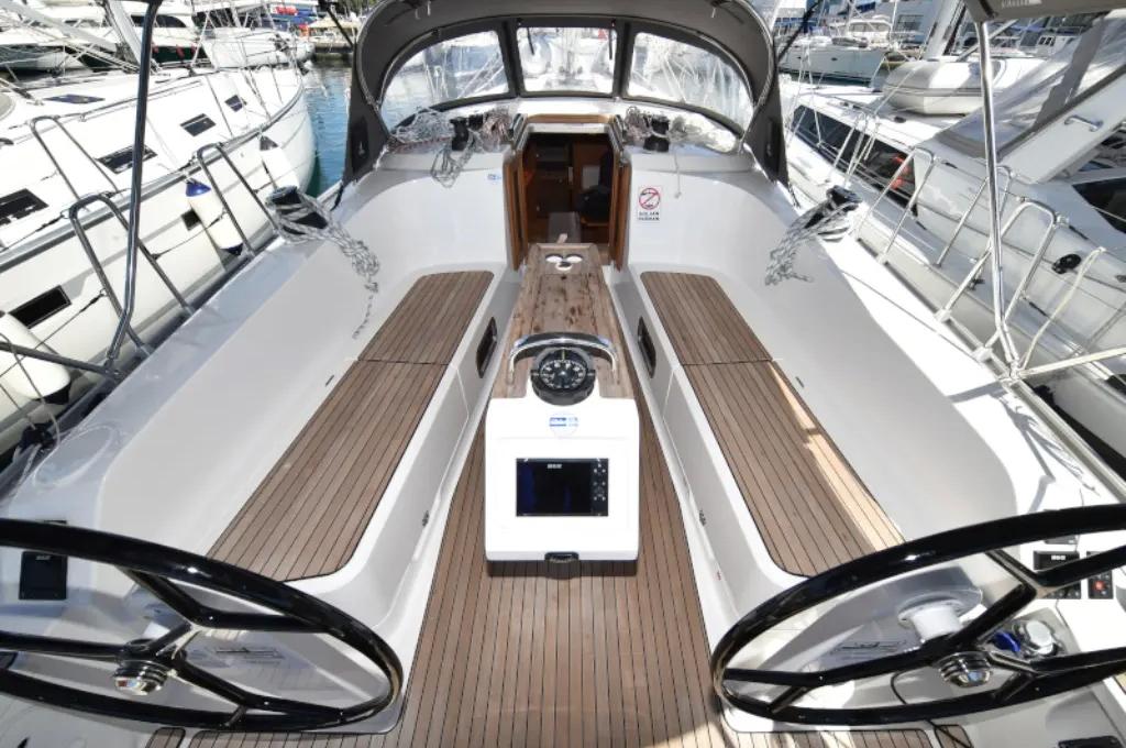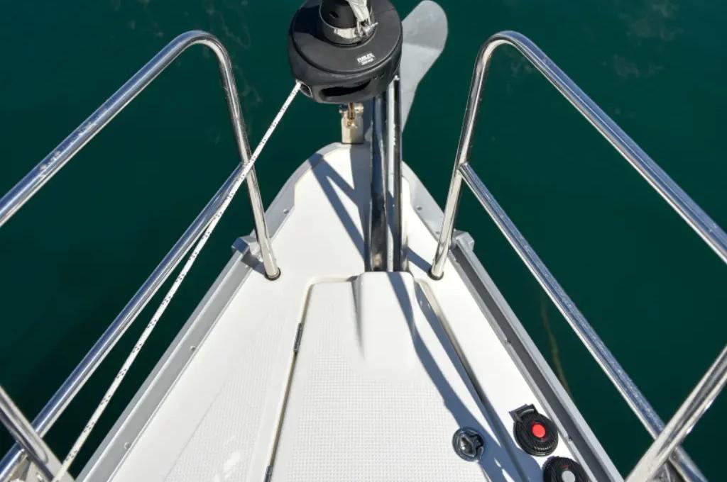 | Outside | Anker mit Kette, Biminitop, Cockpitdusche, Cockpitlautsprecher, Cockpitpolster, Cockpittisch (klappbar), Deckbürste, elektr. Ankerwinsch, Fender, Kunststoff-Eimer (Pütz), Solaranlage, Sprayhood |