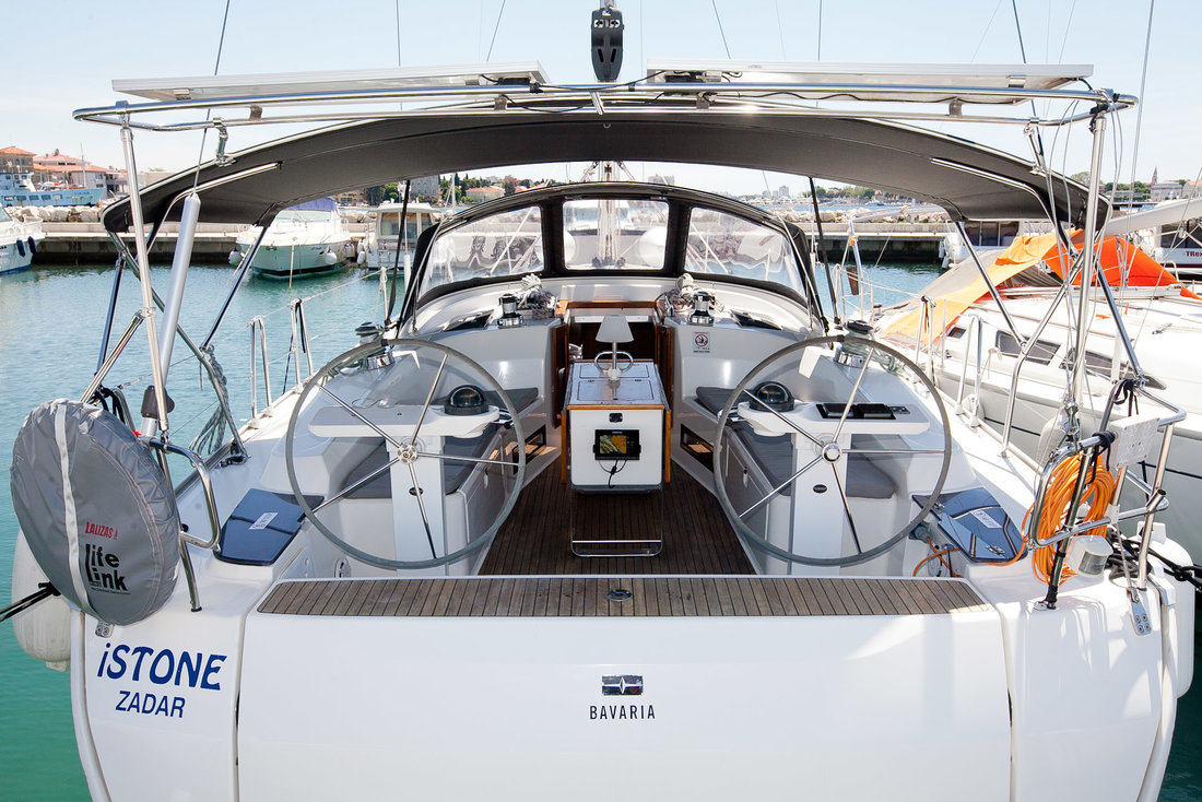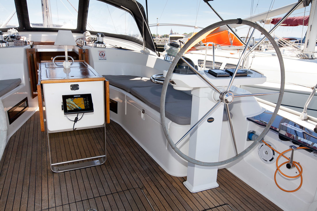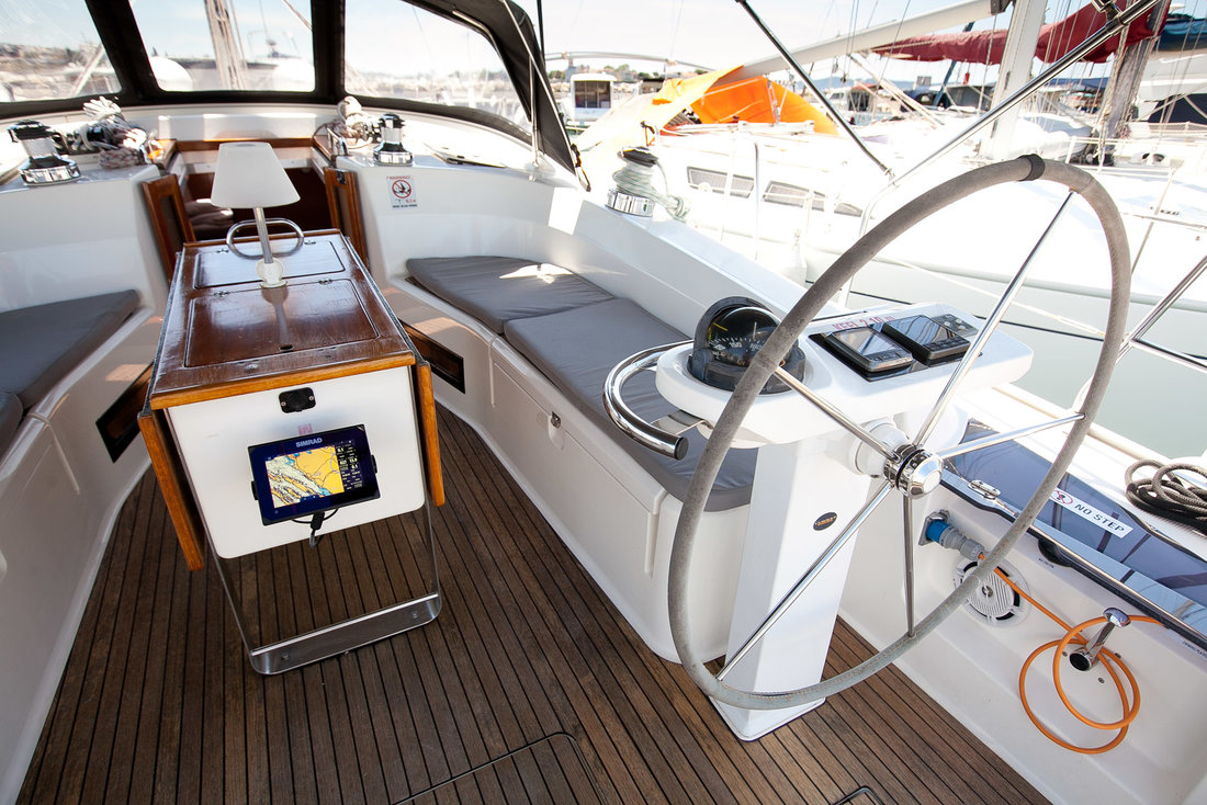 220 V-Landanschluss, Badeleiter, Benzinkanister, Biminitop, Bootshaken, Cockpitdusche, Cockpitlautsprecher, Cockpitpolster, Cockpittisch, Deckbürste, Delta-Anker, elektr. Ankerwinsch, Fender, Festmacherleinen, Gangway, Kugelfender, Kunststoff-Eimer (Pütz), Solaranlage, Sprayhood, Teak im Cockpit, Vorhängeschloss, Wantenschneider, Wasserkanister , Wasserschlauch, Windex, Winschen |