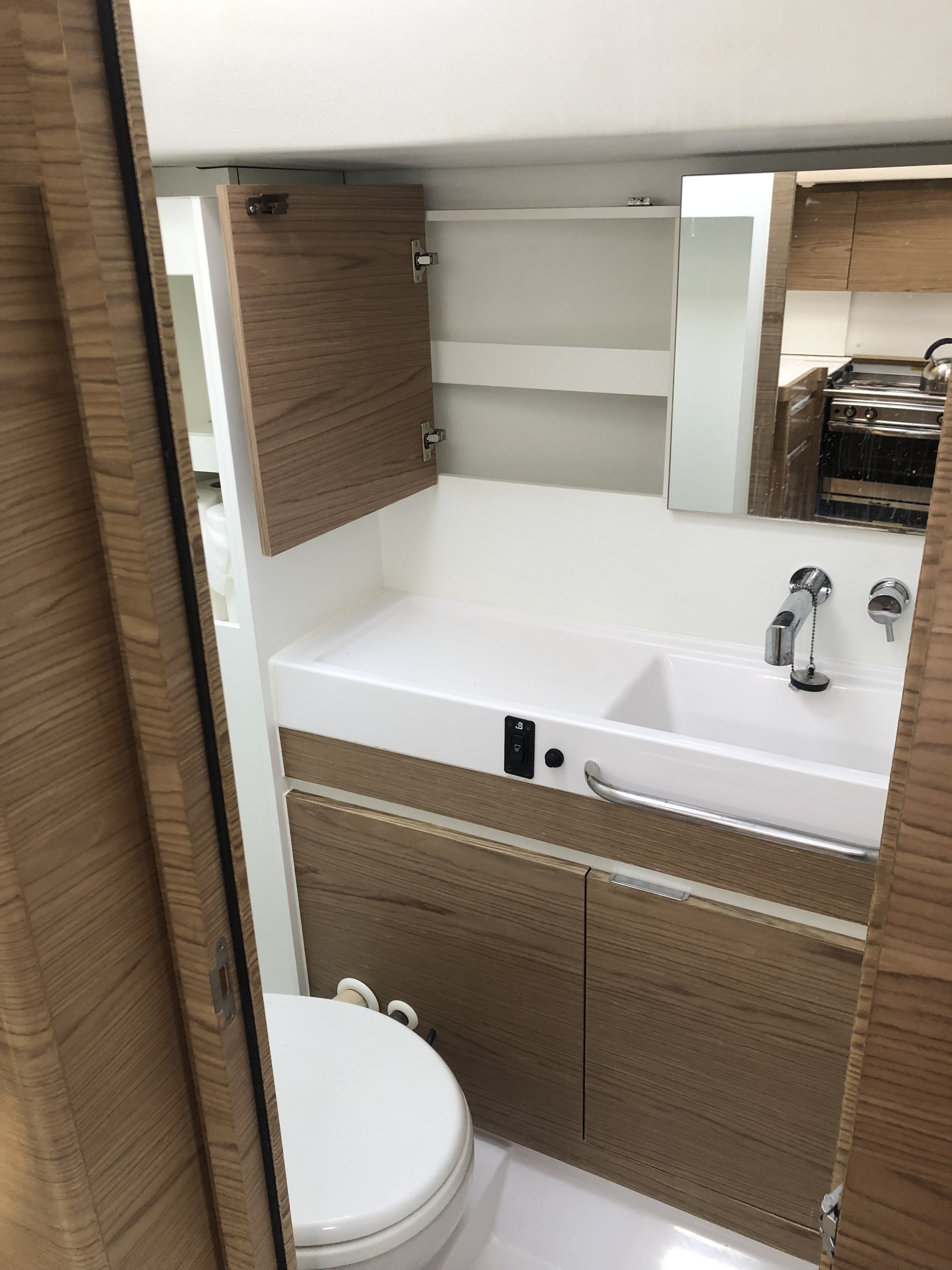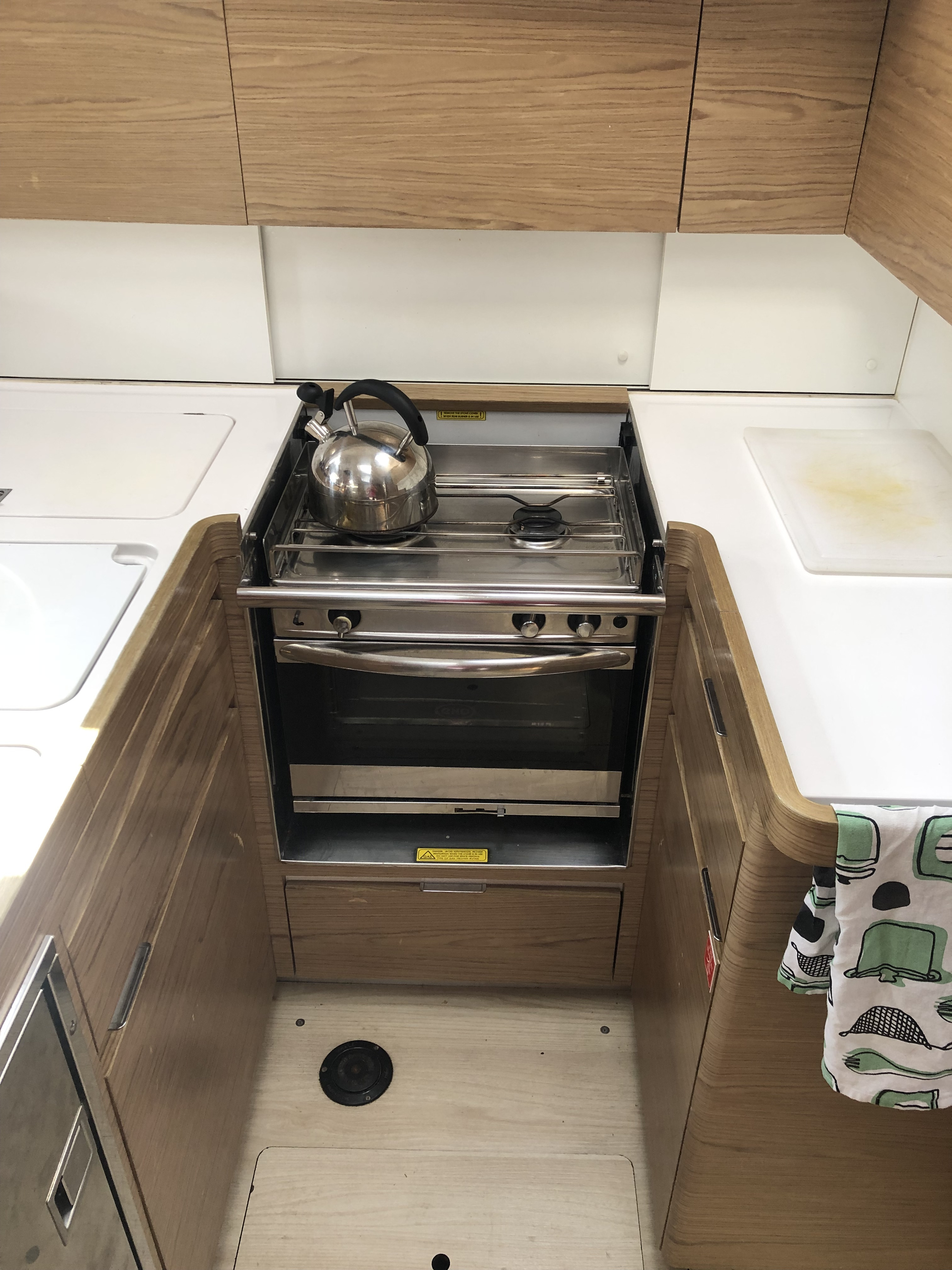 | Inside | 220V Steckdosen, Backofen, Borduhr, Eiswürfelmaschine, Fäkalientank, Gasherd, Heizung, Inverter 12V/220V, Kaffeemaschine, Klimaanlage (Landstrom), Kühlschrank, Ladegerät, Luftpumpe für Beiboot, Nespresso-Maschine, Pantryausstattung, Radio mit CD, TV, Warmwasser, WC (elektr.) |