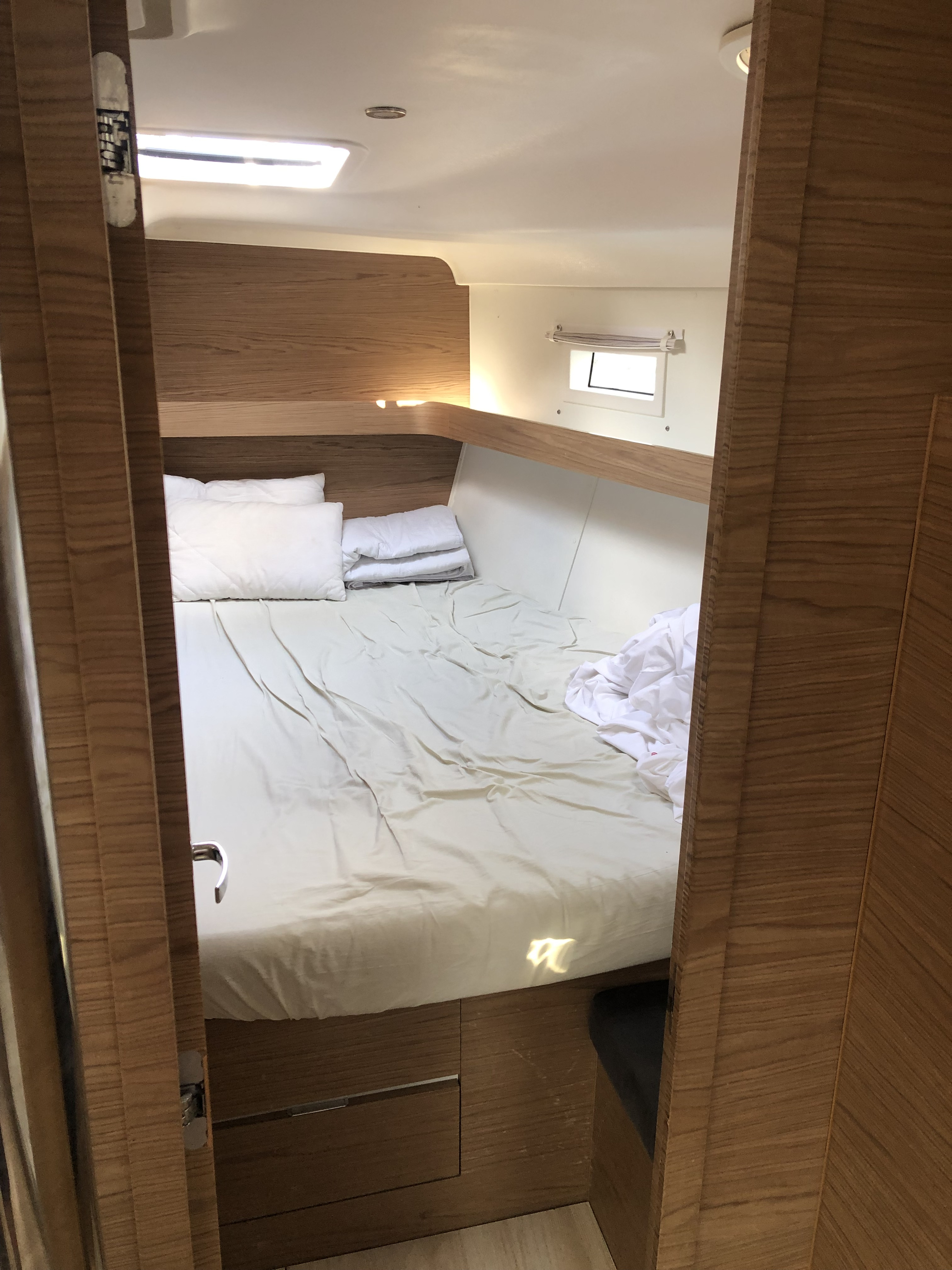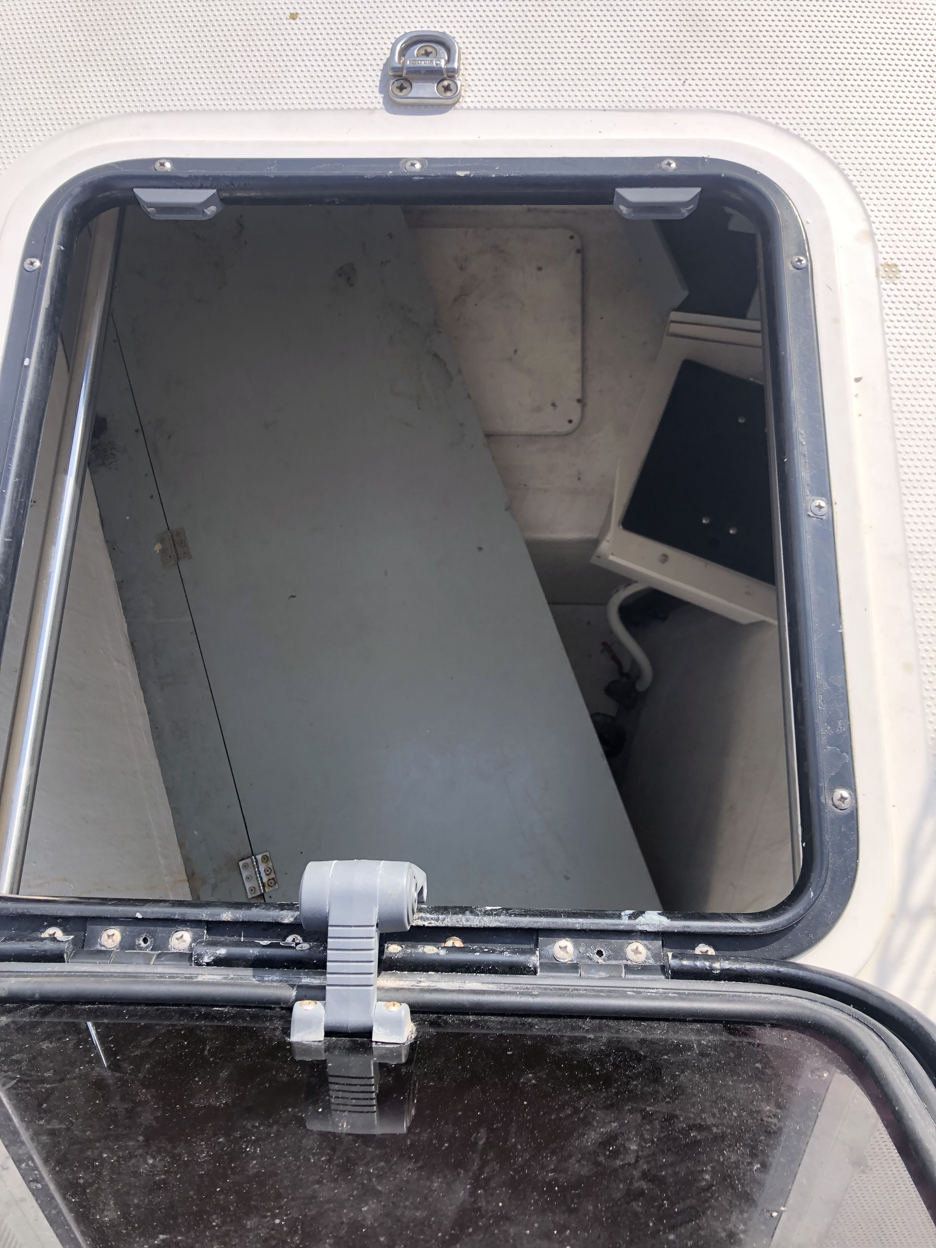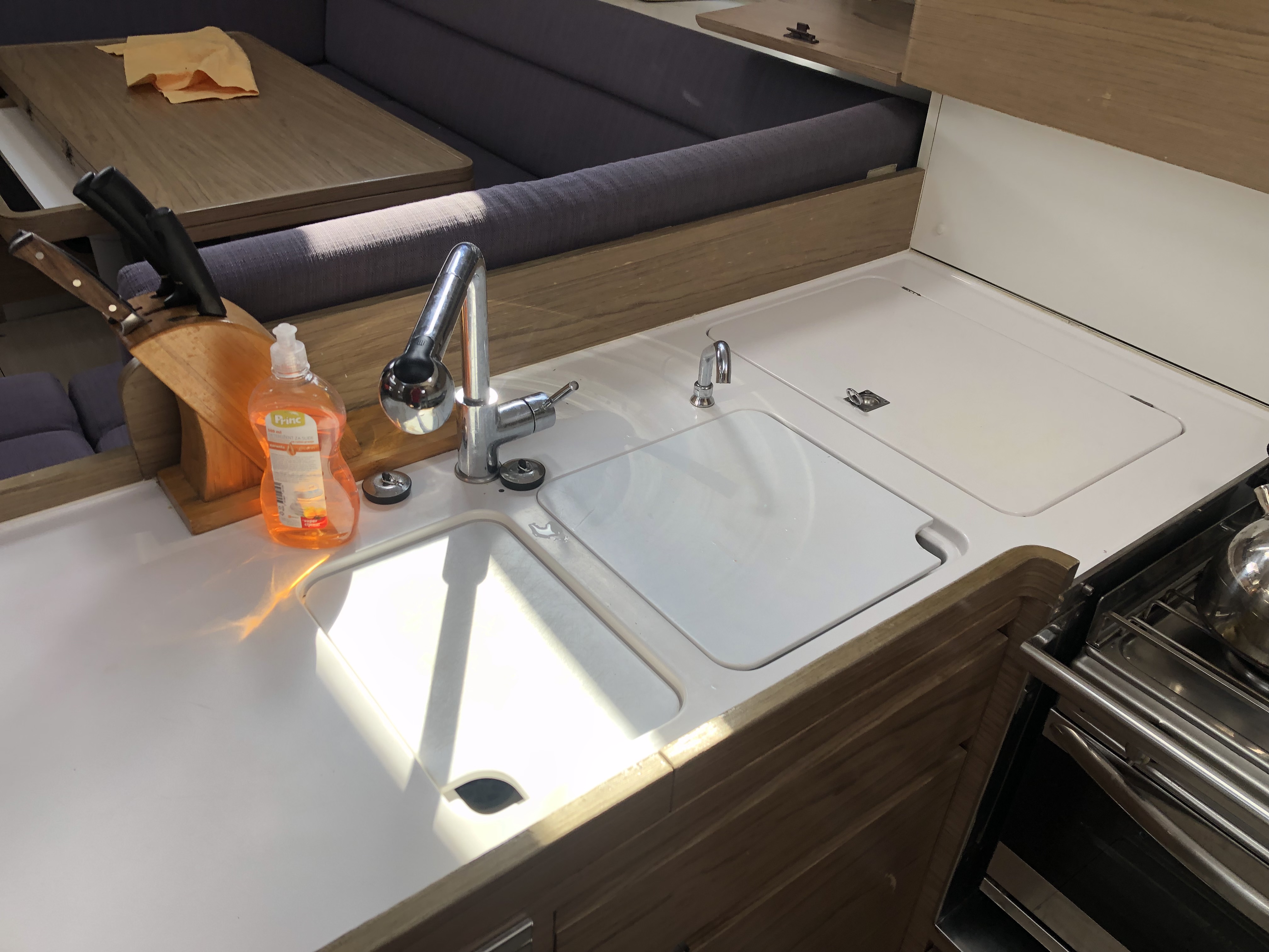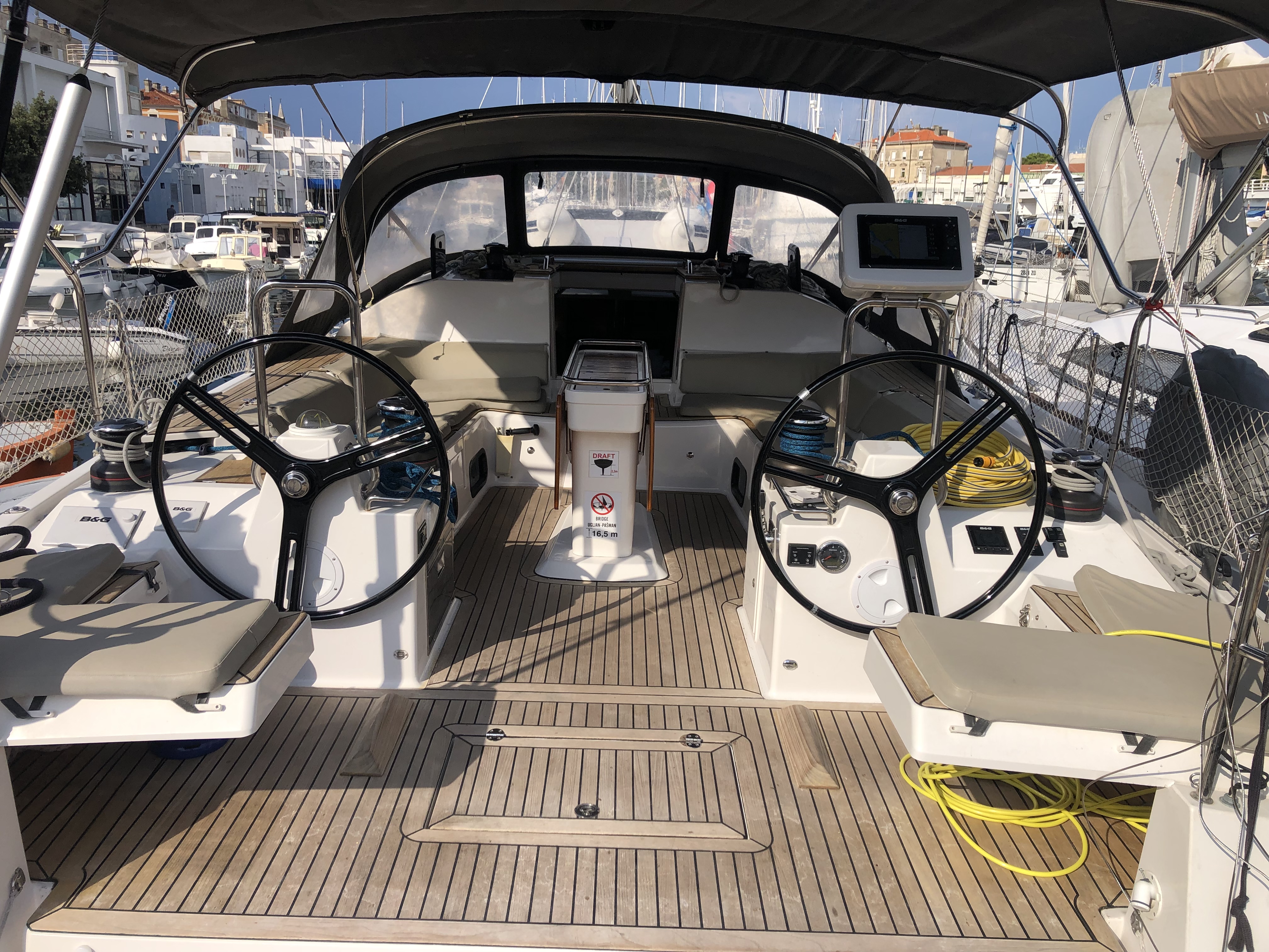 | Outside | Anker mit Seil, Badeleiter, Biminitop, Bootshaken, Cockpitdusche, Cockpitlautsprecher, Cockpittisch, elektr. Ankerwinsch, Faltpropeller, Fender, Festmacherleinen, Gangway, Solaranlage, Sprayhood, Wasserschlauch, Windex |