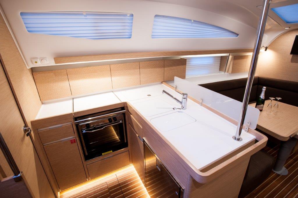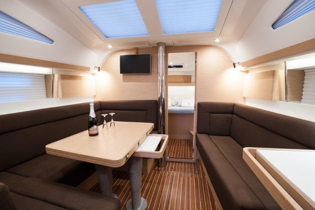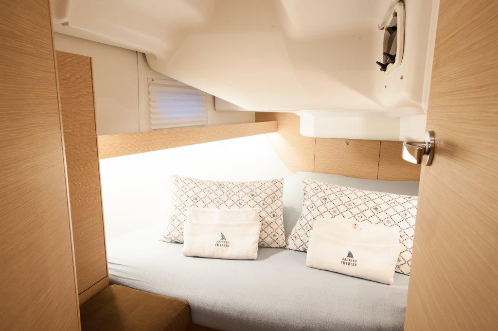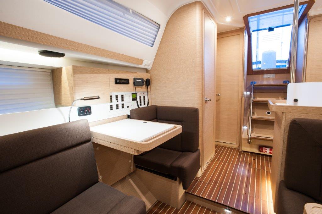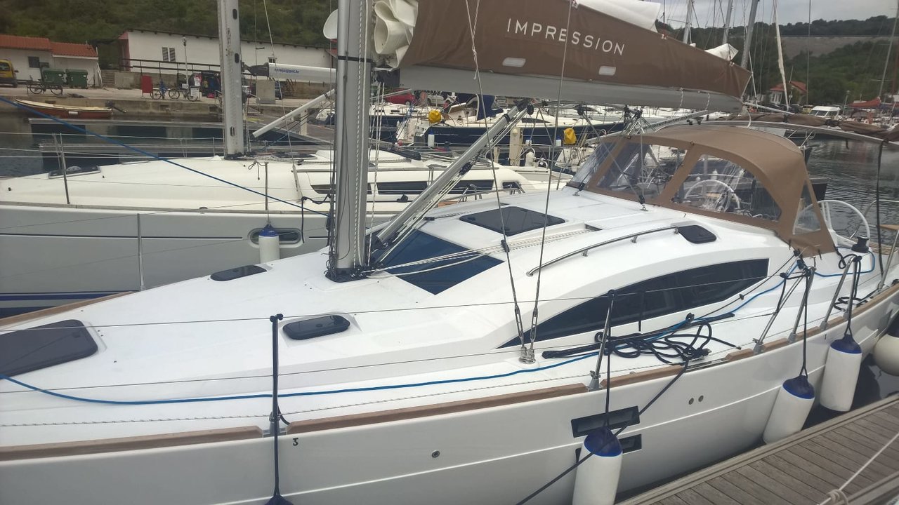 | Outside | Anker mit Kette, Badeleiter, Badeplattform, Biminitop, Bootshaken, Cockpitdusche, Cockpitkühlschrank, Cockpitlautsprecher, Cockpitpolster, Cockpittisch, Deckpolster, elektr. Ankerwinsch, Faltpropeller, Fender, Festmacherleinen, Gangway, Sprayhood, Teak im Cockpit, Unterwasserbeleuchtung, Wasserschlauch, Windex |