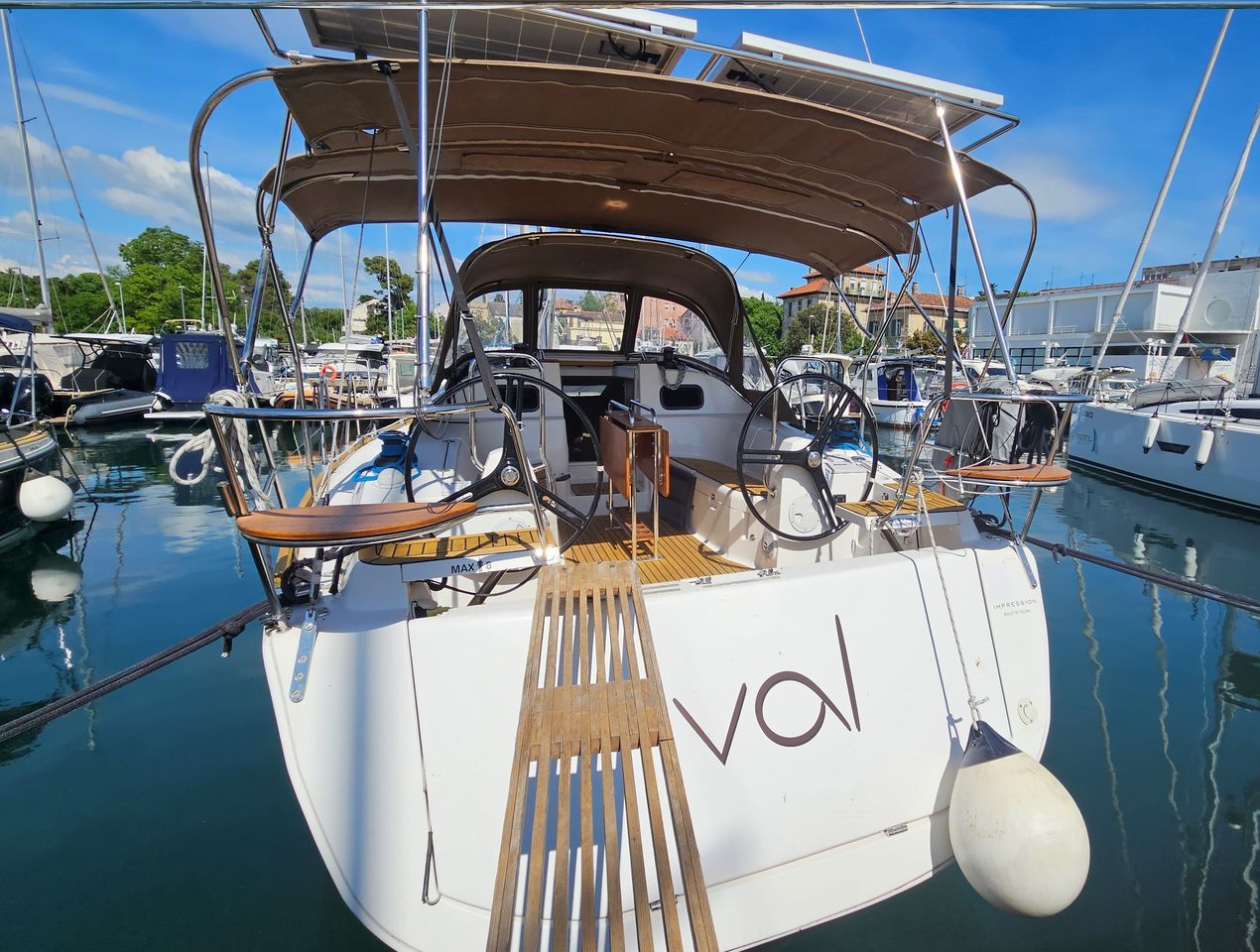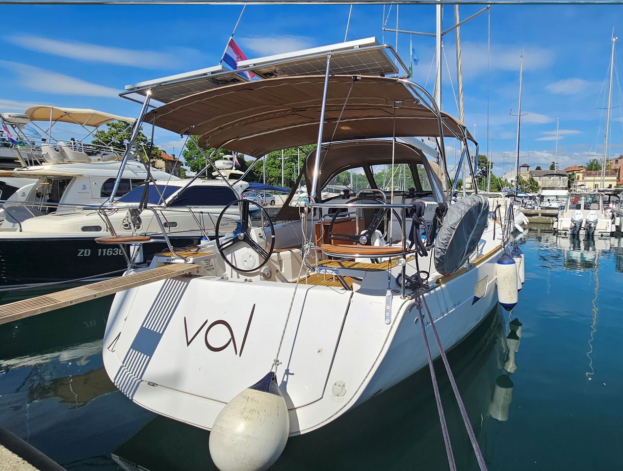 Die Elan Impression 40 mit Namen Val hatte ein paar Probleme mit der Rollfock (schwergängig und Umlenkrolle gerissen und verzogen), dem Rollgross (Leine am Mast auch für Bruneko unerklärlicherweise ausgefädelt) und dem Autopiloten (einige unerklärliche Manöver bzw. Kursänderungen). Tommy hat sie professionell aufgenommen und wir hatten das Gefühl, dass sie schnell behoben werden.
