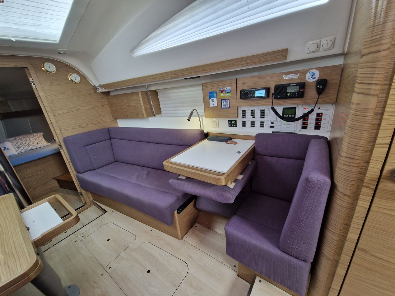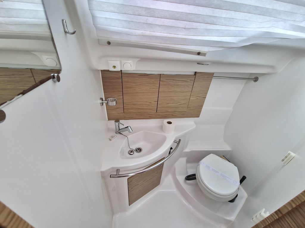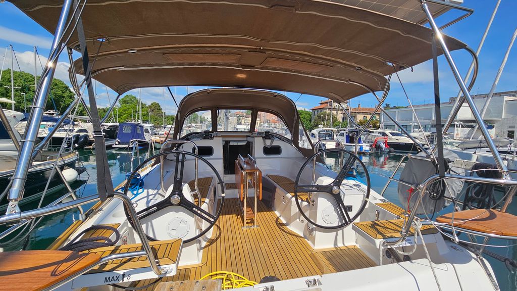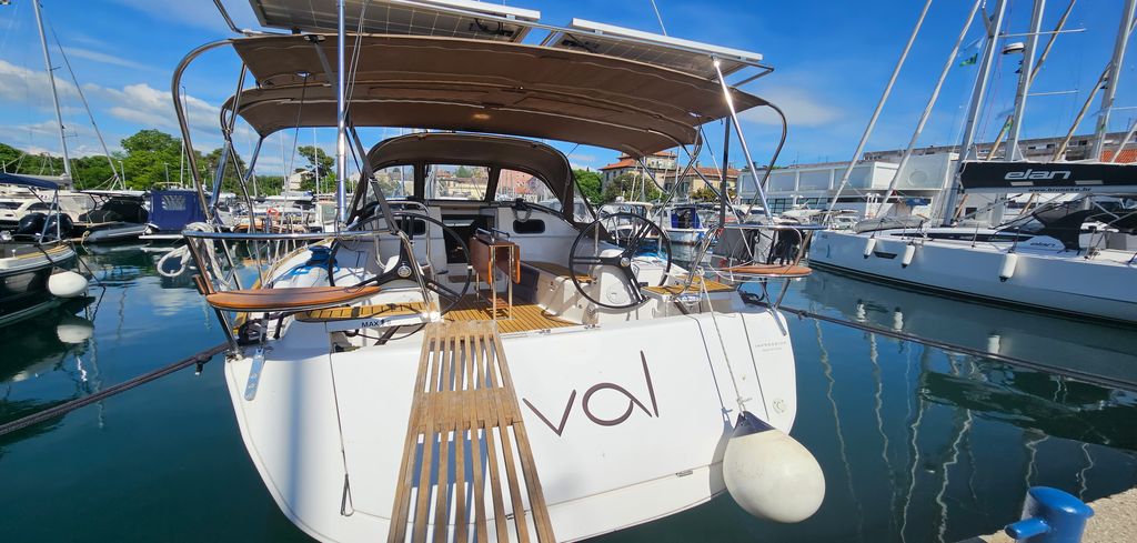 | Outside | 12 V-Anschluss, Anker mit Kette, Badeleiter, Badeplattform, Biminitop, Cockpitdusche, Cockpitlautsprecher, Cockpittisch, Deckbeleuchtung, Deckpolster, elektr. Ankerwinsch, Gangway, Solaranlage, Sonnendeck, Sprayhood, Windex |