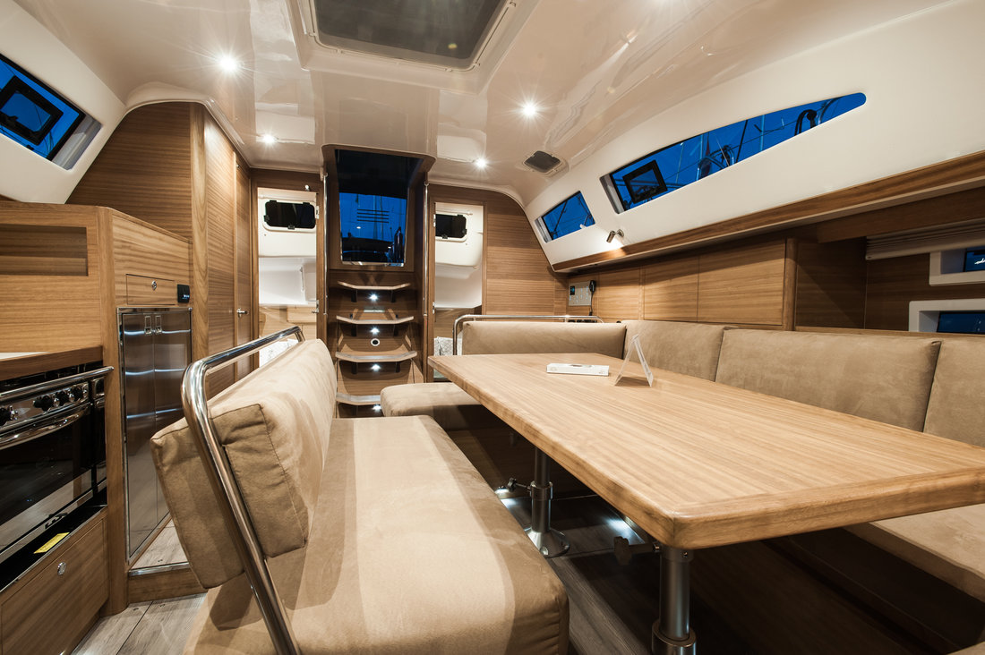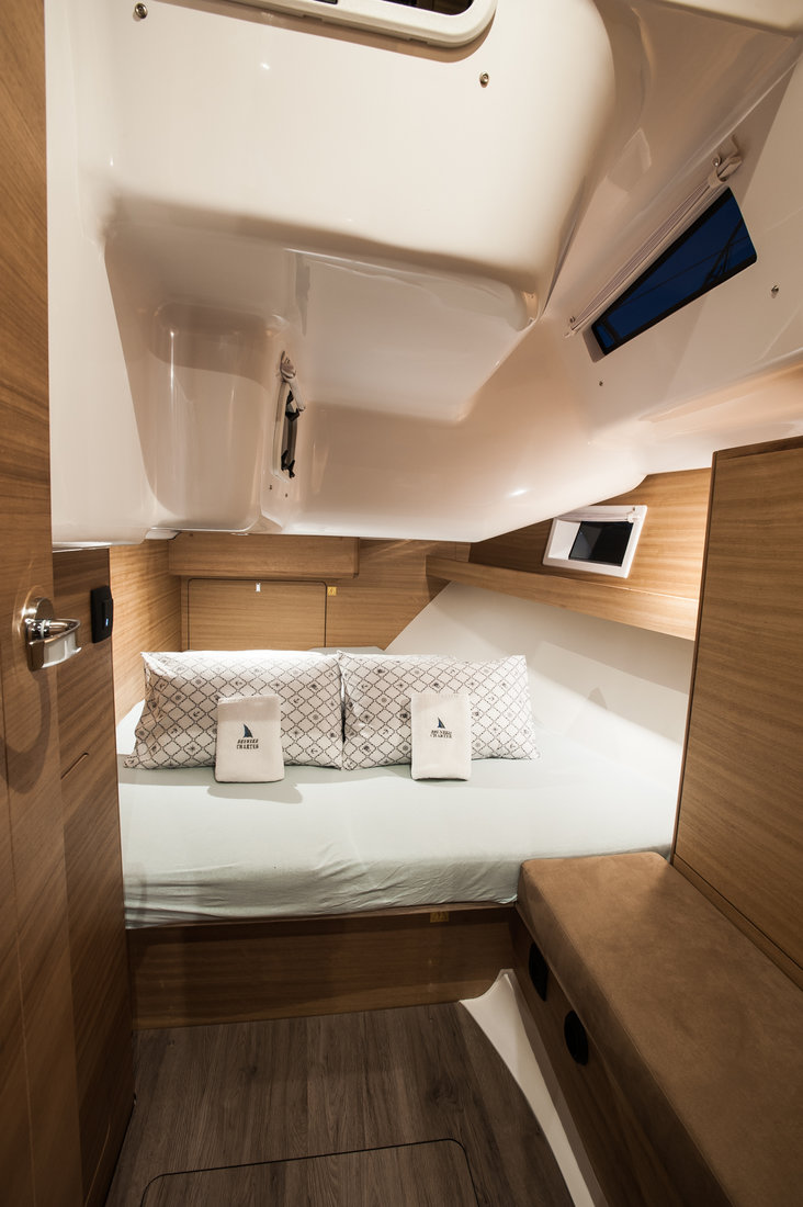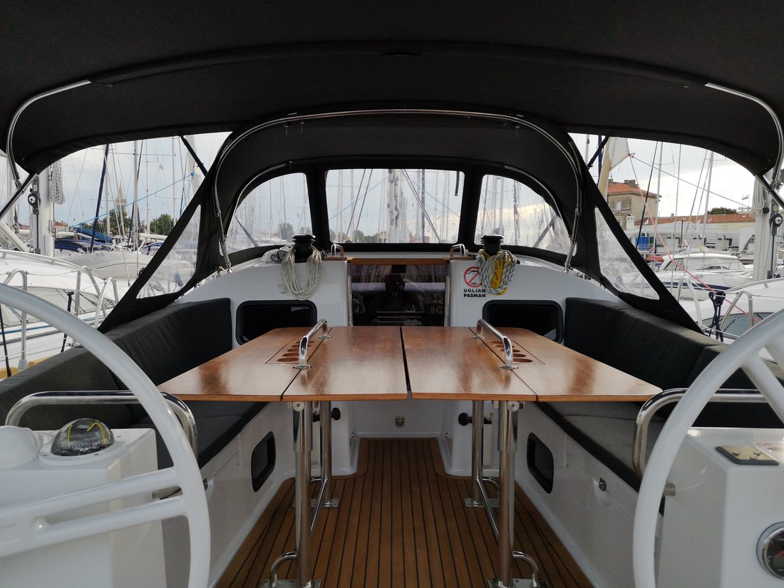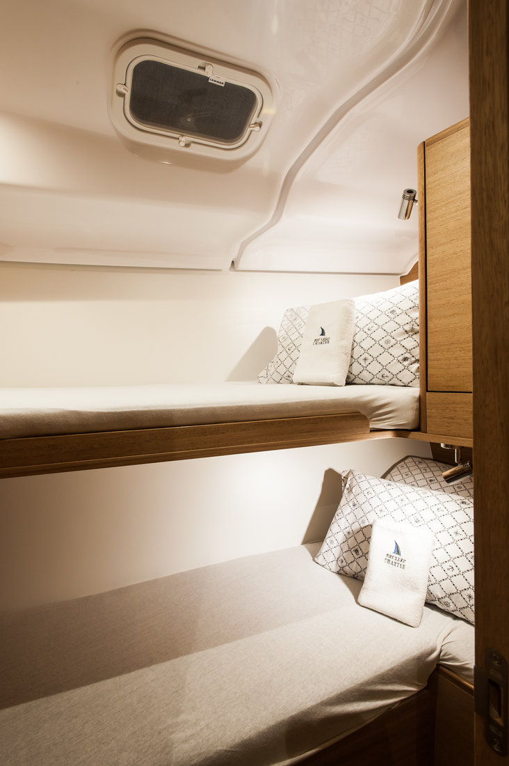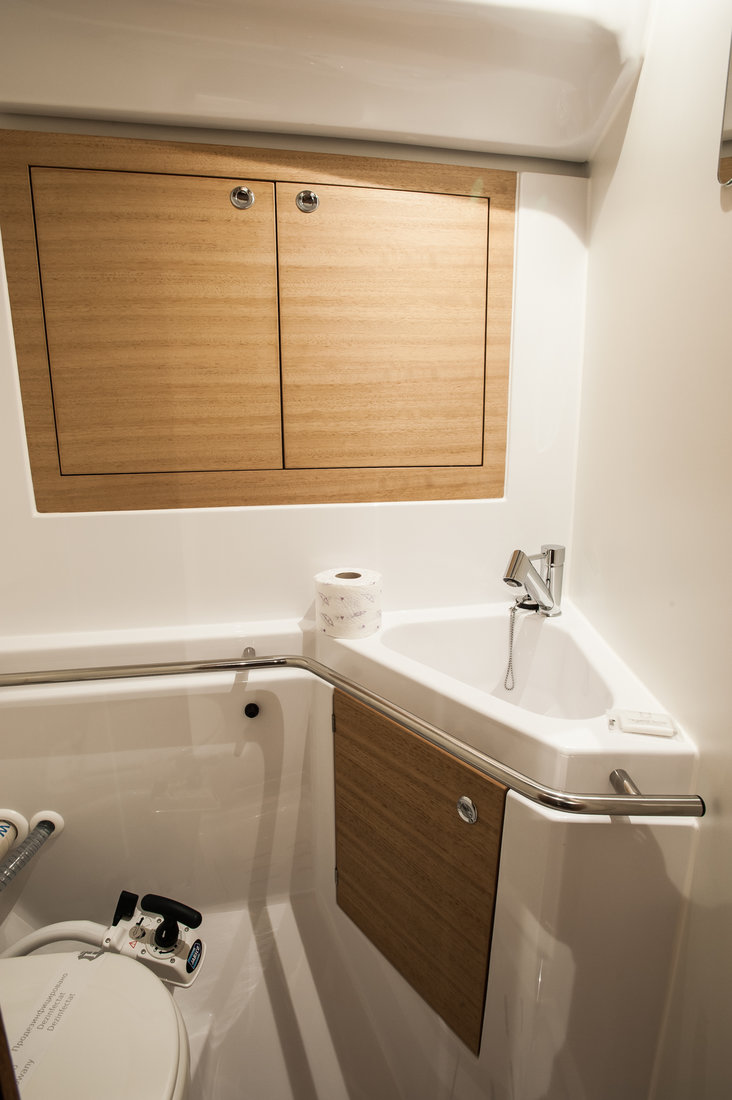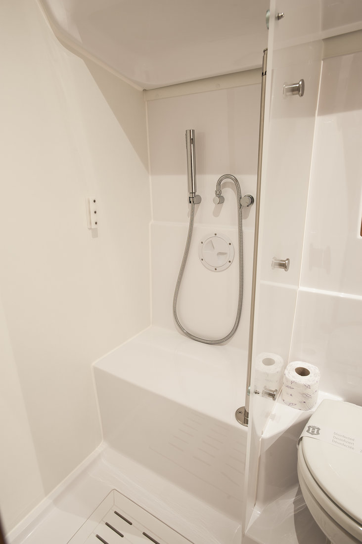 | Outside | Anker mit Kette, Badeleiter, Badeplattform, Biminitop, Cockpitdusche, Cockpitkühlschrank, Cockpitlautsprecher, Cockpitpolster, Cockpittisch, elektr. Ankerwinsch, Fender, Festmacherleinen, Gangway, Grill, Sprayhood, Wasserschlauch, Windex |