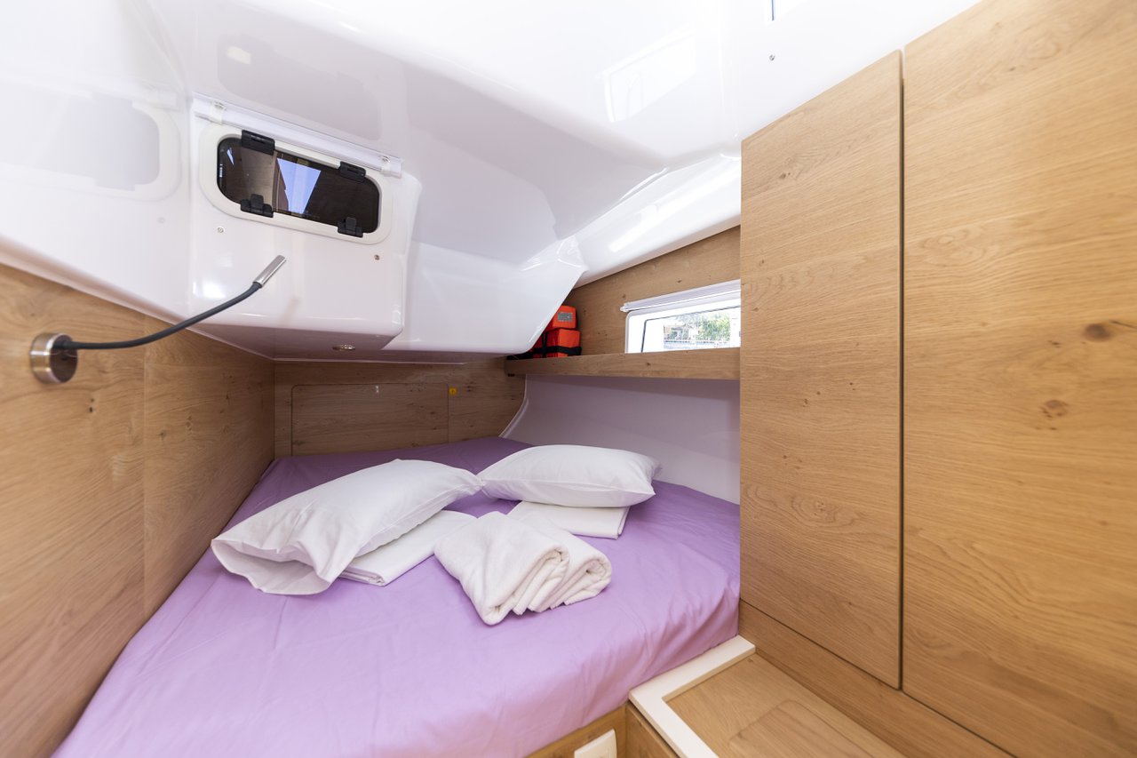 | Outside | 12 V-Anschluss, Anker mit Kette, Badeleiter, Badeplattform, Biminitop, Cockpitdusche, Cockpitlautsprecher, Cockpitpolster, Cockpittisch, Deckbeleuchtung, elektr. Ankerwinsch, Gangway, Grill, Solaranlage, Sonnendeck, Sprayhood, Windex |