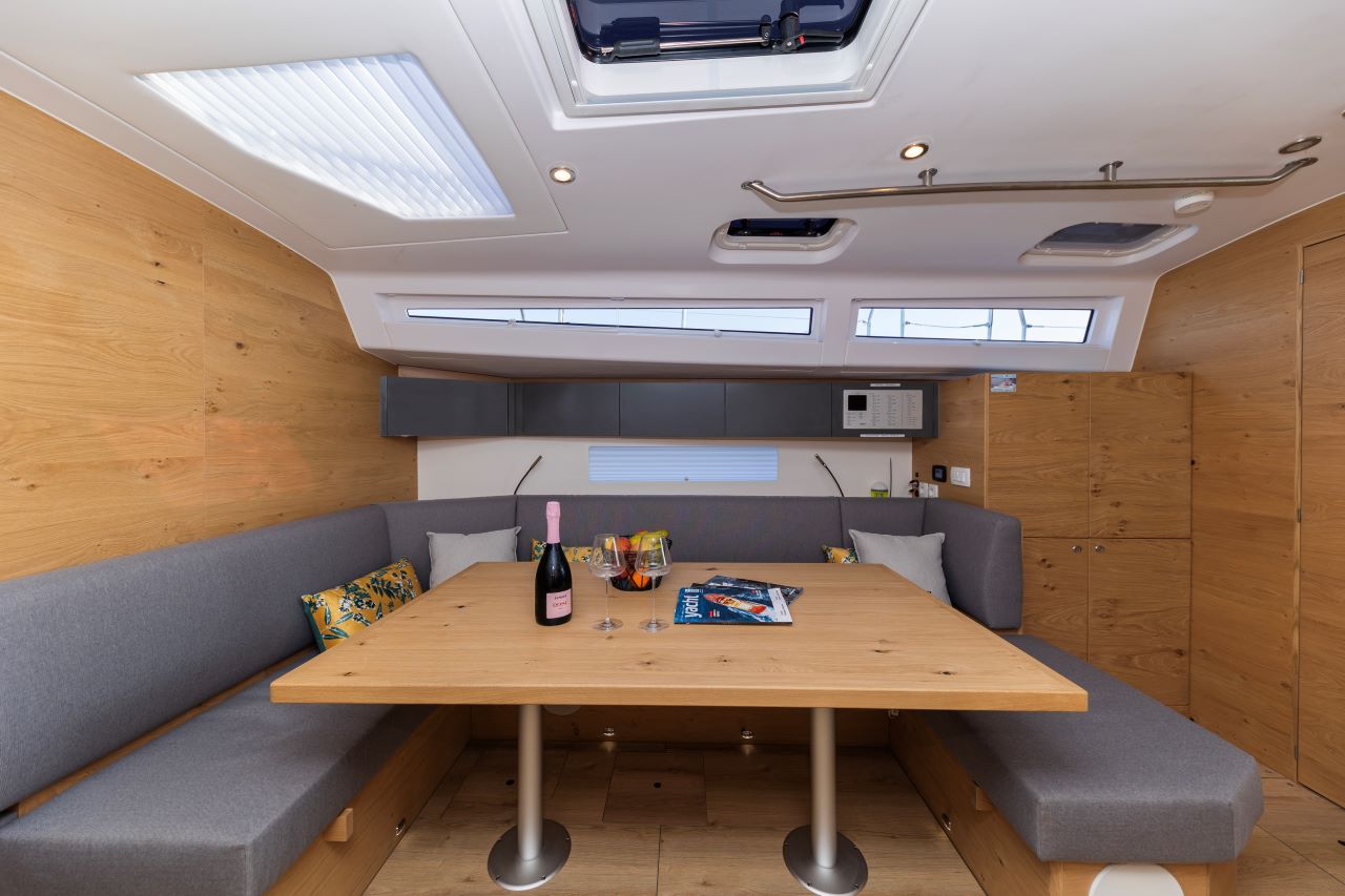 | Outside | 12 V-Anschluss, Anker mit Kette, Badeleiter, Badeplattform, Biminitop, Cockpitdusche, Cockpitlautsprecher, Cockpitpolster, Cockpittisch, Deckbeleuchtung, elektr. Ankerwinsch, Gangway, Grill, Solaranlage, Sprayhood, Windex |