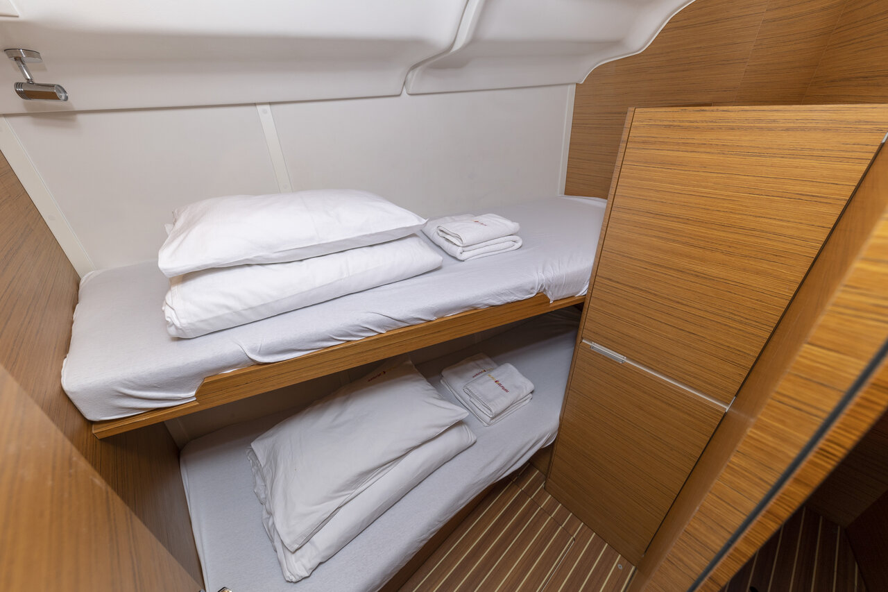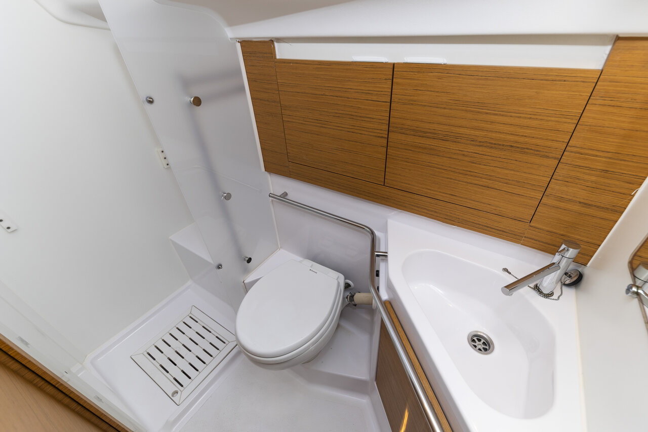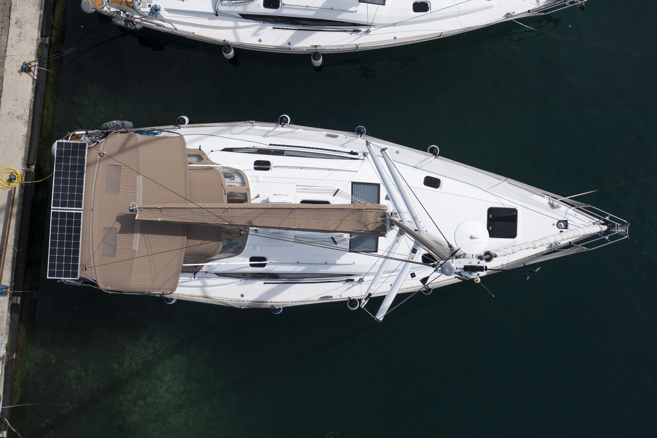 Outside 12 V-Anschluss, Anker mit Kette, Badeleiter, Badeplattform, Biminitop, Cockpitdusche, Cockpitlautsprecher, Cockpitpolster, Cockpittisch, Deckbeleuchtung, elektr. Ankerwinsch, Faltpropeller, Gangway, Solaranlage, Sonnendeck, Sprayhood, Windex