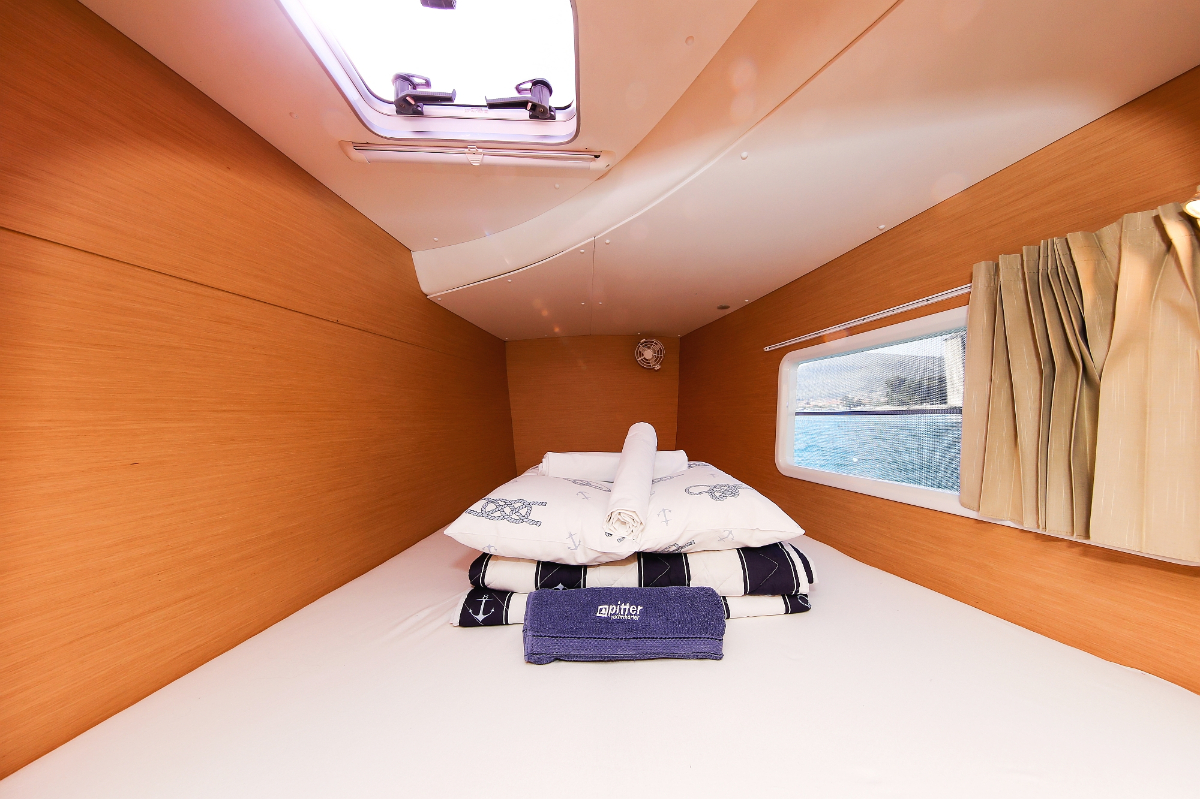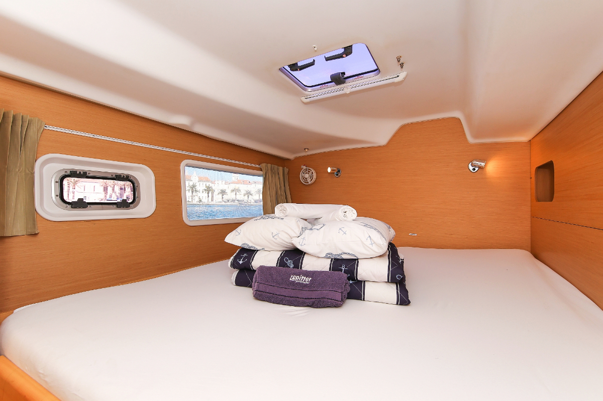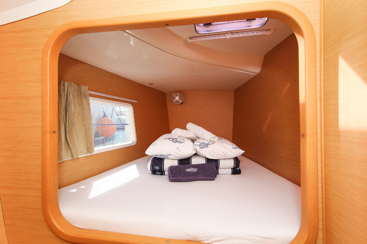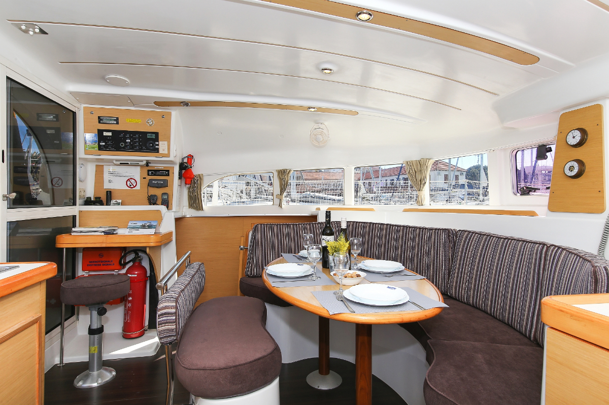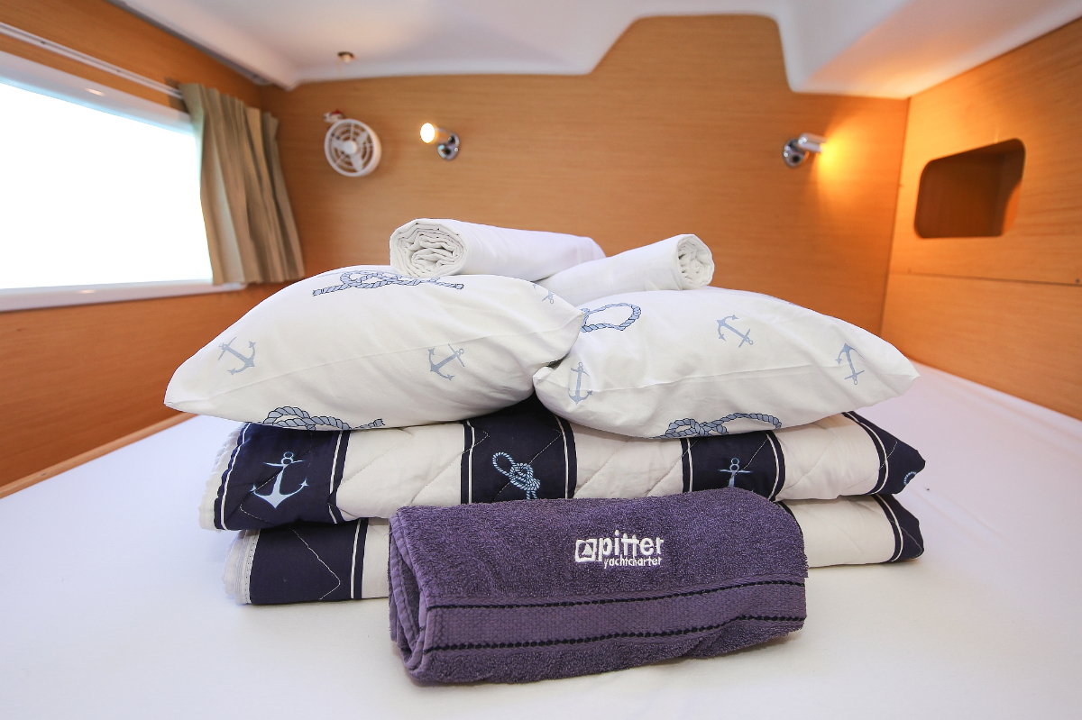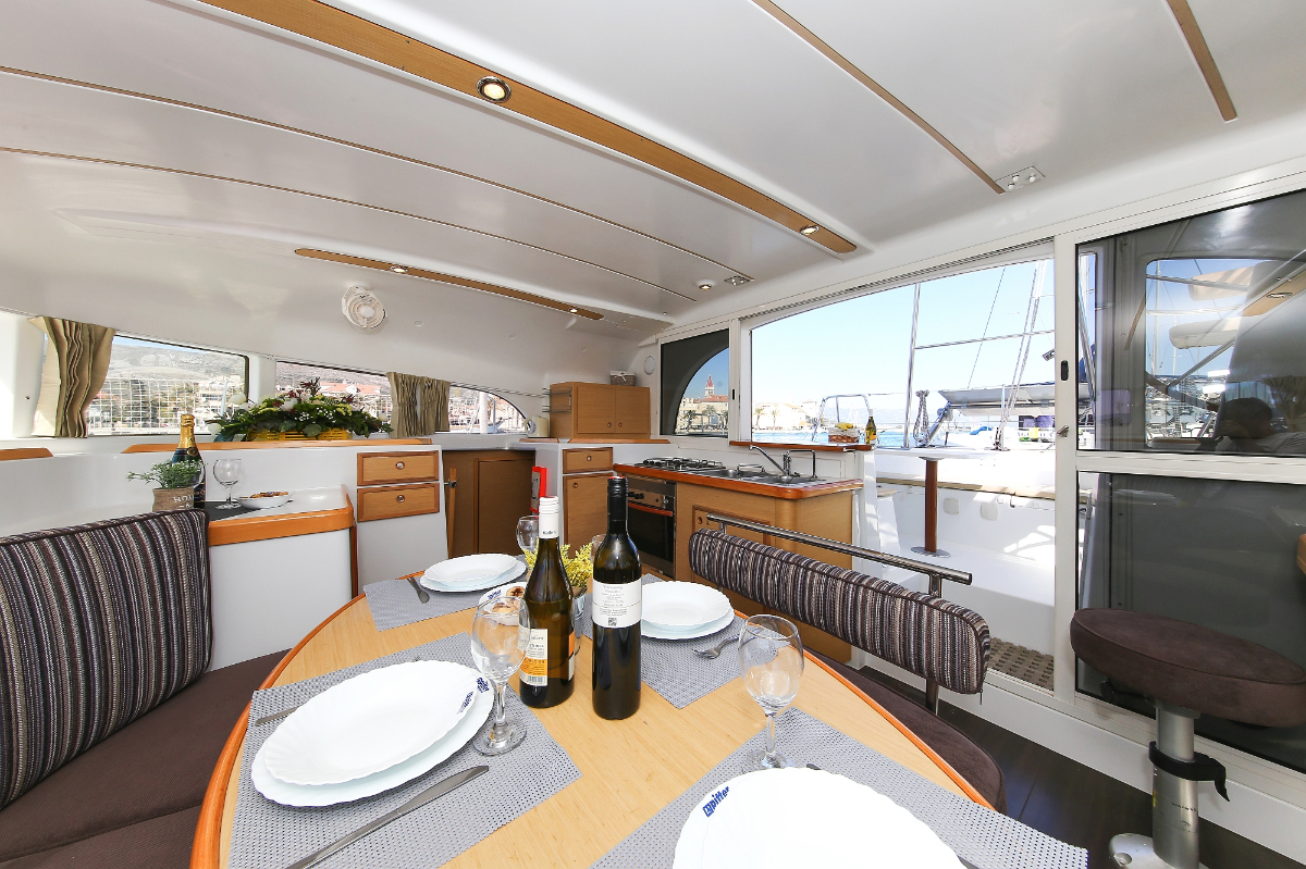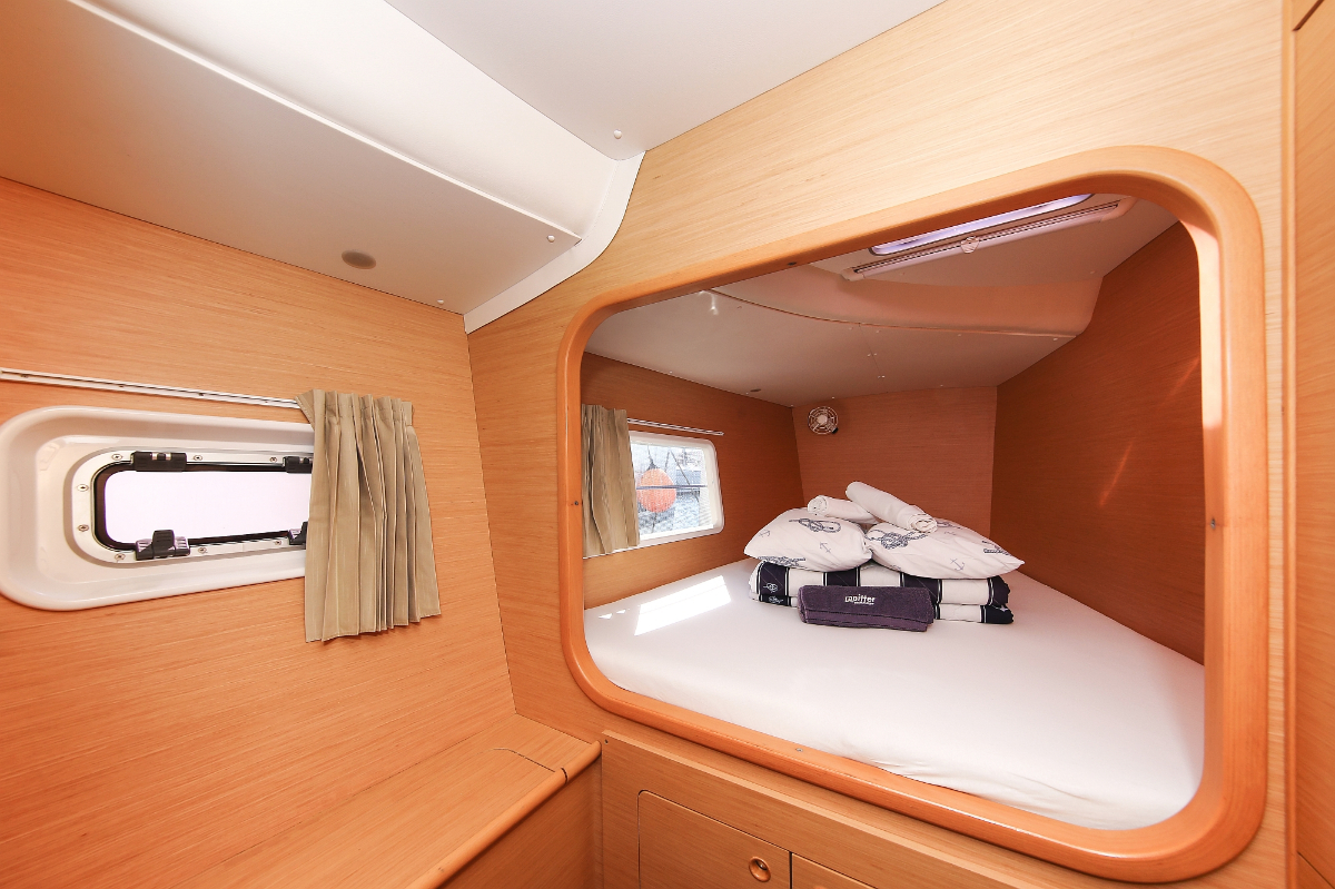 | Inside | Borduhr, Dusche, Eisbox, Heizung, Inverter 12V/220V, Kühlschrank, Ladegerät, Luftpumpe für Beiboot, Pantryausstattung, Radio mit CD, AUX und USB, Salontisch absenkbar, USB Steckdose, Ventilatoren in Kabinen, Warmwasser |