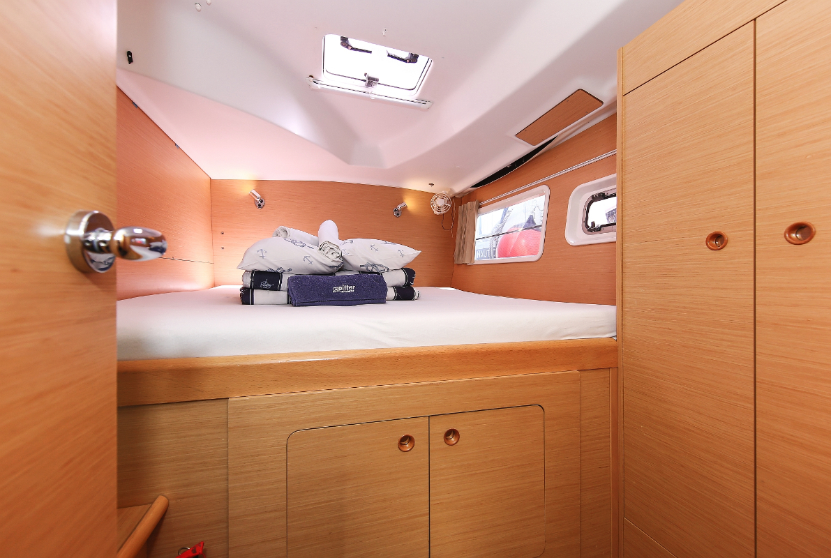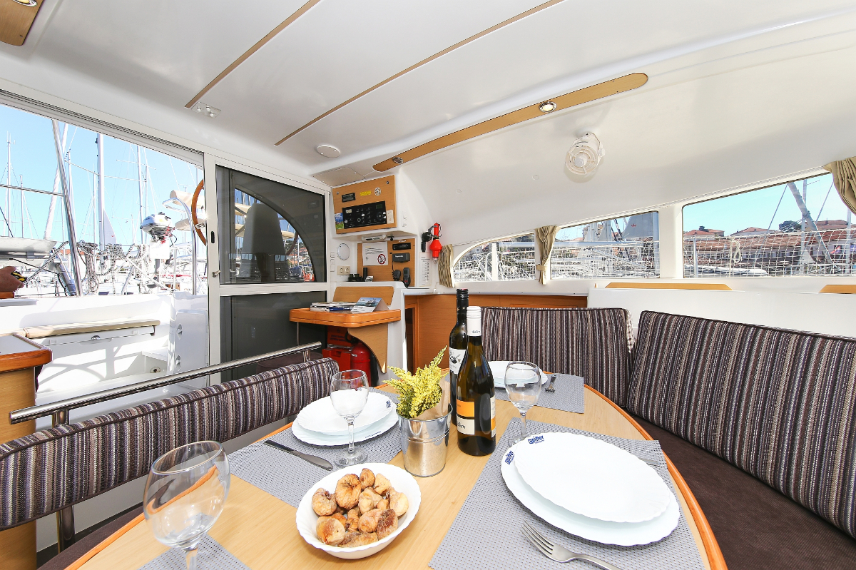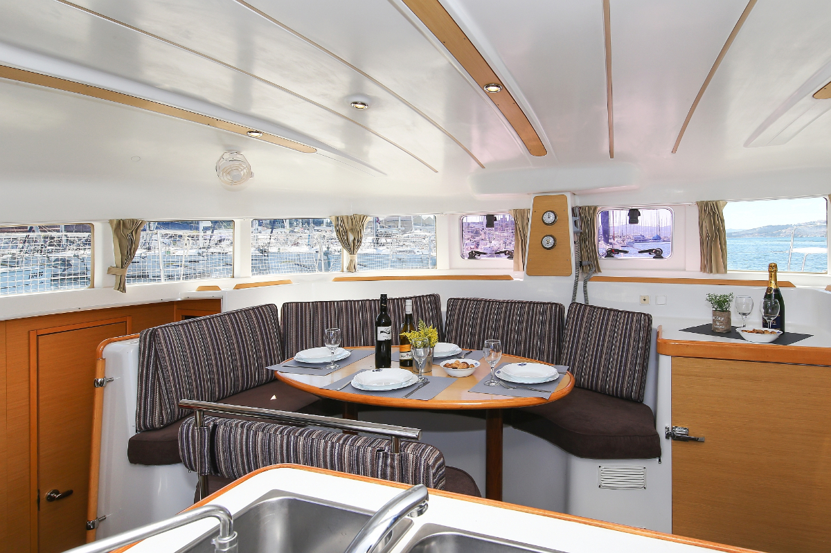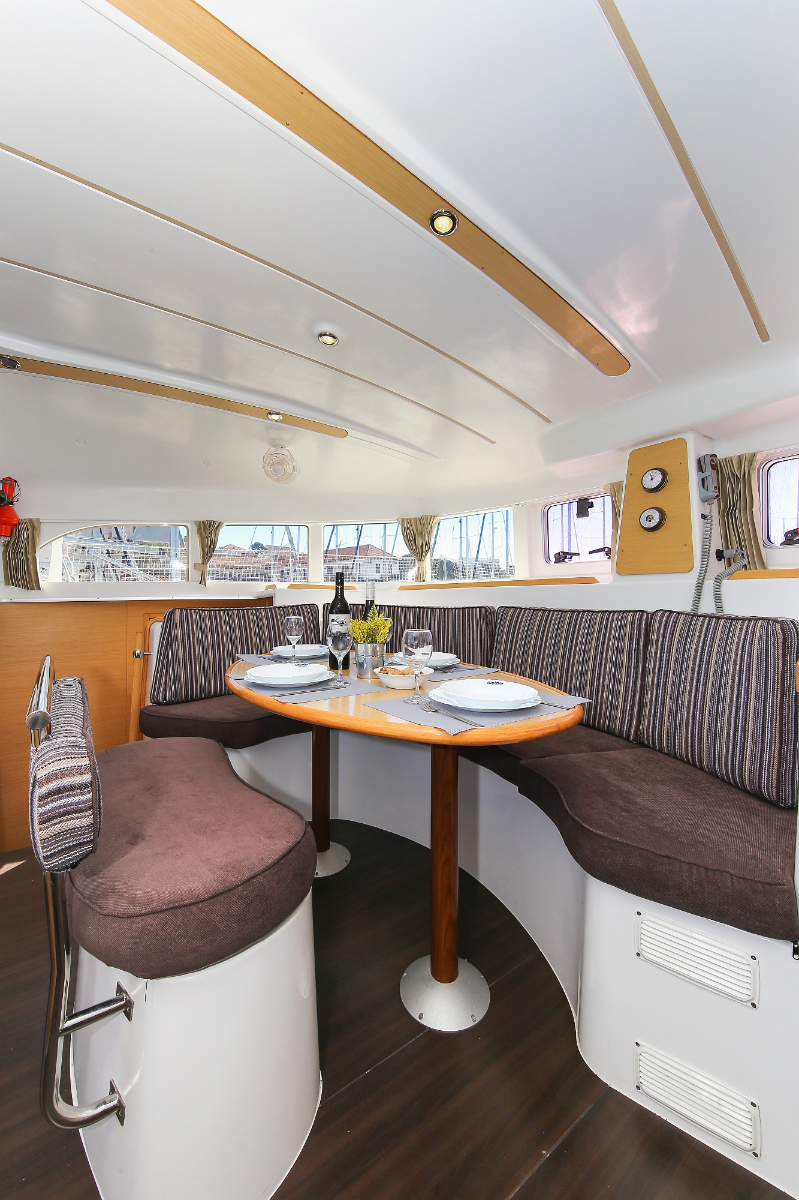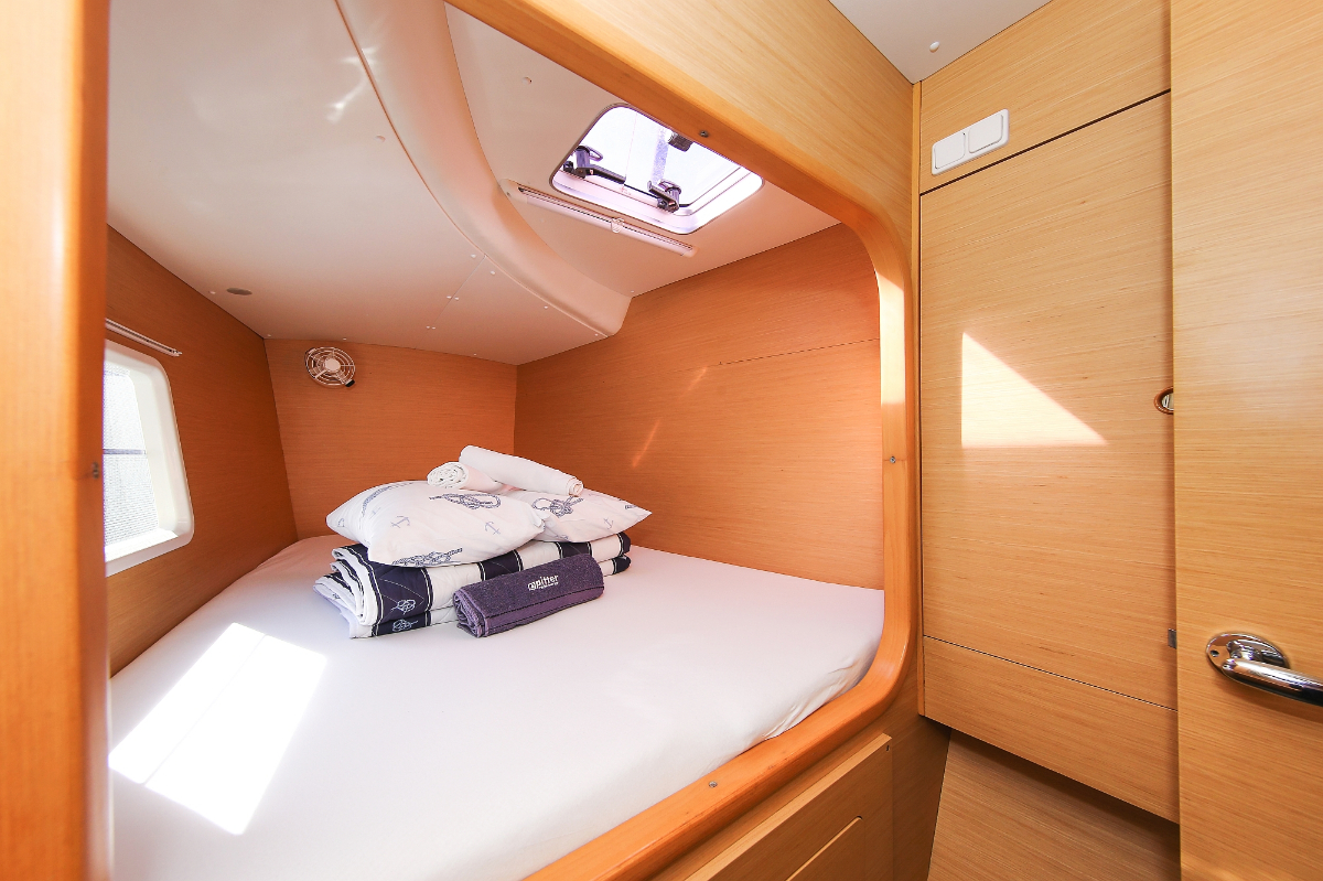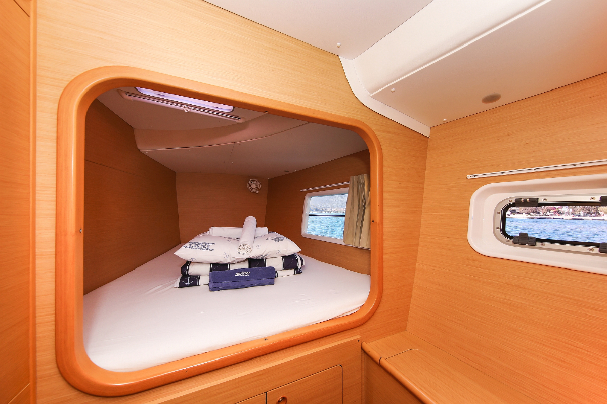 | Inside | Borduhr, Dusche, Eisbox, Heizung, Inverter 12V/220V, Kühlschrank, Ladegerät, Luftpumpe für Beiboot, Pantryausstattung, Radio mit CD, AUX und USB, Salontisch absenkbar, USB Steckdose, Ventilatoren in Kabinen, Warmwasser |