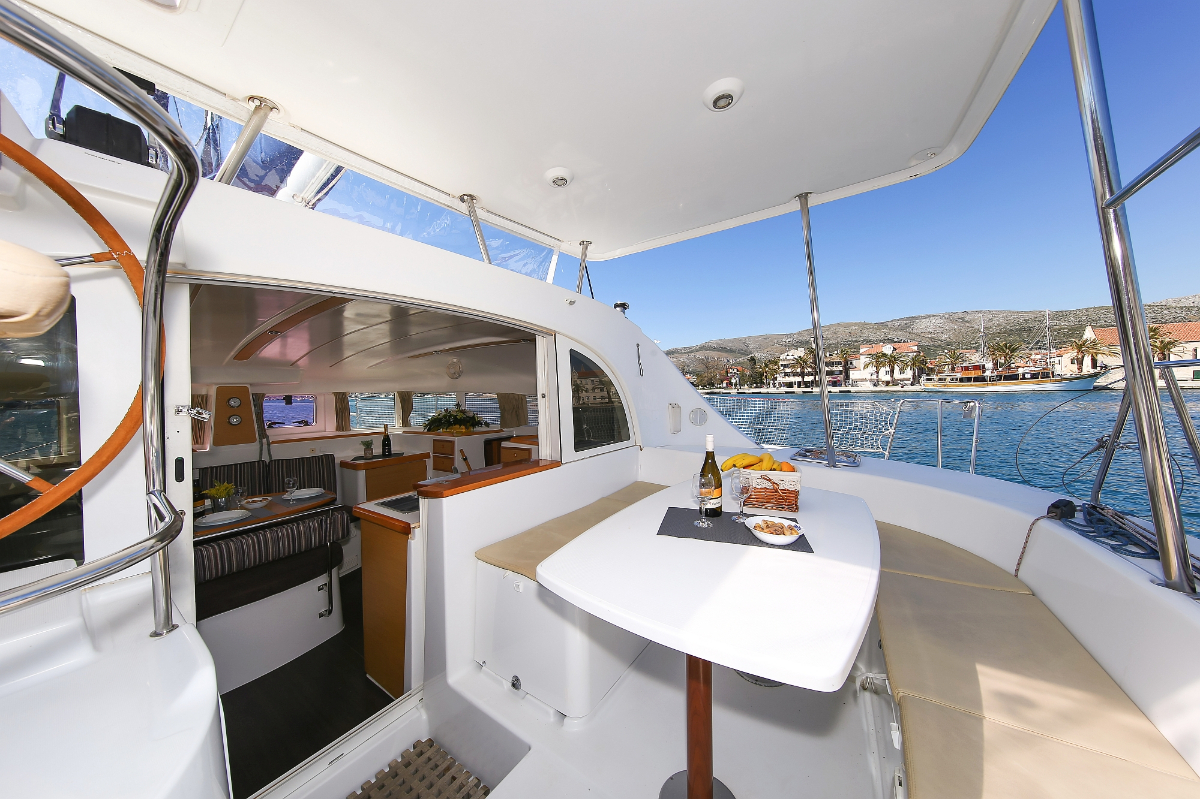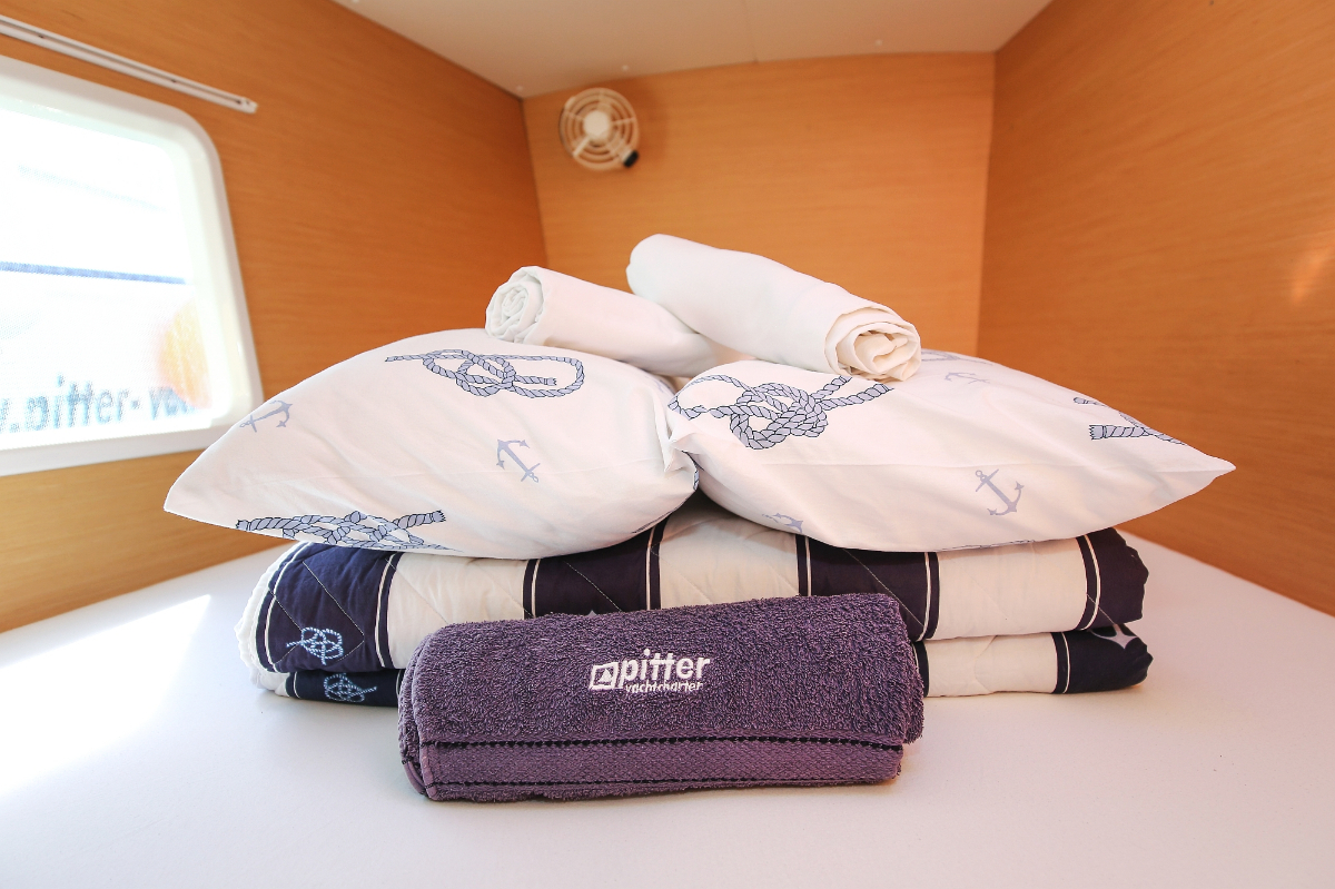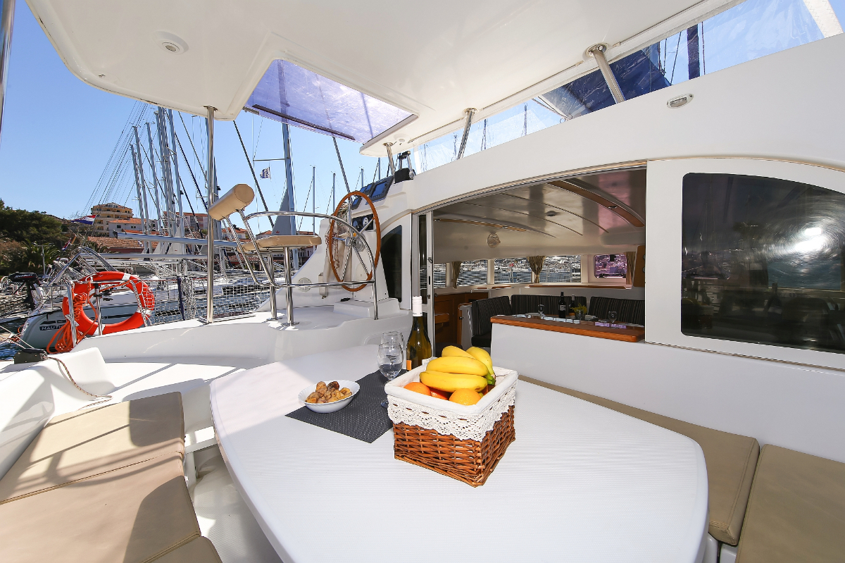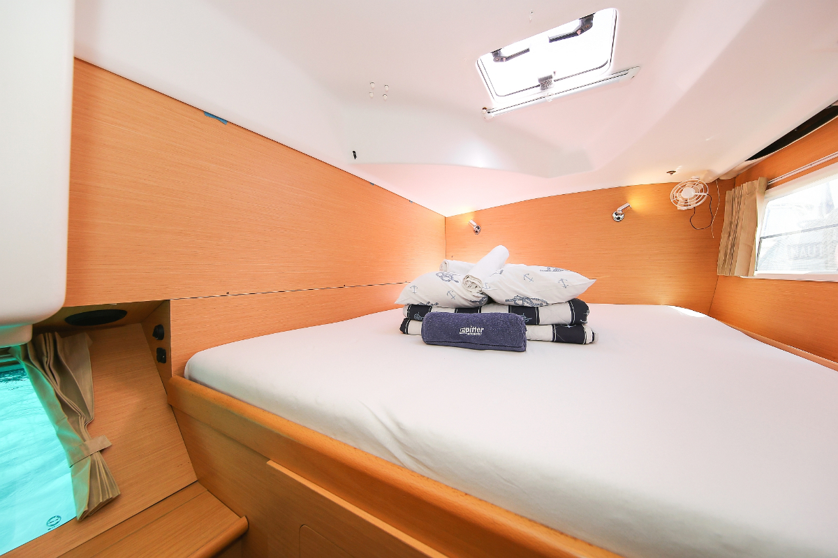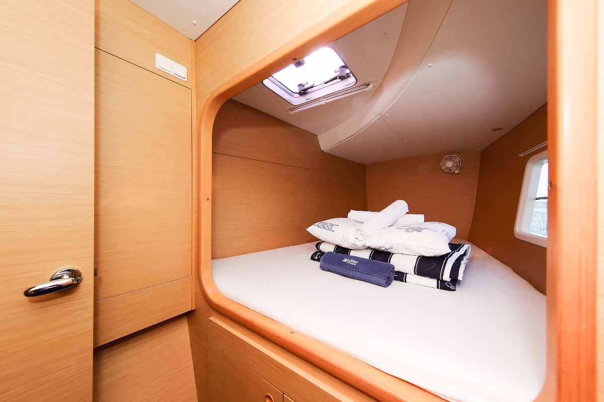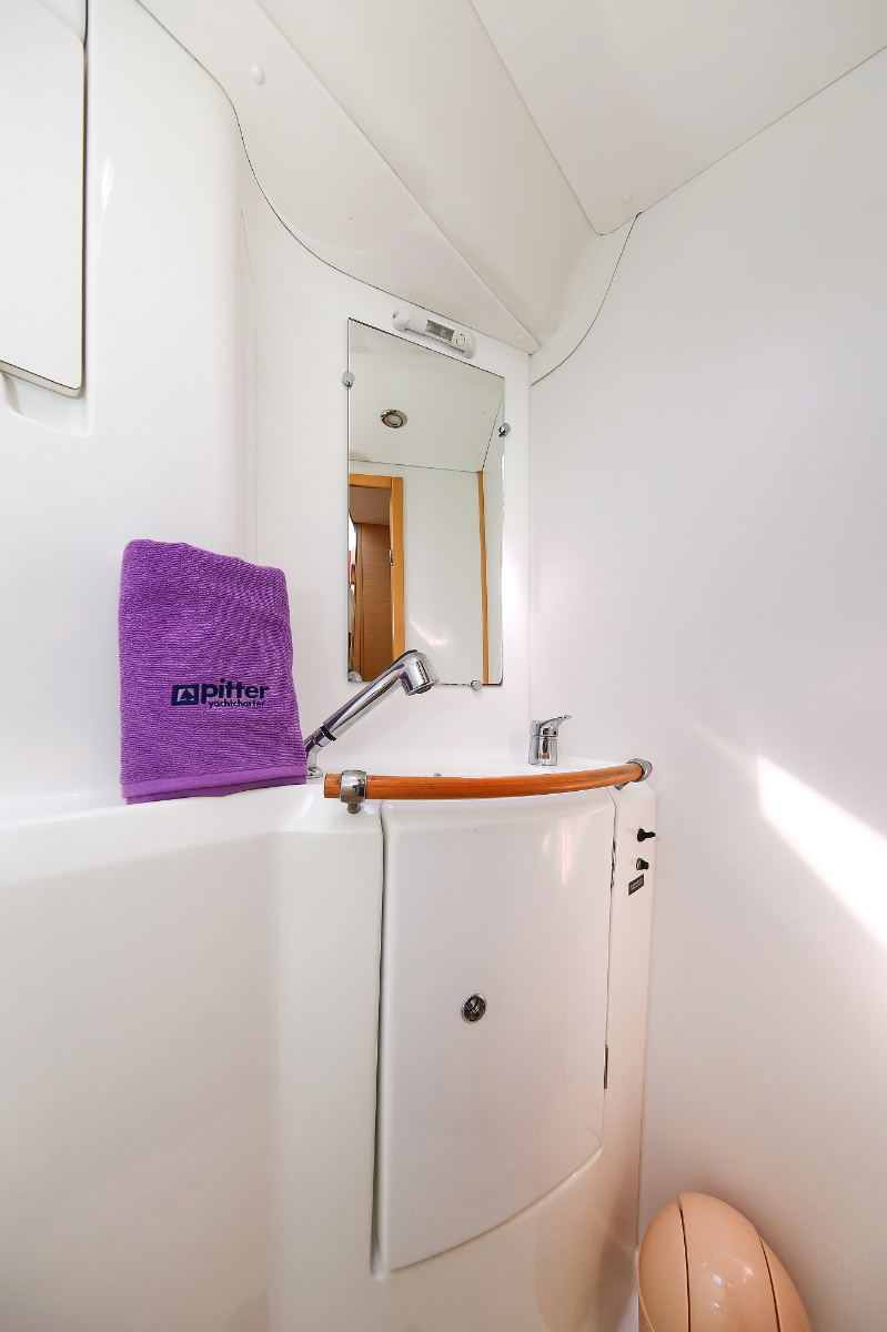 | Inside | Borduhr, Dusche, Eisbox, Heizung, Inverter 12V/220V, Kühlschrank, Ladegerät, Luftpumpe für Beiboot, Pantryausstattung, Radio mit CD, AUX und USB, Salontisch absenkbar, USB Steckdose, Ventilatoren in Kabinen, Warmwasser |
