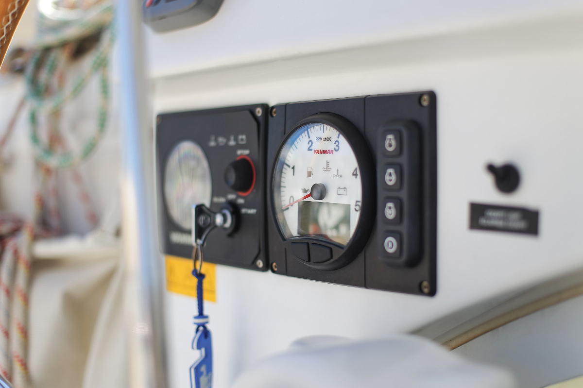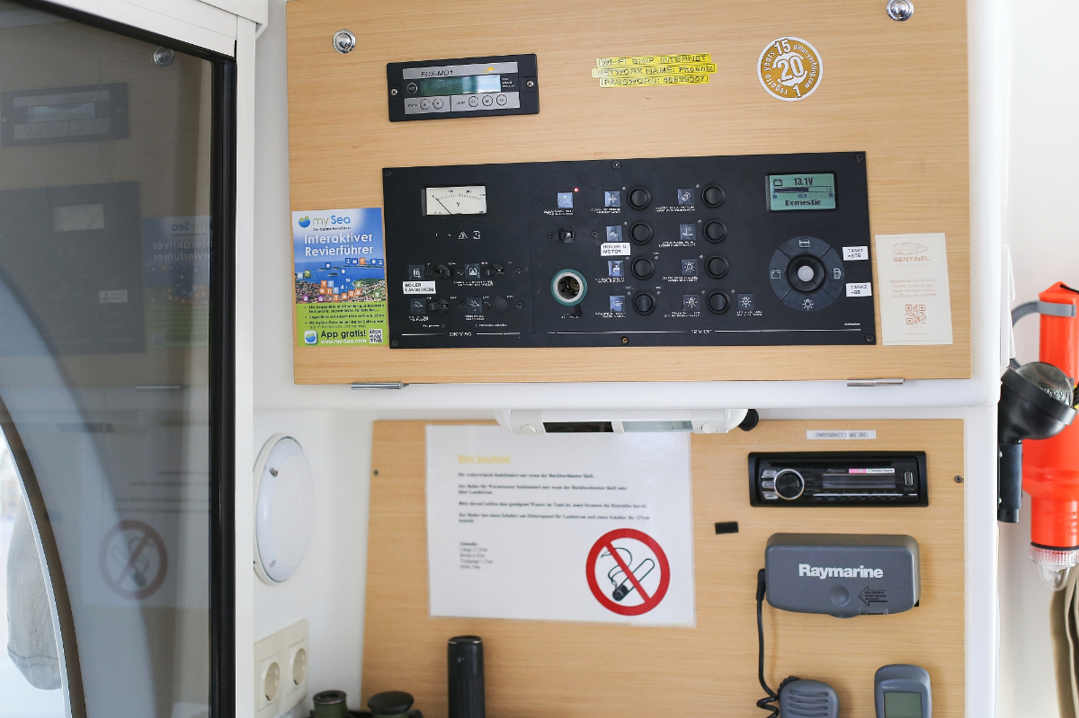 | Safety | Autopilot, Bootsmannstuhl, Bordapotheke, Bordwerkzeug, Feststoffschwimmwesten, Feuerlöscher, Lifebelts, Motor-Ersatzteile, Nebelhorn, Notsignale, Radarreflektor, Reparaturset für Beiboot, Rettungsinsel, Suchscheinwerfer, Taschenlampe, UKW-Funk, Zweitanker |