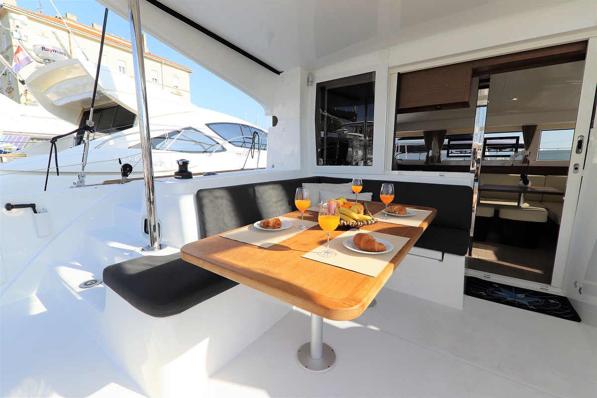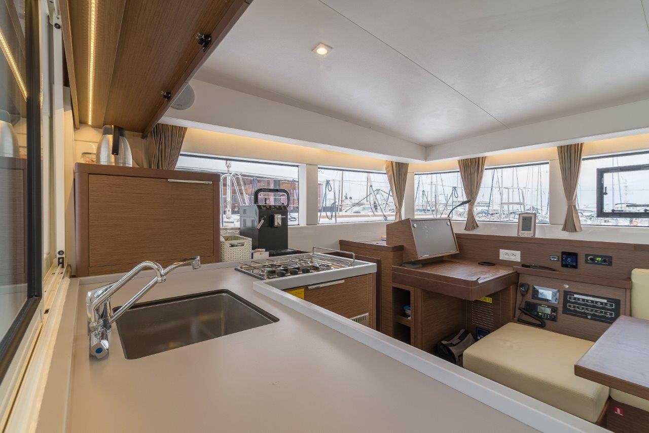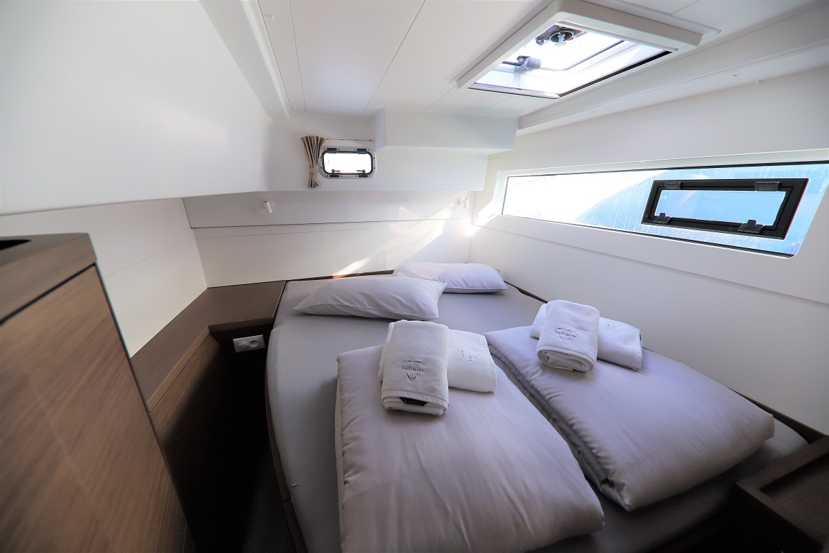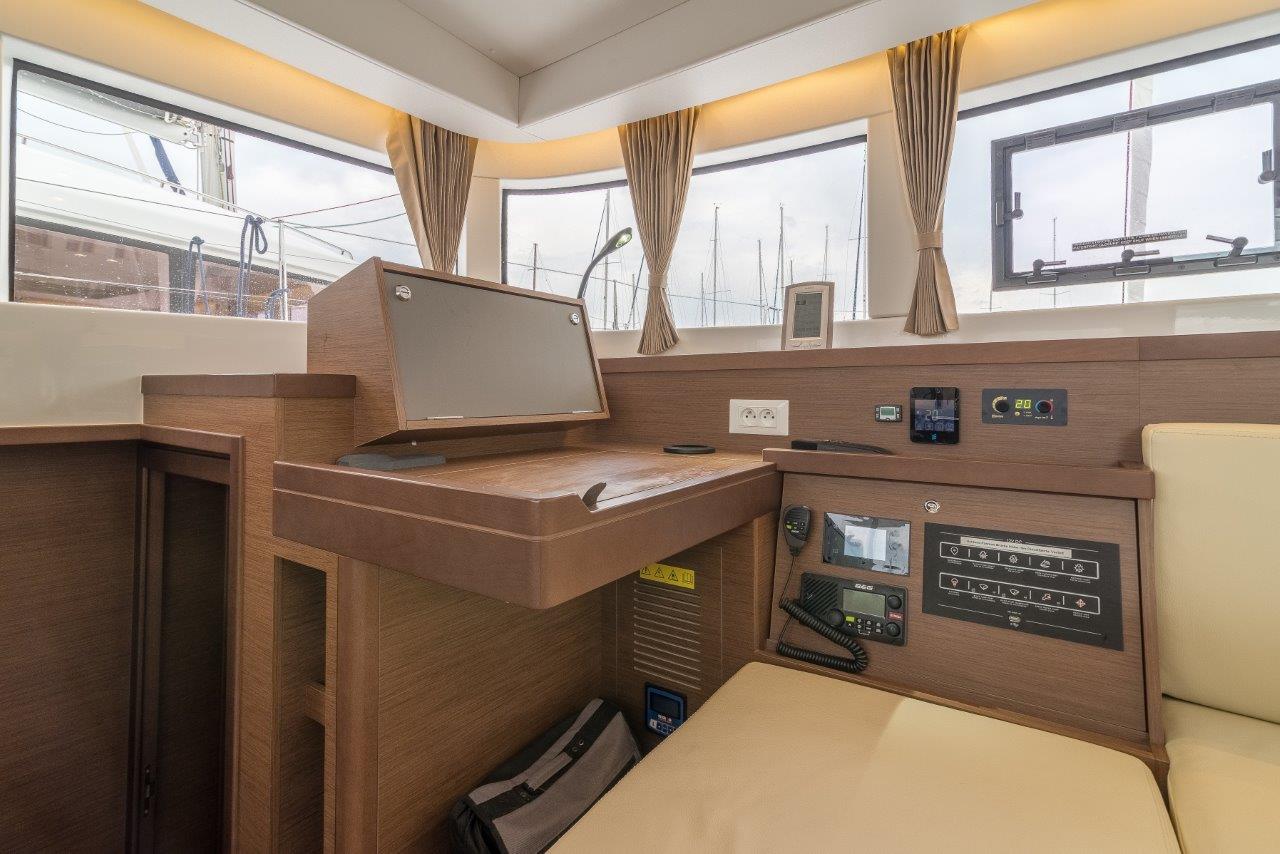 | Inside | 220V Steckdosen, DVD-Player, Generator, Heizung, Inverter 12V/220V, Kaffeemaschine, Klimaanlage (ohne Landstrombedarf), Kühlschrank, Ladegerät, Lautsprecher im Salon, Moskitonetze, Pantryausstattung, Radio mit CD/MP3/USB, Watermaker, WC (elektr.) |