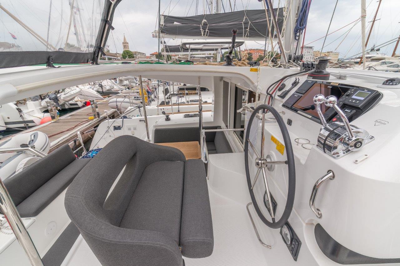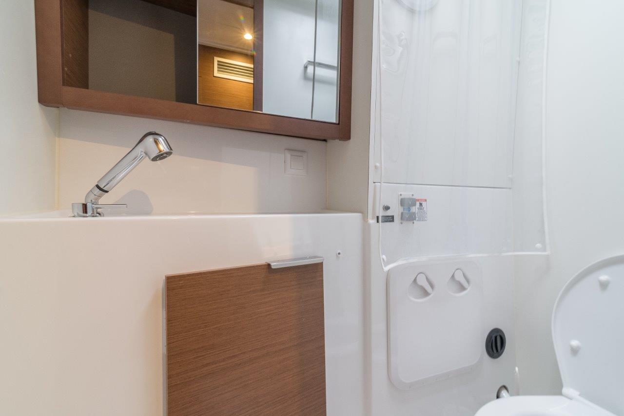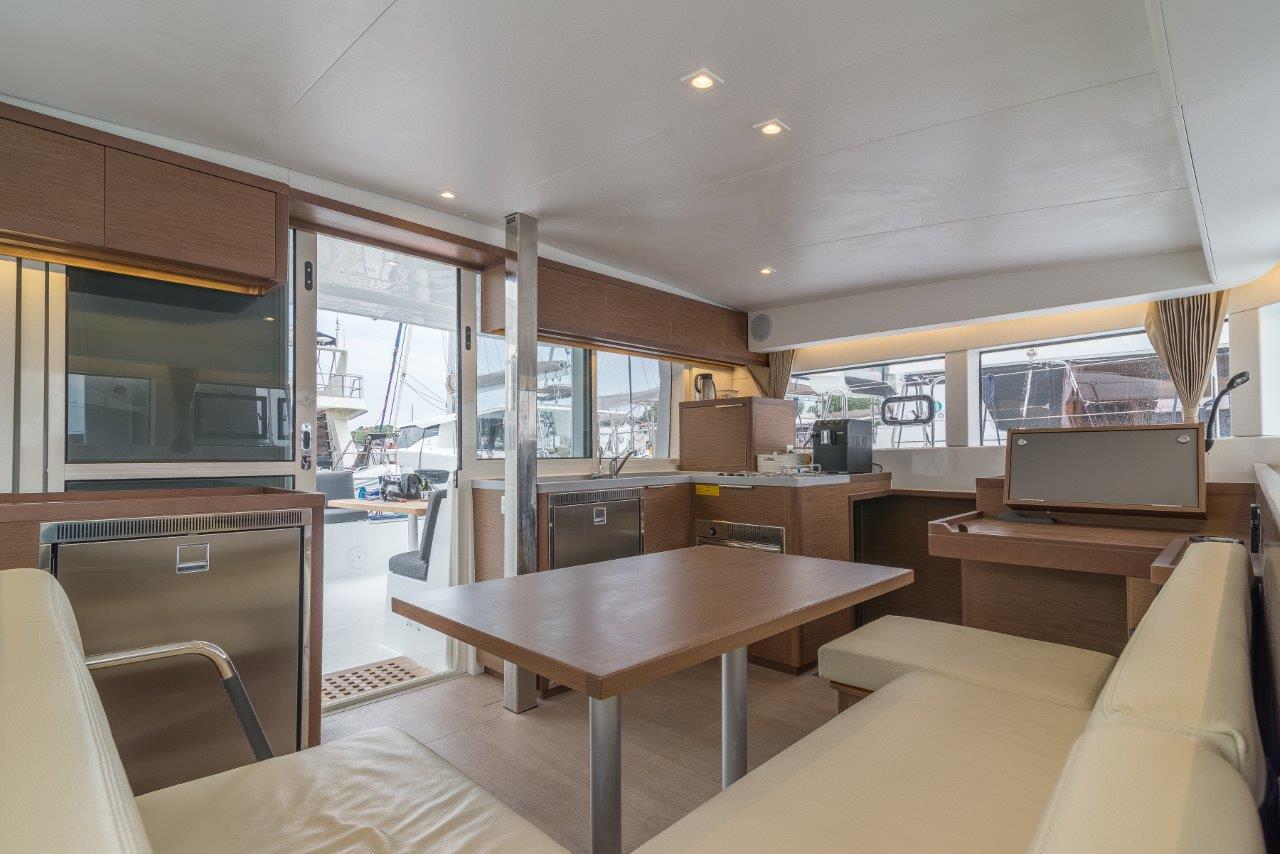 | Inside | 220V Steckdosen, DVD-Player, Generator, Heizung, Inverter 12V/220V, Kaffeemaschine, Klimaanlage (ohne Landstrombedarf), Kühlschrank, Ladegerät, Lautsprecher im Salon, Moskitonetze, Pantryausstattung, Radio mit CD/MP3/USB, Watermaker, WC (elektr.) |