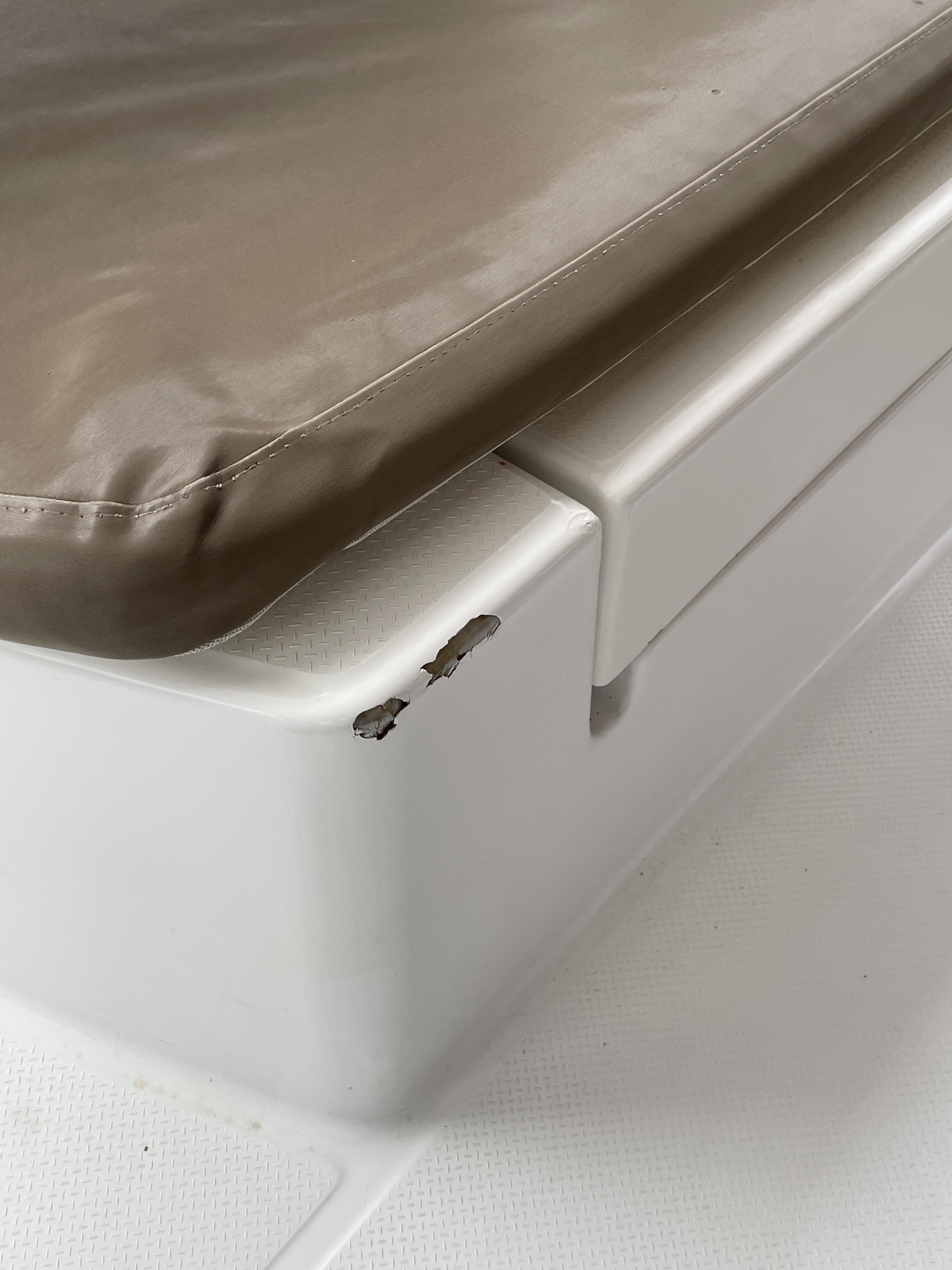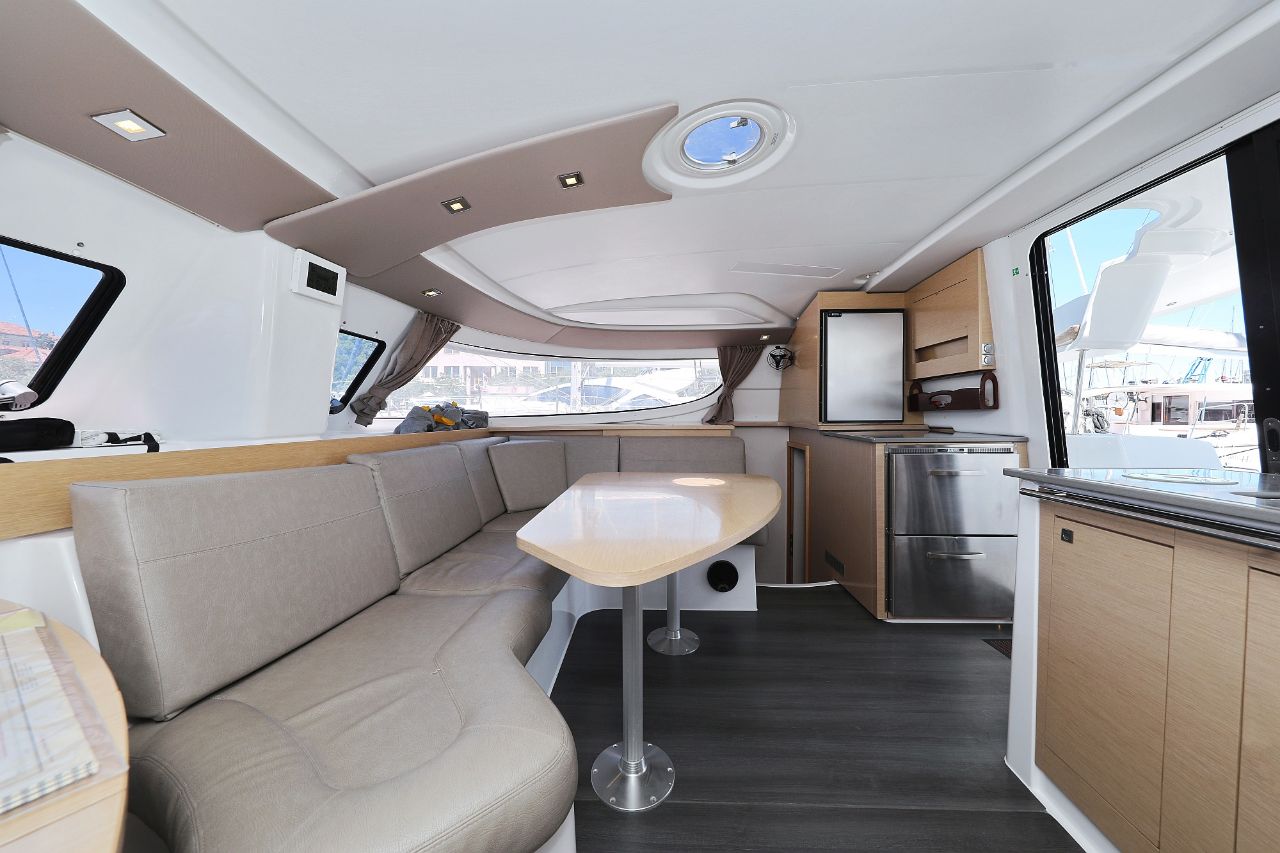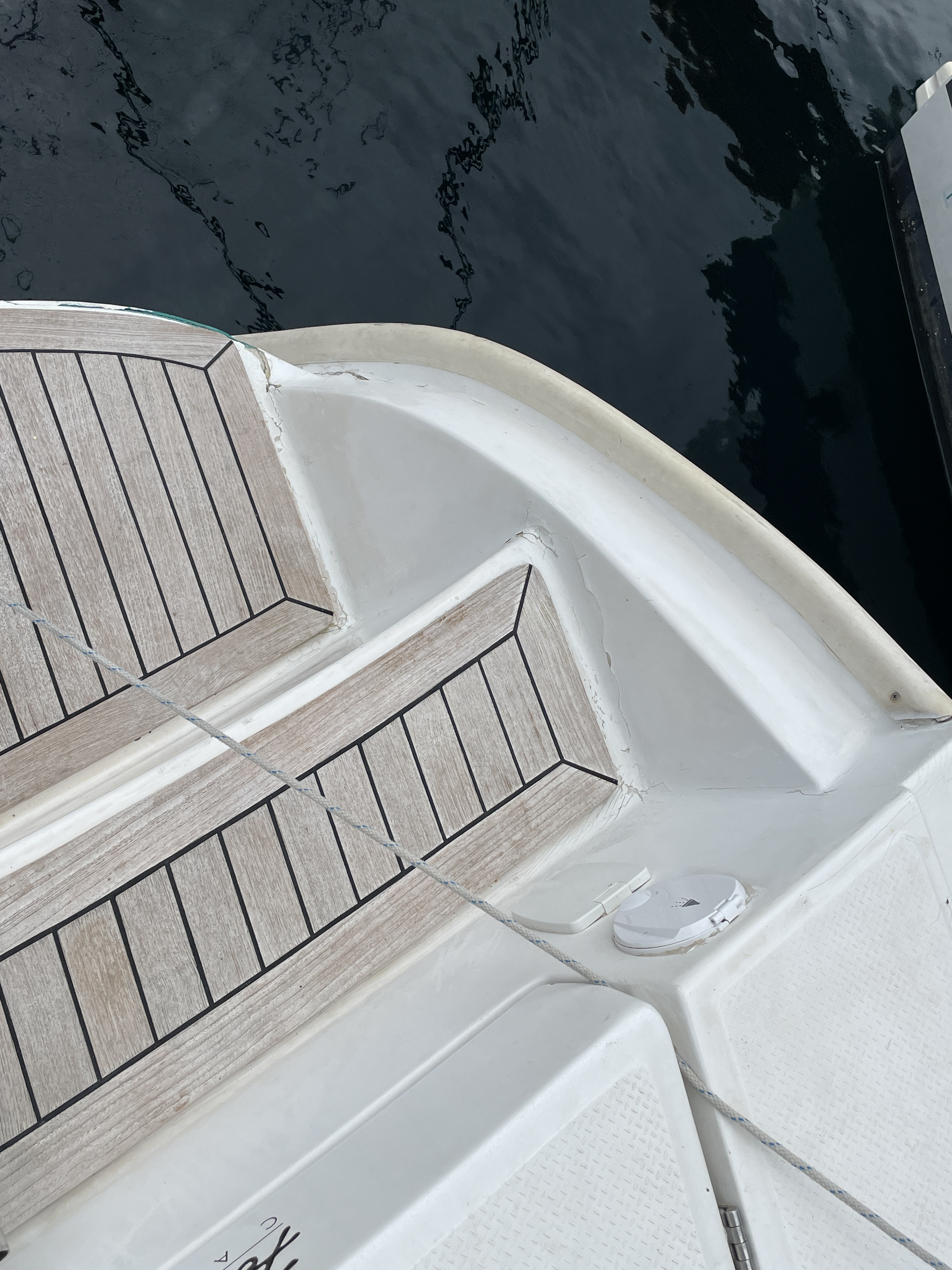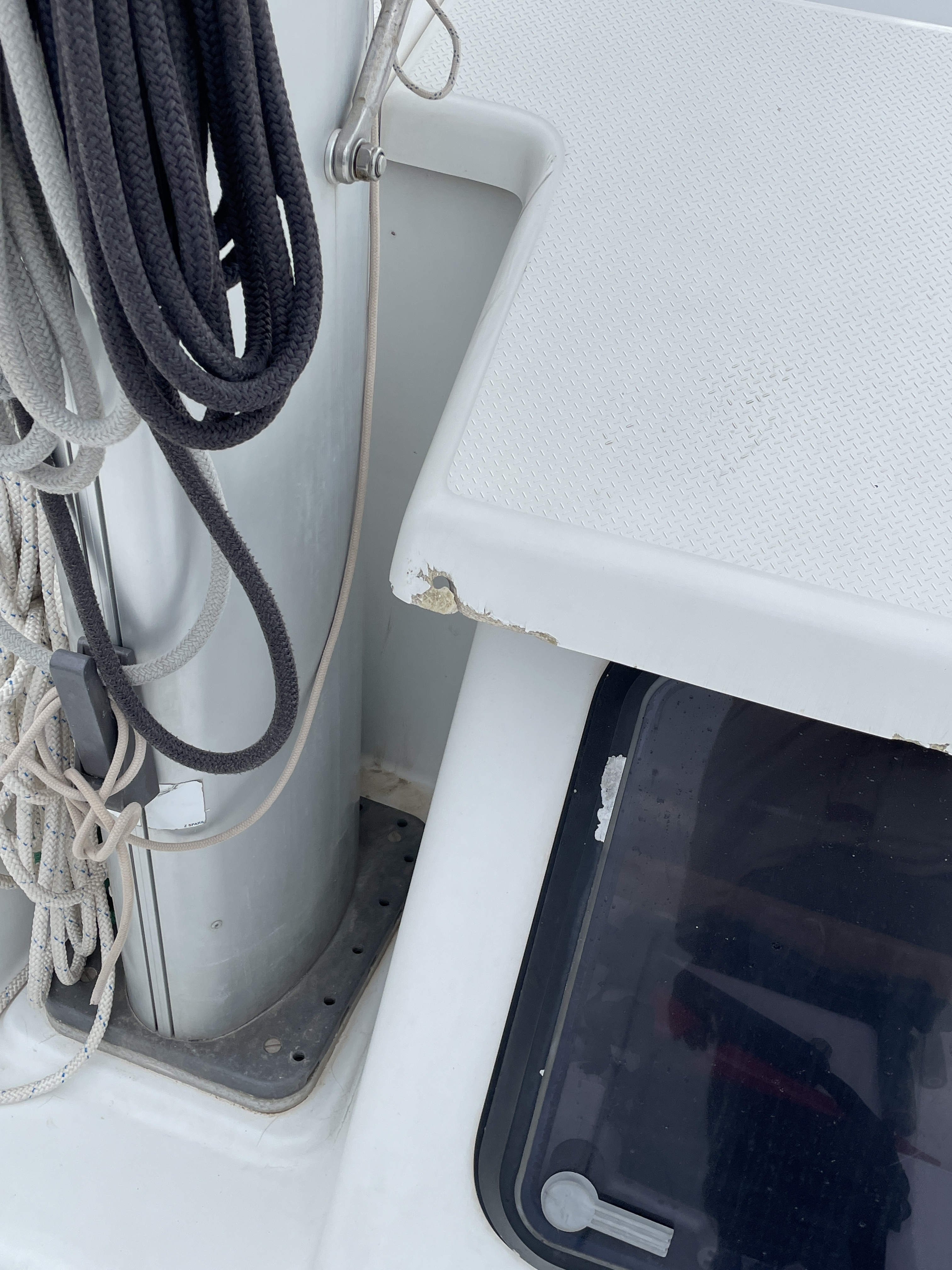 | Outside | 220 V-Landanschluss, Anker mit Kette, Anker mit Kette und Seil, Ankerwinsch, Biminitop, Bootshaken, Cockpitdusche, Cockpitlautsprecher, Cockpitleuchte, Dieselkanister , elektr. Ankerwinsch, Fender, Festmacherleinen, Solaranlage, Sprayhood, Vorhängeschloss, Wasserschlauch, Windex |