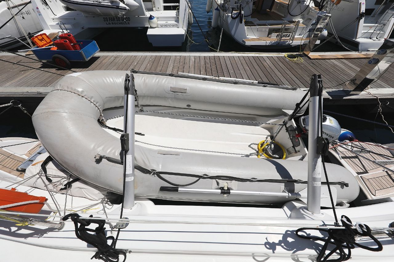 | Safety | Autopilot, Bootsmannstuhl, Bordapotheke, Bordwerkzeug, elektr. Bilgepumpe, Feststoffschwimmwesten, Feuerlöscher, Handbilgepumpe, Nebelhorn, Notsignale, Radarreflektor, Rettungsinsel, Rettungskragen, Sicherheitsgurt, Taschenlampe, UKW-Funk |