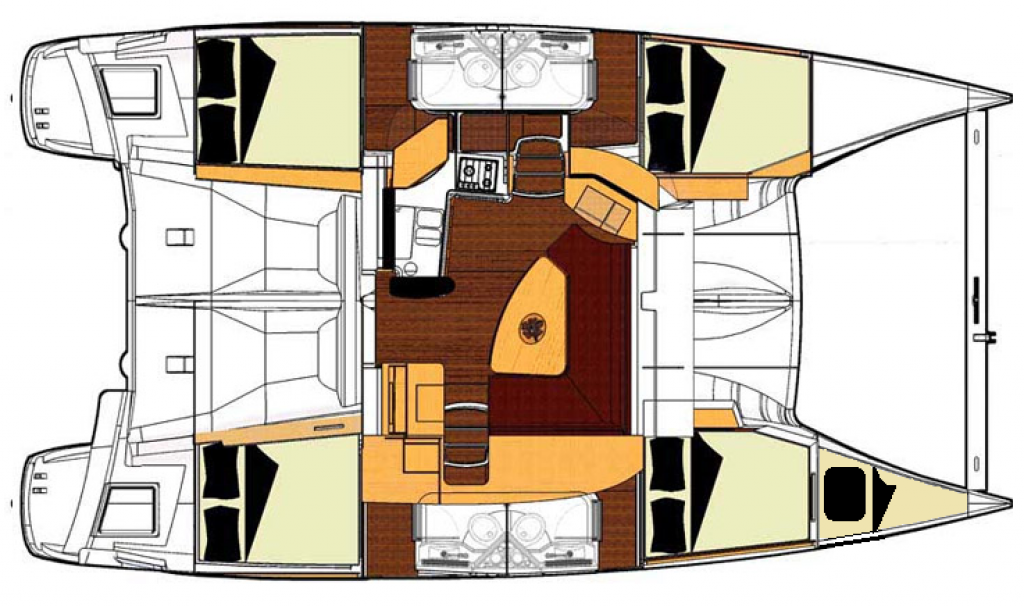 4 Kabinen plus 1 Skipper-Kabine, diese ist von innen und außen begehbar