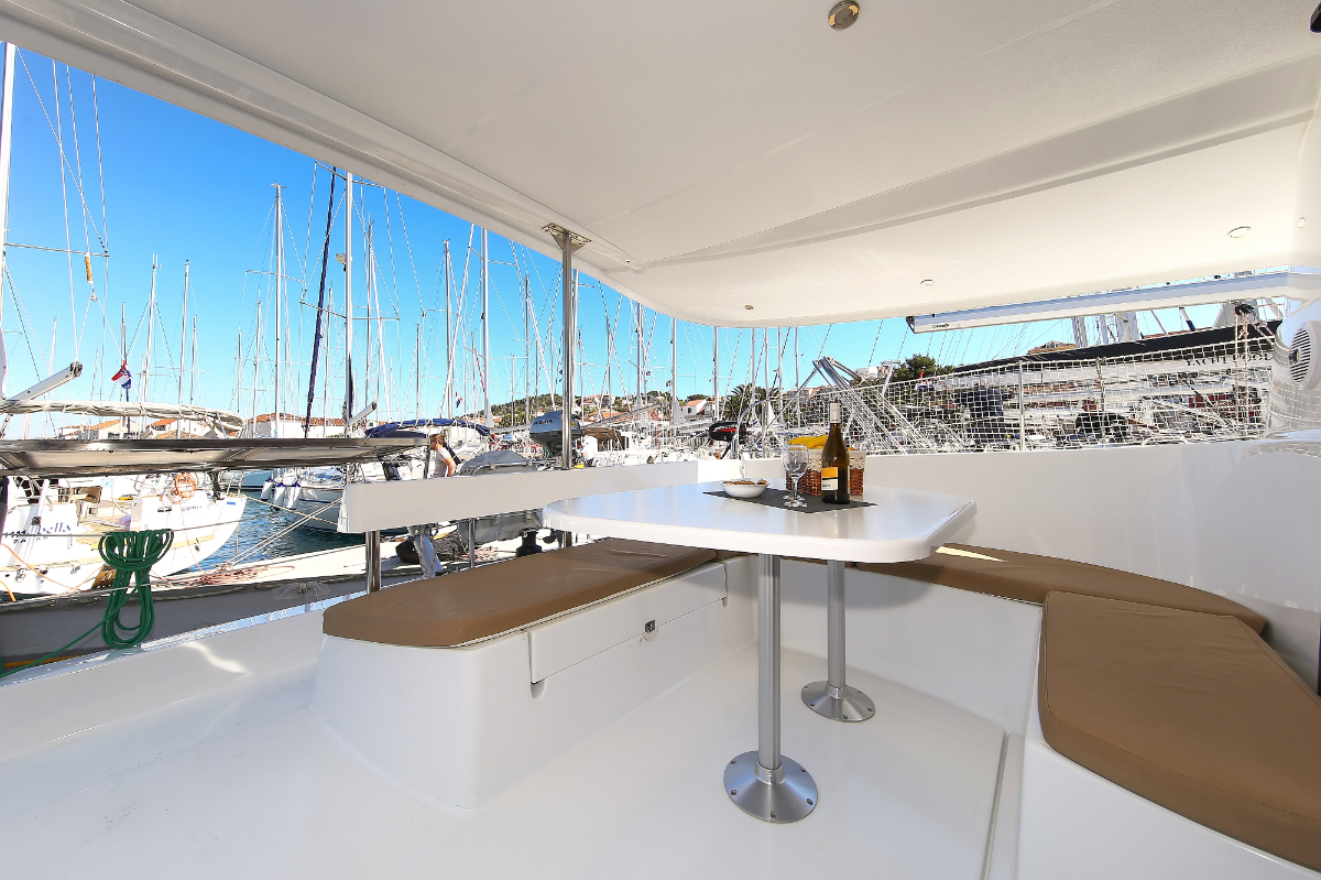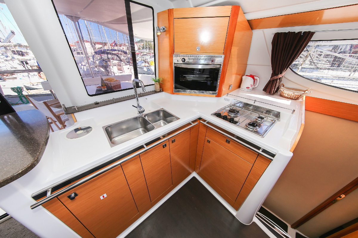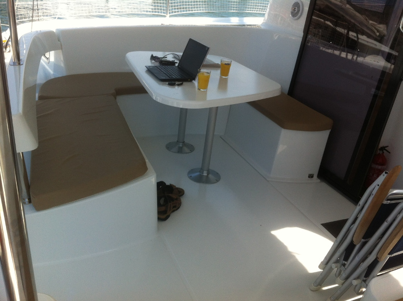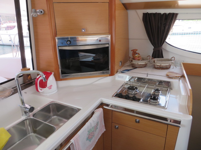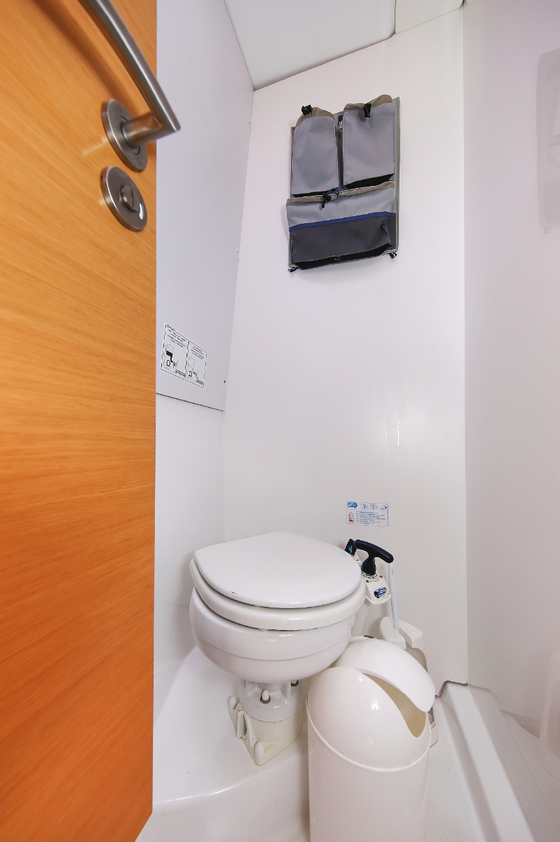 | Inside | Dusche, Eisbox, Heizung, Inverter 12V/220V, Kühlschrank, Ladegerät, Luftpumpe für Beiboot, Pantryausstattung, Radio mit CD/MP3/USB/AUX-In, Salontisch absenkbar, USB Steckdose, Warmwasser |