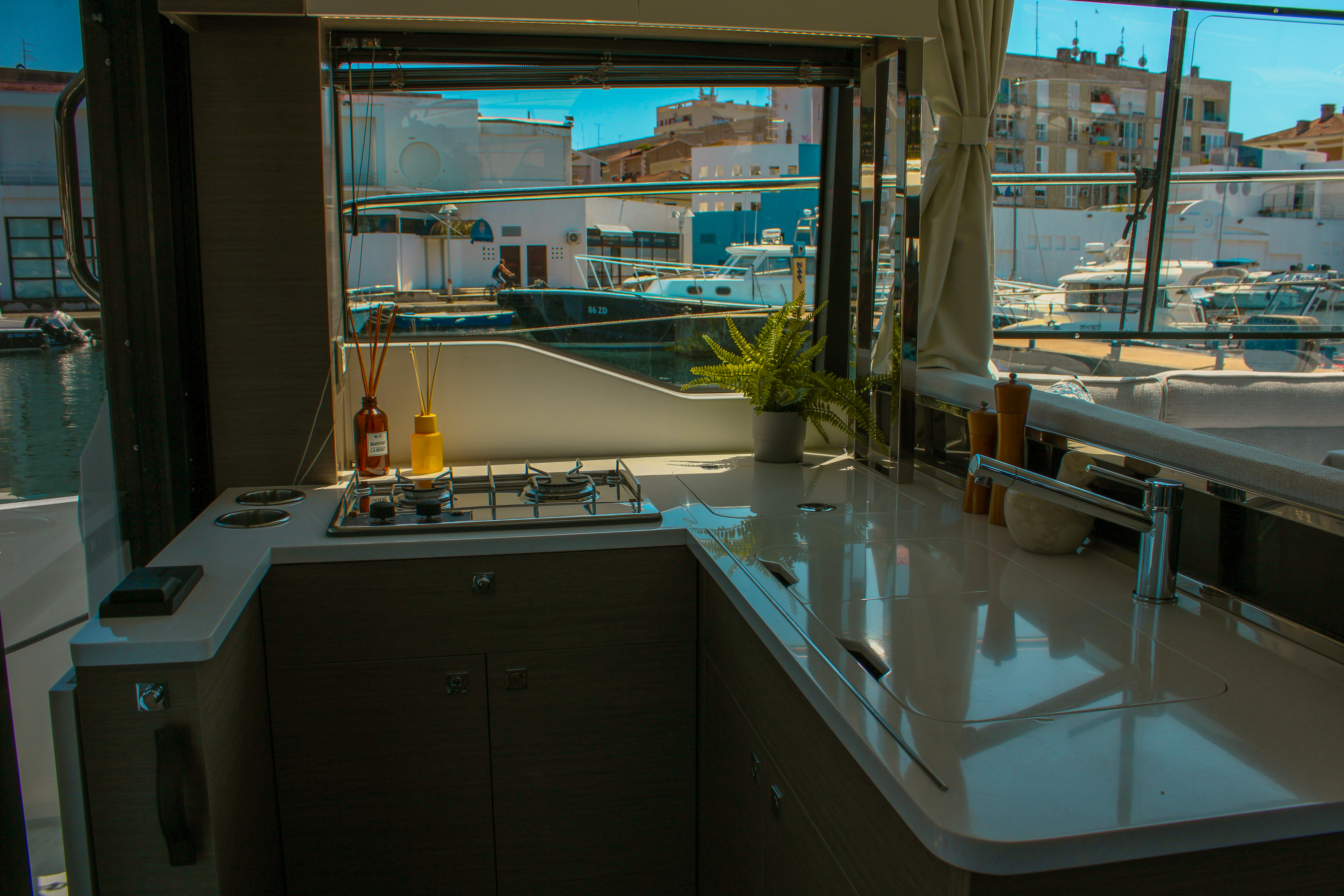 | Outside | Badeplattform, Cockpitdusche, Cockpittisch, elektr. Ankerwinsch, Solaranlage |